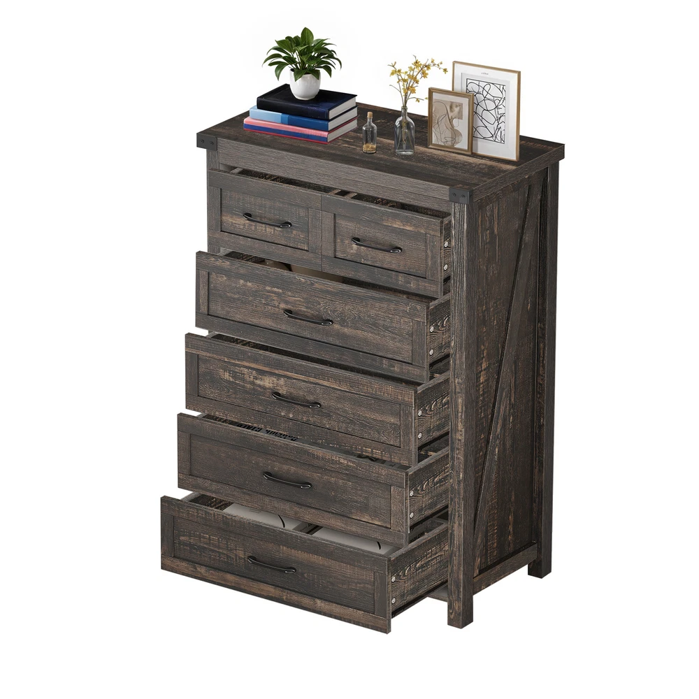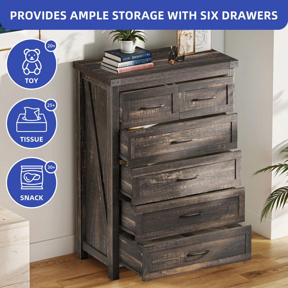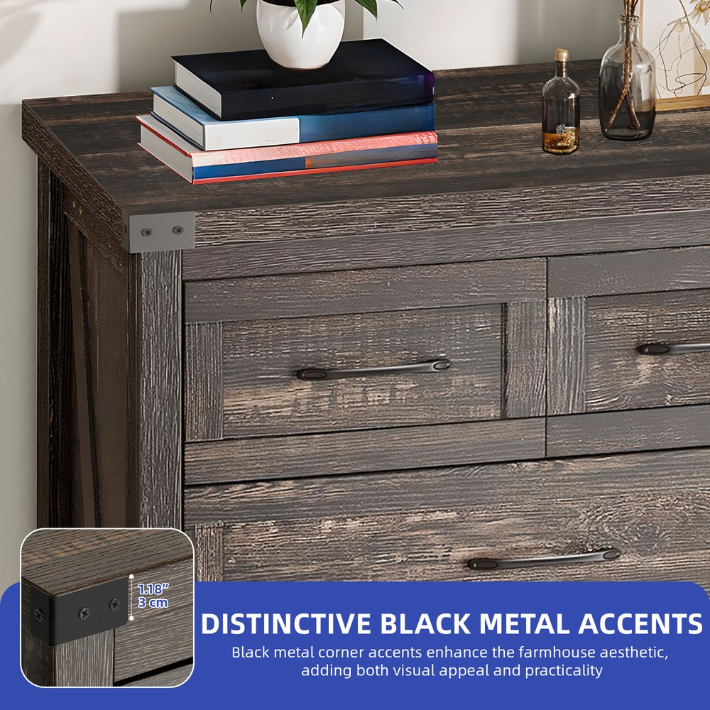 43 Inch Rustic Wood 6-Drawer Dresser Farmhouse Bedroom Storage Cabinet