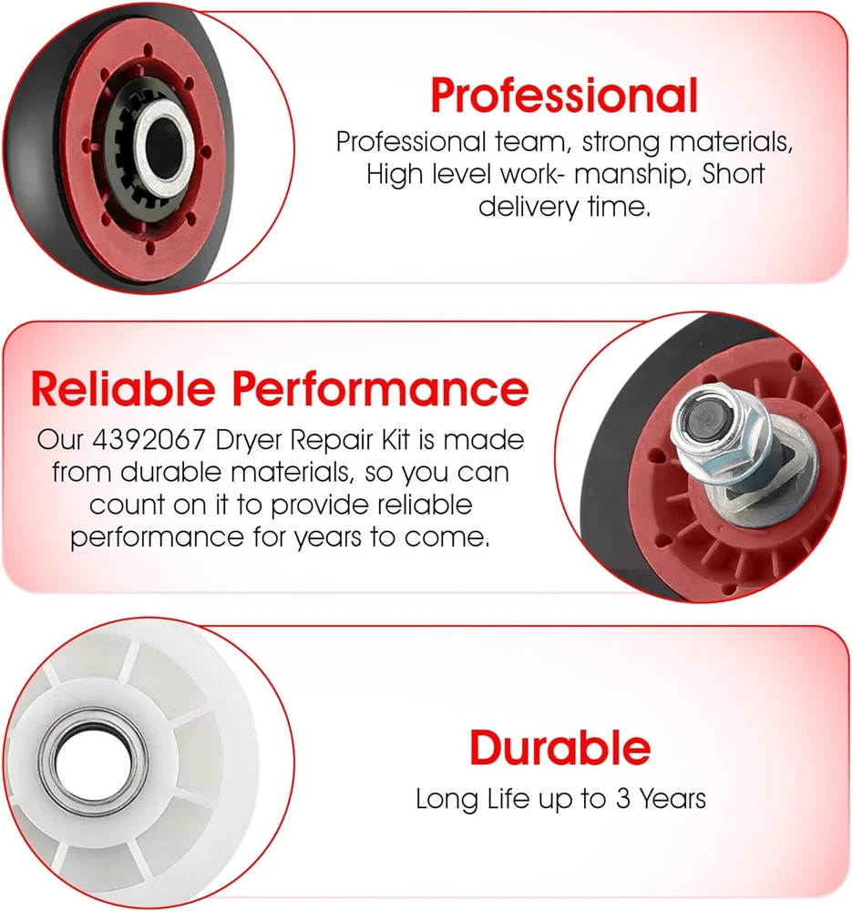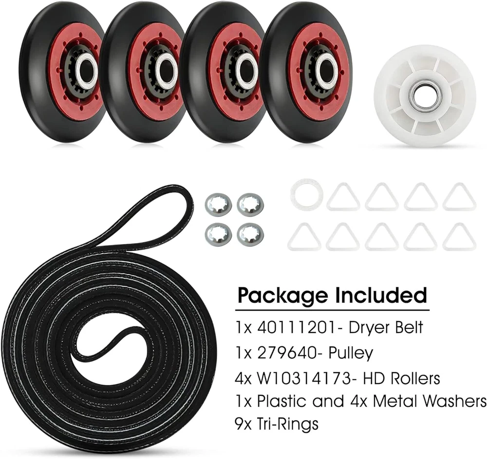 Item always Will Be Sent Out in 24 Hours From Monday to Saturday From California USA With USPS Tracking No. 【4392067 Dryer Repair Kit Includes】- 4 x 8536974(W10314171 W10314173 3388342 3401846) drum roller support wheels,1 x 279640(697692 3388672 W10468057) dryer idler pulley, 1 x 661570 (40111201, 661570V, 3387610) dryer drive belt,9 x tri-rings, and washers 【Compatible Brands & Replaces No.】- Fit for Admiral, Cro-sley, Maytag, Whirlpool, Ken-more Dryers. Replaces 2015 4392067 4392067VP 80047 587637 AP3109602 PS373088 EAP373088 【Repair Symptoms 】- Upgradely 4392067 Dryer Repair Kit is a perfect match and good choice for direct replacement of original parts and Fixes the following symptoms: Not drying properly, will not tumble, will not start, unusual noises, loud noises, takes too long to dry, this part is also known as a rebuild kit, preventative maintenance kit, repair kit 【Easy DIY Repair】- It is an easy repair if you follow along with a repair video, and we also provide installation instructions in the package, you can replace the wearable parts with its help. Helpful tools include a quarter-inch hex head nut driver, a small flathead screwdriver, and work gloves 【About Us】If you encounter any problems during the shopping process, please feel free to contact us and we will do our best to solve the problem for you. Customer satisfaction is our relentless pursuit! Payment 1.We only accept PayPal. Credit card payment can also be made via PayPal.eBay Immediate Payment via PayPal. 2.Please fill in a valid contact address. Shipment Items are usually shipped 1 business days after payment has been received. We do not ship on weekends and holidays. Sellers are not responsible for service transit time. Transit times are provided by the carrier, exclude weekends and holidays, and may vary with package origin and destination, particularly during peak periods. Return Policy Out 30-day Satisfaction Guarantee assures our customers that they will receive all orders promptly and exactly as described. In addition , it allows customers to return new and unused products in their original factory condition for any reason within 30 days from the date of purchase. Notice: 1.All returns must be pre-approved by Seller and have a return merchandise authorization (RMA) number. Any problem about item, Please Send the eBay message to us ,we will respone in 24 hours 2.Buyers are responsible for appropriate packing, returning shipping cost, insurance and returning the item in “new” condition. Used items will not be accepted for return. 3.We will replace the returning item with an identical item, issue a full refund. Contact us 1.If for some reason there is any issue with the purchase, please contact us prior to leaving any negative or netrual feedback, and we will work with you to have it resolved.