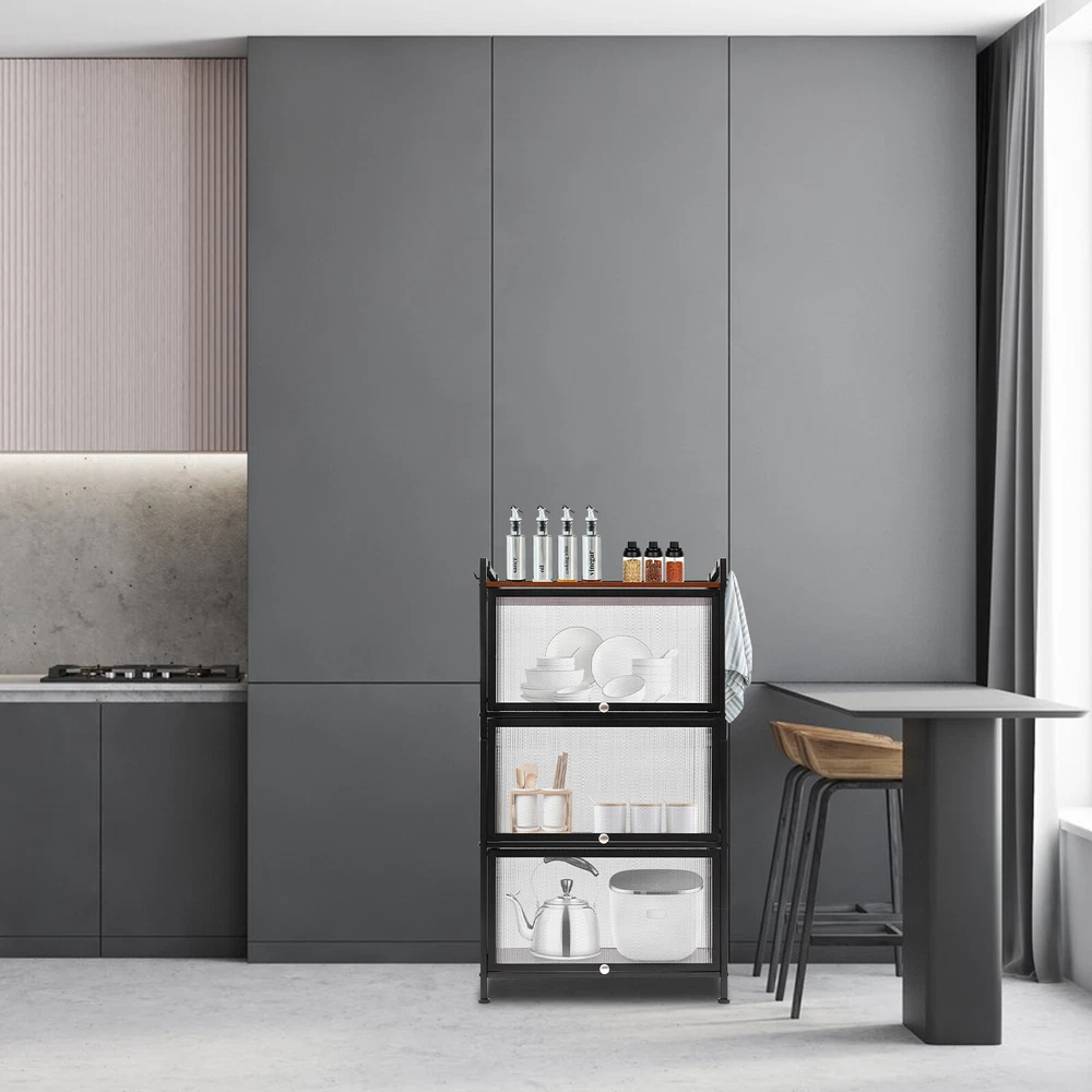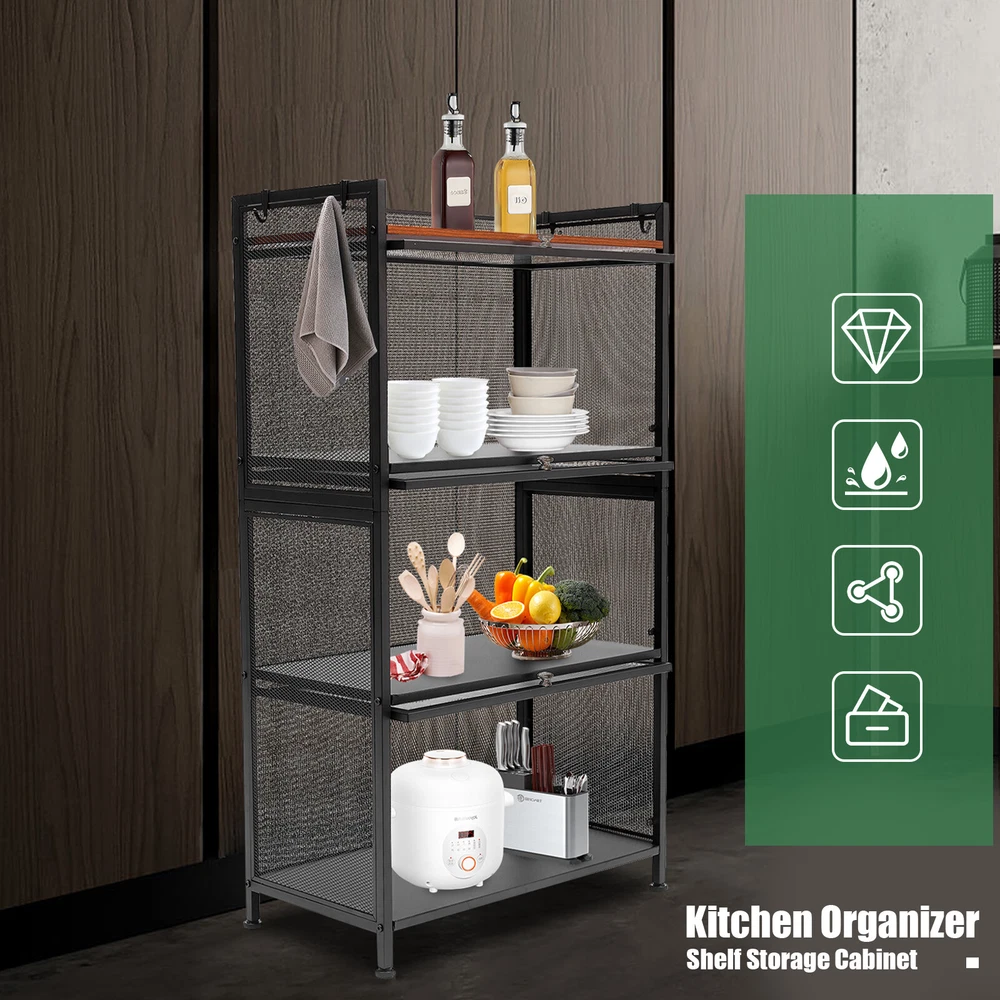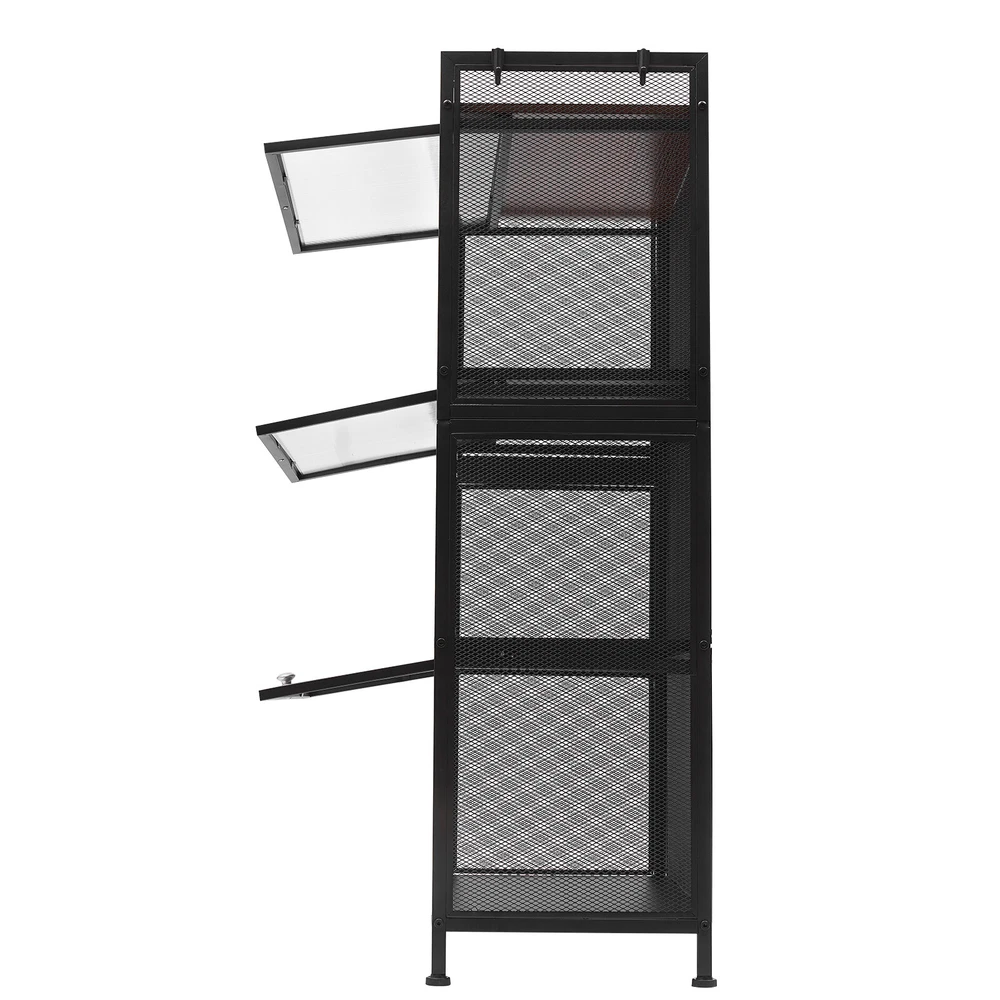 Specification Material: Carbon Steel, PC, E1 Eco-friendly Panel Process: Baking Paint Color: Black Number of Layers: 4 Layers Model: OGJ-ZWJ055 Shape: Rectangular Installation Method: Floor-mounted Door Type: Flip-top Type Assembly Required: Yes Maximum Loading Capacity ( Single Layer ): 20kg/44.09lbs Single Layer Height of Shelf: 30cm/11.8in Product Size: 60*32*109.5cm/ 23.6*12.6*43.1 in Package Included 1 * Storage Cabinet 1 * English Manual All Accessories for Installation 43"Display Cabinet 4 Tier Wine Showcase Filp Up Acrylic Door Craft Storage Shelf Description The simple storage cabinet is made of high-quality carbon steel, PC, and E1 eco-friendly panels, providing you with strong load-bearing capacity. The four-layer structure provides more options for sorting your items. The translucent wave pattern cabinet door allows you to understand the location of the items more clearly. It will be your powerful storage assistant. Number of Layers: 4 Layers Model: OGJ-ZWJ055 Shape: Rectangular Installation Method: Floor-mounted Door Type: Flip-top Type Assembly Required: Yes Maximum Loading Capacity ( Single Layer ): 20kg/44.09lbs Single Layer Height of Shelf: 30cm/11.8in Product Size: 60*32*109.5cm/ 23.6*12.6*43.1 in Specification Material: Carbon Steel, PC, E1 Eco-friendly Panel Process: Baking Paint Color: Black Package Included 1 * Storage Cabinet 1 * English Manual All Accessories for Installation Features&Highlights Easy to Install: The simple structure, enough required parts and an English instruction can help you complete the installation more quickly and accurately. Storage Assistant: The four-layer structure allows you to plan the classification of items more clearly. You can use it to store dishes, bags, shoes, or books to meet almost all your storage needs. User-friendly Design: The flip-top door is easy to open and close. At the same time, the magnetic latch on the door makes it more airtight, insect-proof and rat-proof. Strong Load-bearing Capacity: The sturdy quadrilateral structure and high-quality carbon steel frame make it have a strong load-bearing capacity (maximum 44.09 lbs for a single layer). You can store heavy objects in it with confidence. High-quality Material: This product is made of high-hardness carbon steel, PC, and E1 eco-friendly plates. The performance of high-temperature resistance , water resistance, and scratch resistance can extend the service life of the product. Large Capacity: Three layers of storage (23.6*12.6*11.8 inch per layer) and 1 layer of open shelf make it possible to store many objects, such as microwave ovens, ovens, etc. Good Air Permeability: The removable back panel and grid side panels provide good air permeability for the storage cabinet and keep the interior items away from odor. Stylish Appearance: The simple lines and classic black can make it a timeless decoration for rooms with different decoration styles, making your room more modern and beautiful. Easy to Clean: The smooth baked paint surface is stain resistant and easy to clean. All you need to do is wipe it gently with a damp rag to clean it. Details 4 Hooks: The four hooks provide more choices and convenience for your storage. You can hang towels, scarves, or other kitchen utensils on them. Semi-transparent Cabinet Door: The wavy PC semi-transparent cabinet door allows you to understand the location of items more clearly, providing more convenience for your search. Safety Guardrail : The top shelf with a safety guardrail provides higher security for the placement of items. Adjustable Foot Pads: Adjustable foot pads provide balance and strong stability on uneven ground. You can easily adjust their height by rotating them. Application This product can be used as a cabinet, bookcase, shoe rack, snack rack, flower rack, etc., and is applicable to the kitchen, dining room, living room, study, etc. Notes It is recommended to place heavy objects evenly to achieve a balanced load-bearing effect. Please allow the slight color difference caused by the shooting light and the 1-3 cm error due to manual measurement, and make sure you do not mind before ordering. Payment Delivery details Terms of sales About us Contact us Payment We accept ebay payment 。 Fees such as import duties, taxes are not included in the item price or shipping costs. These charges are the buyer's responsibility. Delivery details Shipping: 2-9 working days to: USA Terms of sales We maintain high standards of excellence and strive for hundred percent customer satisfaction. Feedback is very important to us. We hope that you contact us immediately before you give neutral or negative feedback, so that we can address your concerns. It is impossible to address issues if we do not know about them! About us Your satis faction is our ultimate goal. We work hard to earn your trust and future business. Our certified technicians have tested each item before shipping. The unit comes with 1 year limited warranty on all manufacturing defects. a) If you receive a defective item, you may return it or ask for a discount. Please contact us within 14 days after you receive the package. b) What you returned must be intact and in its original packaging as re? u. Customer is responsible for shipping costs of the returned item. c) We will cover the cost of shipping back t with the shipping rate indicated in the registration page. We will send you a new unit or refund the full payment you paid. Thank you. Contact us Business Hour Business Hour: Monday To Friday: 8:30 AM to 5:00 PM (Beijing China time) Due to time zones, our reply to your questions may not be immediately. But within above working time, we will reply your email within 24 hours. If it's non-workdays, please kindly be patient and wait till Monday. Please contact us with ebay message. Please feel free to contact us if you have any questions. Monday To Friday: 8:30 AM to 5:00 PM (Beijing China time) Due to time zones, our reply to your questions may not be immediately. But with