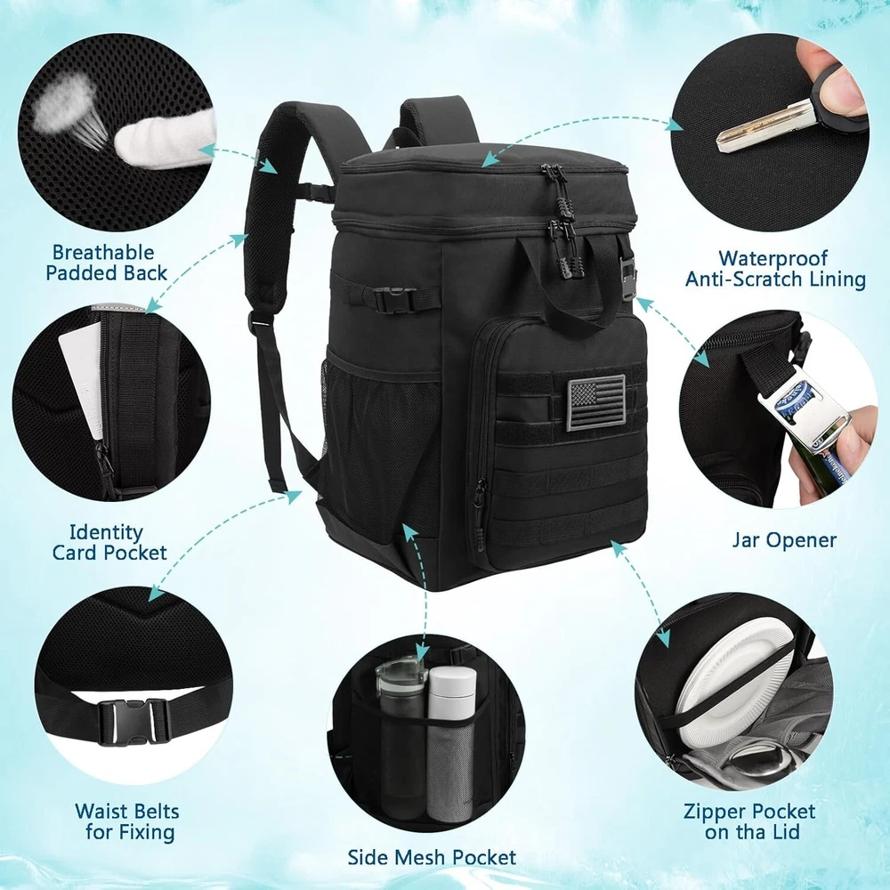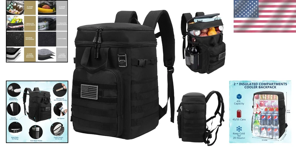 43L Insulated Tactical Backpack Cooler - Leak-Proof for Outdoor Adventures ‹ › ‹ › ‹ › ‹ › ‹ › ‹ › ‹ › ‹ › 43L Insulated Tactical Backpack Cooler Your ultimate companion for outdoor adventures! This large capacity backpack cooler is designed for those who relish exploring the great outdoors without sacrificing refreshment. Features: Generous Capacity: Dimensions of 13*11.4*17.7 inches with a generous 43L capacity, accommodating up to 45-55 cans (355ml). Insulated Compartments: Two insulated compartments to keep beverages cool and dry foods fresh. Multiple Pockets: Includes a capacious front pocket and two side pockets for organizing snacks, phone, wallet, and various accessories. Leak-Proof Design: Seamless hot pressing technique ensuring leak-proof performance (exercise caution preventing tipping over during use). Thermal Insulation: Thickened 5mm foam insulation keeps items cool for up to 20 hours. Customizable Style: Front pocket features a panel for your own patches, allowing you to express your style. Benefits: Perfect for beach picnics, hiking, camping, boat trips, and sports games. Keep your beverages cold and food fresh for 20 hours, ideal for long day trips. Conveniently organize all your essentials with multiple pockets for easy access. Comfortable to carry with front and back handles; ideal for two-person transport. Why choose our Insulated Tactical Backpack Cooler? Elevate your outdoor experience with our state-of-the-art Insulated Tactical Backpack Cooler. Specially crafted for adventurers who seek ample space and innovative features, it ensures your drinks are perfectly chilled and your snacks remain fresh. Unleash the possibility of carefree day trips to the beach, weekend camping escapades, or lively tailgating parties. Enjoy the freedom of exploration while all your essentials stay organized and easily accessible. Don’t let the heat get you down - embrace your adventures with the 43L Insulated Tactical Backpack Cooler and make every trip a celebration of refreshment and camaraderie! Shipping Free & Fast Shipping - We offer free shipping to most of the USA with a normal delivery time of 3-7 days. However, due to the current situation, additional delivery time (up to 3 weeks) may be required for some items. Alternative Carriers - We may use alternative carriers (e.g. USPS, FedEx, UPS, etc.) to ensure your package arrives safely and on time. Due to the use of multiple carriers, we are unable to provide a tracking number automatically. Handling Time - Orders are processed and shipped within 1-2 business days of receiving cleared payment. Shipping Restrictions - Shipping to Alaska, Hawaii, Puerto Rico, Guam, and other US territories may incur shipping charges or delivery restrictions. Please contact us before ordering, or your order can be refunded/cancelled. State Restrictions - There may be restrictions based on your state of purchase. For example, certain items may not be shipped to California due to state regulations. Contact for Tracking Updates - If you require tracking updates or have any concerns about the delivery of your order, please feel free to contact us, and we will be happy to assist you. Return 30-Day Hassle-Free Returns - We want you to be completely satisfied with your purchase. If you are not, you can return the item within 30 days of receiving it for a full refund or exchange. Easy Return Process - To start a return, simply contact us and we will provide you with a prepaid return shipping label and detailed instructions. Restocking Fee - There are no restocking fees for returns. However, the buyer is responsible for return shipping costs if the return is not due to a seller's error. Refund Processing Time - Refunds will be processed within 5 business days of receiving the returned item in its original condition. Payment We accept all major credit cards, PayPal, and Apple Pay for your convenience. Your payment information is secure and encrypted to ensure a safe and seamless transaction. Please complete your payment within 3 days of purchase to avoid any delays in shipping. Feedback Your feedback is extremely important to us. We strive to provide the best products and customer service possible. If you are satisfied with your purchase, please take a moment to leave us a positive review. If you have any concerns or issues with your order, please contact us before leaving negative feedback. We are committed to resolving any problems and ensuring your satisfaction. Contact Us If you have any questions or concerns, please feel free to reach out to our customer support team. You can contact us through the eBay messaging system. We are available Monday to Friday, 9:00 am to 5:00 pm EST, and we will do our best to respond to your inquiry within 24 hours. Buy it now and enjoy a pleasant shopping experience! UPC: Not Set Model: Not Set Unit Quantity: 43 L Features: Portable,Leak Proof,Adjustable Strap,Compact,Accessory Pocket,Insulated Material: Polyester Suitable For: Beach,Camping,Hiking,Picnic Power Source: Not Set Items Included: Backpack Brand: Unbranded Type: Backpack Cooler Color: Black Capacity: 43 L Number of Compartments: 2 Manufacturer Warranty: Not Set Maximum Insulation Time: 20 h Energy Star: Not Set Bottle Capacity: 45-55 MPN: Not Set EC Range: Not Set Refrigeration Type: Not Set Country/Region of Manufacture: Not Set Item Width: Not Set Temperature Range: Not Set Item Weight: 1.22 kg Item Depth: 11.4 in Voltage: Not Set Item Height: Not Set Finish: Not Set Power: Not Set Unit Type: Not Set
