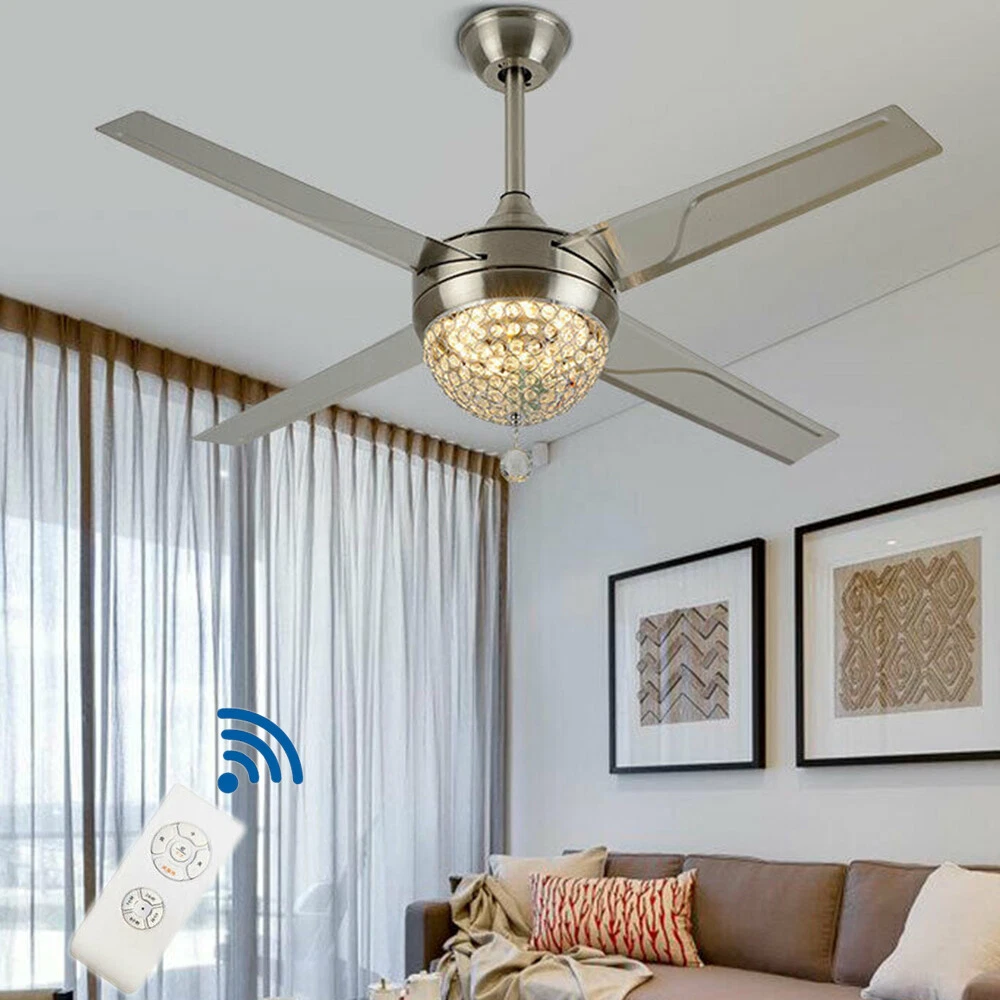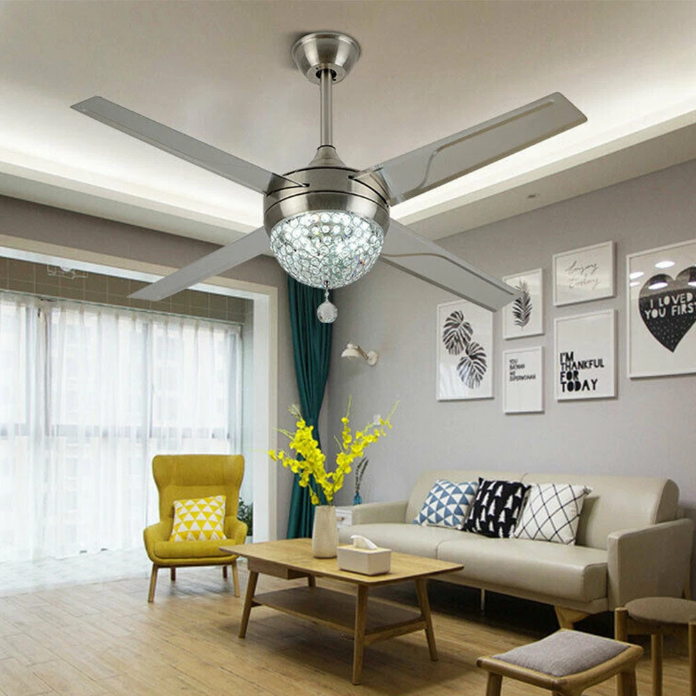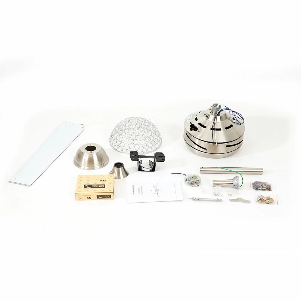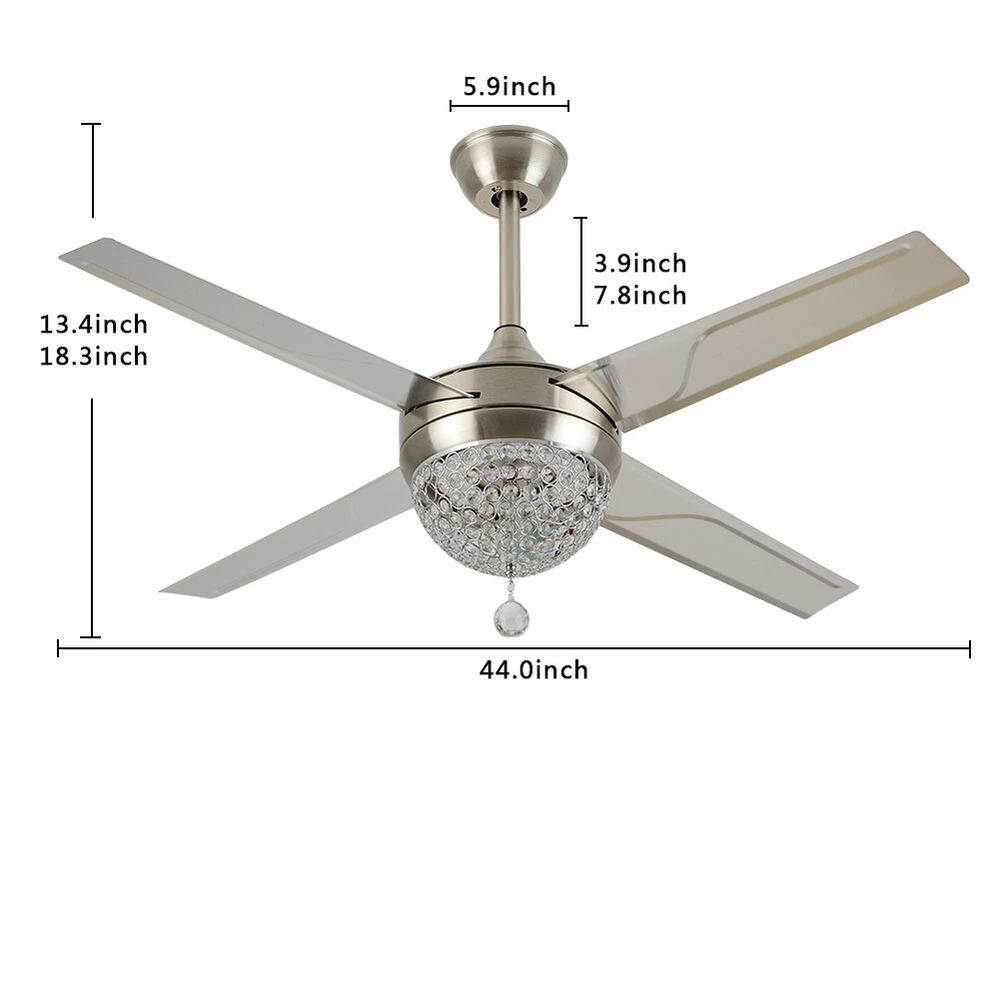 Ceiling Fans HCX185-US simple chandelier fan made of premium materials for stable operation and longer life windward ceiling fan use metal decoration dull clock, more tight security and pursuit the excellence quality for you About this item 【Premium Material】 : A unique metal round arched lampshade is used, bright crystal decoration is placed on the outside. simple but elegant, 4-Stainless Steel Blades, for great air movement. 2 downrod provide 【Great Looking】: Ceiling fan with remote: LED lights have 3 color changes (3000K-4500K-6000K), Fan has 3 speed settings (Low-Mid-High). All these functions can be easily controlled by remote 【Motor】with metal body is designed the imported silicon steel sheet and imported premium bearings, It can extend longer life and smooth operation Ceiling Fa 44" Crystal Fan Ceiling Light LED Chandelier 3 Speed Fan Lamp + Remote Control Modern Crystal Ceiling Fan Light w/ Remote Control 3-speed Chandelier Lamp 44" Features: Premium Material: A unique metal round arched lampshade is used, bright crystal decoration is placed on the outside. simple but elegant, 4-Stainless Steel Blades, for great air movement. 2 downrod provide Great Looking: Ceiling fan with remote: LED lights have 3 color changes (3000K-4500K-6000K), Fan has 3 speed settings (Low-Mid-High). All these functions can be easily controlled by remote Motor: with metal body is designed the imported silicon steel sheet and imported premium bearings, It can extend longer life and smooth operation Ceiling Fan with LED Light : Replaceable LED light will last a longtime and save you the most on your energy bills. Ceiling Fan with Remote Control : Control the light and fan speed separately for ease and convenience. Specification Size: 44inch Blade Material: Stainless Steel Color temperature: CCT 3 light cycles Light source type: LED(Light Kit Included) Control: Remote Control Included Fixture Finish: Crystal Lampshade Voltage: Voltage: 110-120V Fan Mounting Type: Ceiling Mount, Downrod Mount Downrod Length: 2 downrod of3.87 and 7.87inch (included) Remote battery: (Included) Applicable Space:107-312square feet Applicable Place: living room/ bedroom /office and restaurant Installation Instruction For your safety, Please turn off the power before installation Please check parts against the packing list to see if the accessories are available. We provide install instructions for you. please referred to install manual or have a professional electrician. If need any help, please contact us. What you get: 1x Ceiling fan 1x Screws sets 2x Down rods (10CM & 20CM) 1x Remote control 1x nstruction Manual Payment Delivery details Terms of sales About us Contact us Payment We accept ebay payment 。 Fees such as import duties, taxes are not included in the item price or shipping costs. These charges are the buyer's responsibility. Delivery details Shipping: 2-9 working days to: USA Terms of sales We maintain high standards of excellence and strive for hundred percent customer satisfaction. Feedback is very important to us. We hope that you contact us immediately before you give neutral or negative feedback, so that we can address your concerns. It is impossible to address issues if we do not know about them! About us Your satis faction is our ultimate goal. We work hard to earn your trust and future business. Our certified technicians have tested each item before shipping. The unit comes with 1 year limited warranty on all manufacturing defects. a) If you receive a defective item, you may return it or ask for a discount. Please contact us within 14 days after you receive the package. b) What you returned must be intact and in its original packaging as re? u. Customer is responsible for shipping costs of the returned item. c) We will cover the cost of shipping back t with the shipping rate indicated in the registration page. We will send you a new unit or refund the full payment you paid. Thank you. Contact us Business Hour Business Hour: Monday To Friday: 8:30 AM to 5:00 PM (Beijing China time) Due to time zones, our reply to your questions may not be immediately. But within above working time, we will reply your email within 24 hours. If it's non-workdays, please kindly be patient and wait till Monday. Please contact us with ebay message. Please feel free to contact us if you have any questions. Monday To Friday: 8:30 AM to 5:00 PM (Beijing China time) Due to time zones, our reply to your questions may not be immediately. But within above working time, we will reply your email within 24 hours. If it's non-workdays, please kindly be patient and wait till Monday. Please contact us with ebay message. Please feel free to contact us if you have any questions. On Jan 6, 2025 at 21:44:39 PST, seller added the following information: