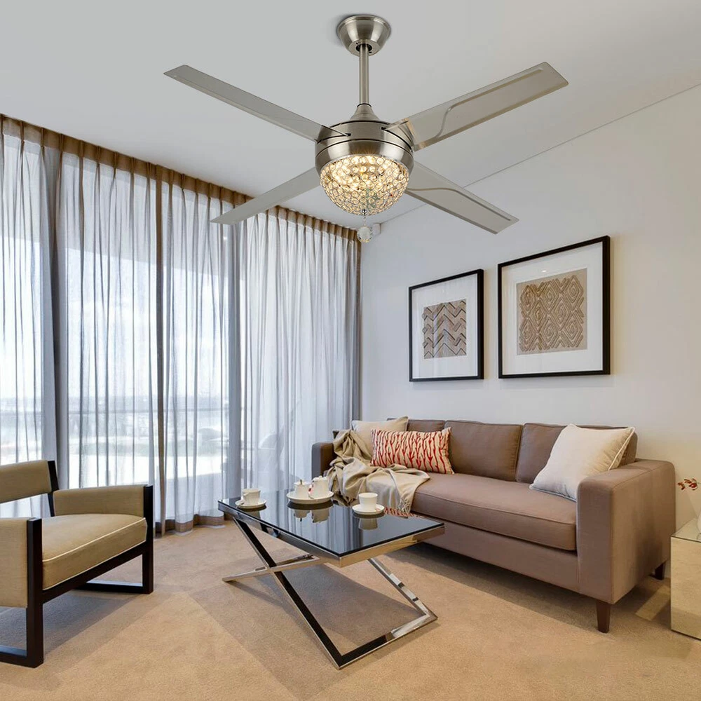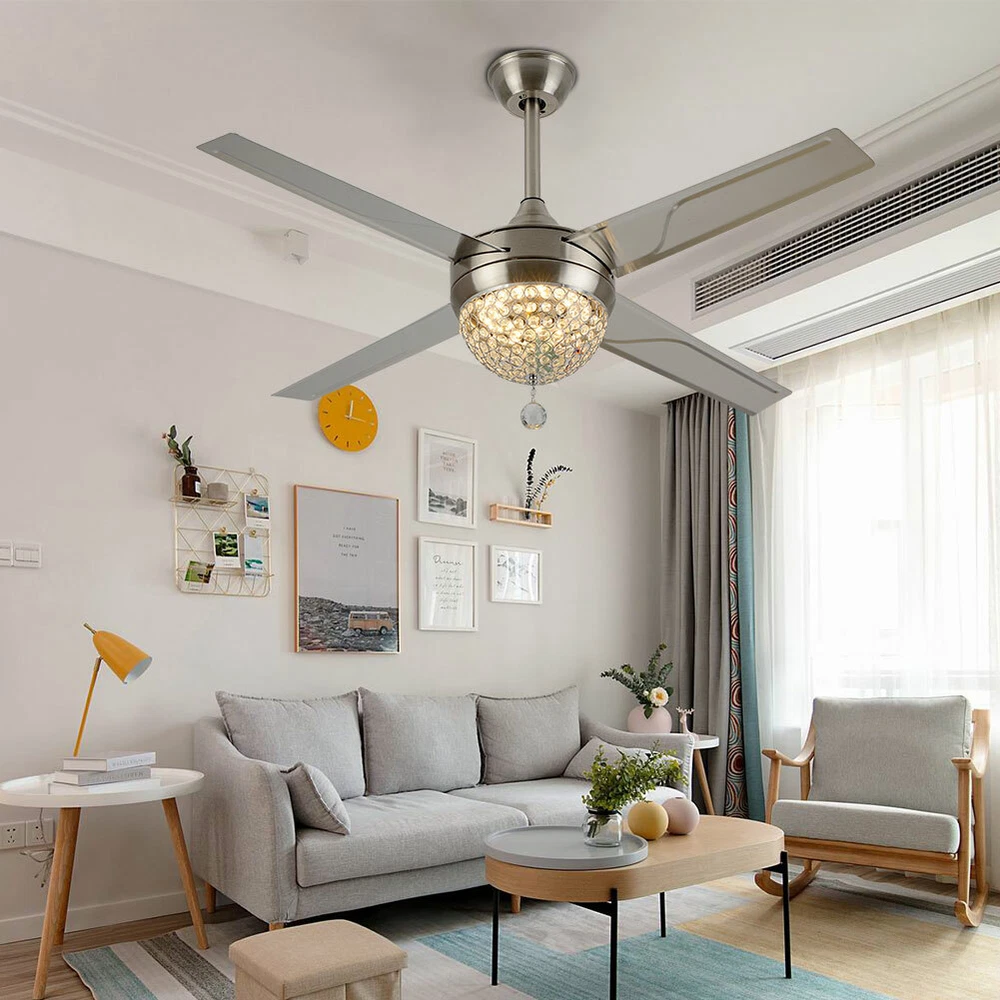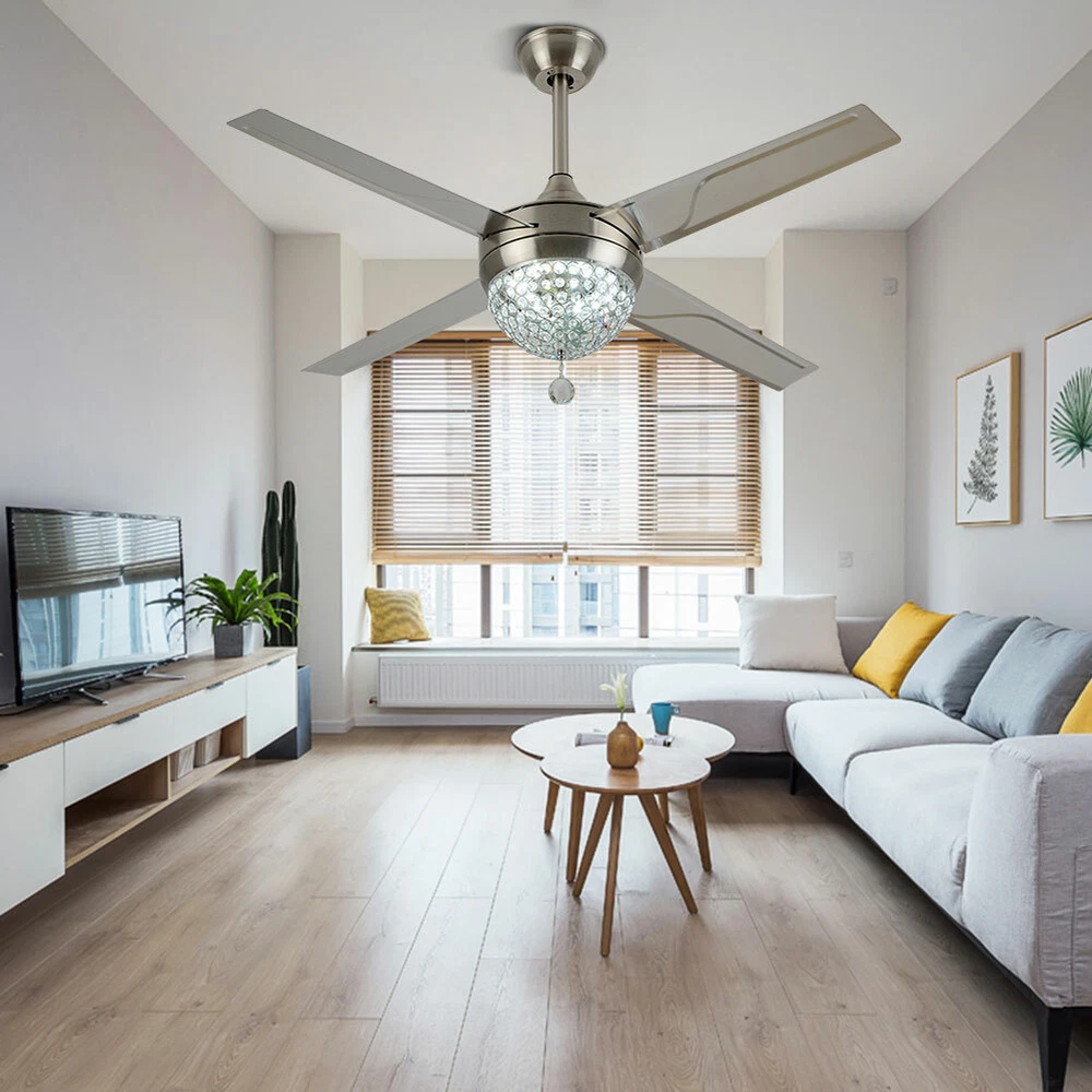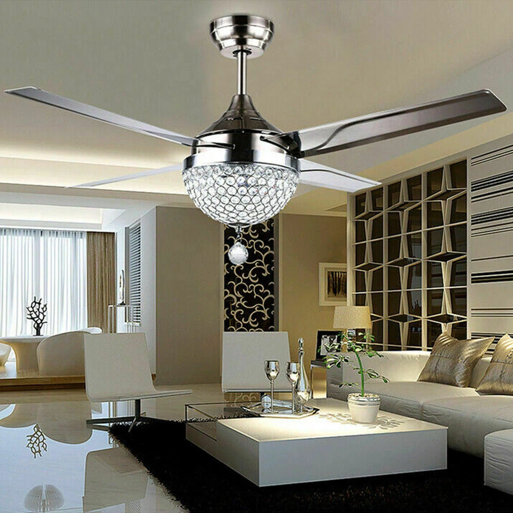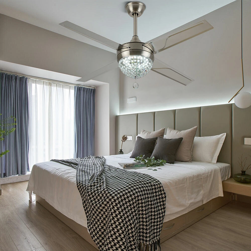 Ceiling Fans HCX185-US simple chandelier fan made of premium materials for stable operation and longer life windward ceiling fan use metal decoration dull clock, more tight security and pursuit the excellence quality for you About this item 【Premium Material】 : A unique metal round arched lampshade is used, bright crystal decoration is placed on the outside. simple but elegant, 4-Stainless Steel Blades, for great air movement. 2 downrod provide 【Great Looking】: Ceiling fan with remote: LED lights have 3 color changes (3000K-4500K-6000K), Fan has 3 speed settings (Low-Mid-High). All these functions can be easily controlled by remote 【Motor】with metal body is designed the imported silicon steel sheet and imported premium bearings, It can extend longer life and smooth operation Ceiling Fa 44" Crystal Fan Ceiling Light LED Chandelier 3 Speed Fan Lamp + Remote Control Modern Crystal Ceiling Fan Light w/ Remote Control 3-speed Chandelier Lamp 44" Features: Premium Material: A unique metal round arched lampshade is used, bright crystal decoration is placed on the outside. simple but elegant, 4-Stainless Steel Blades, for great air movement. 2 downrod provide Great Looking: Ceiling fan with remote: LED lights have 3 color changes (3000K-4500K-6000K), Fan has 3 speed settings (Low-Mid-High). All these functions can be easily controlled by remote Motor: with metal body is designed the imported silicon steel sheet and imported premium bearings, It can extend longer life and smooth operation Ceiling Fan with LED Light : Replaceable LED light will last a longtime and save you the most on your energy bills. Ceiling Fan with Remote Control : Control the light and fan speed separately for ease and convenience. Specification Size: 44inch Blade Material: Stainless Steel Color temperature: CCT 3 light cycles Light source type: LED(Light Kit Included) Control: Remote Control Included Fixture Finish: Crystal Lampshade Voltage: Voltage: 110-120V Fan Mounting Type: Ceiling Mount, Downrod Mount Downrod Length: 2 downrod of3.87 and 7.87inch (included) Remote battery: (Included) Applicable Space:107-312square feet Applicable Place: living room/ bedroom /office and restaurant Installation Instruction For your safety, Please turn off the power before installation Please check parts against the packing list to see if the accessories are available. We provide install instructions for you. please referred to install manual or have a professional electrician. If need any help, please contact us. What you get: 1x Ceiling fan 1x Screws sets 2x Down rods (10CM & 20CM) 1x Remote control 1x nstruction Manual Payment Delivery details Terms of sales About us Contact us Payment We accept ebay payment 。 Fees such as import duties, taxes are not included in the item price or shipping costs. These charges are the buyer's responsibility. Delivery details Shipping: 2-9 working days to: USA Terms of sales We maintain high standards of excellence and strive for hundred percent customer satisfaction. Feedback is very important to us. We hope that you contact us immediately before you give neutral or negative feedback, so that we can address your concerns. It is impossible to address issues if we do not know about them! About us Your satis faction is our ultimate goal. We work hard to earn your trust and future business. Our certified technicians have tested each item before shipping. The unit comes with 1 year limited warranty on all manufacturing defects. a) If you receive a defective item, you may return it or ask for a discount. Please contact us within 14 days after you receive the package. b) What you returned must be intact and in its original packaging as re? u. Customer is responsible for shipping costs of the returned item. c) We will cover the cost of shipping back t with the shipping rate indicated in the registration page. We will send you a new unit or refund the full payment you paid. Thank you. Contact us Business Hour Business Hour: Monday To Friday: 8:30 AM to 5:00 PM (Beijing China time) Due to time zones, our reply to your questions may not be immediately. But within above working time, we will reply your email within 24 hours. If it's non-workdays, please kindly be patient and wait till Monday. Please contact us with ebay message. Please feel free to contact us if you have any questions. Monday To Friday: 8:30 AM to 5:00 PM (Beijing China time) Due to time zones, our reply to your questions may not be immediately. But within above working time, we will reply your email within 24 hours. If it's non-workdays, please kindly be patient and wait till Monday. Please contact us with ebay message. Please feel free to contact us if you have any questions. On Jan 6, 2025 at 21:44:39 PST, seller added the following information: