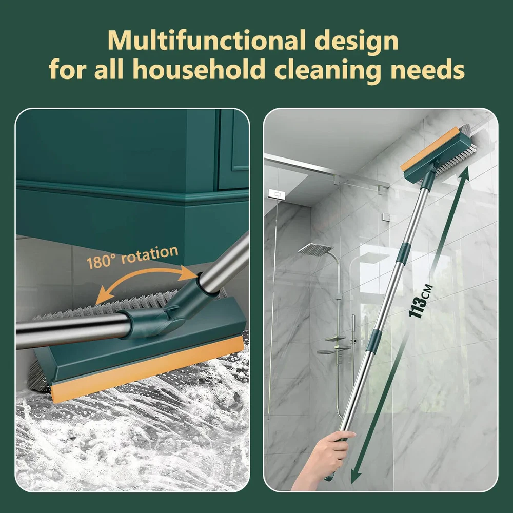Features: [3 in 1 Multifunctional] Our floor scrubbing brush is composed of upper rod, handle, lower rod, brush head and other hidden parts, with 3 in 1 multifunctional, can be used as a brush and scraper [44Inch Adjustable Long Handle] The main long handle tile scrubbing brush is adjustable, ranging from 19" to 44" 3 rods, you can adjust the floor scrubber handle according to the cleaning task. Makes you more comfortable and sweeps without bending over. [45° Rotation Design] Our rotating bathroom kitchen floor crevice cleaning brush is designed with a 45 degree effort saving angle between the grout brush head and handle to reach corners, grooves and grout lines. [Easy to Use and Clean]Our cleaning long-handled brushes can use the back of the scraper bar to scrub sewage, wipe, and scrub floors after sweeping with just one wipe to clean and dry! Get your cleaning done quickly. Specification: Materials: Stainless Steel Stainless Steel, PP and TPR Color: green and yellow Overall length: 113cm/44.5inch Brush width: 24cm/9.4inch Design: Triangular brush head/soft rubber scraper/brush head can be rotated 180 degrees Application: corners, crevices, windows, glass Applicable occasions: home, kitchen, restaurant Components: Upper rod, handle, lower rod, brush head Package included: 1x Floor Scrub Brush