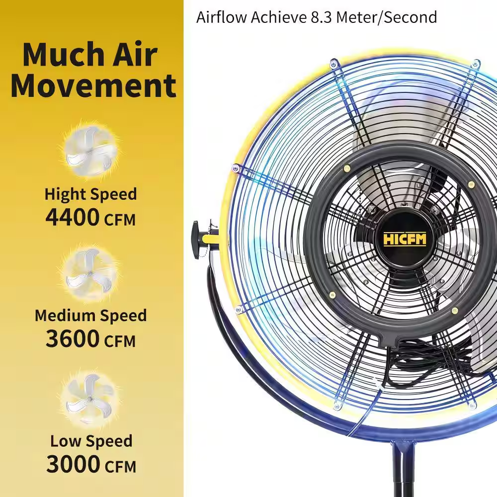 Fast Shipping On All Items 30 Days Money Guarantee Customer Support Excellent Service 100% Satisfaction Satisfaction Guaranteed 4400 CFM 20 In. Outdoor Misting Fan in Yellow Pedestal Standing Base with IP44 Enclosed Motor, 180° Tilted Head Specification CFM 4400 Color Family Yellow Control Type Fan Control Cord Length (ft) 9 ft Decibel (Sound) Rating 64 dBA Fan Diameter (in) 16-20 Fan Features High Velocity Fan Type Pedestal Fan Indoor/Outdoor Indoor/Outdoor Number of Fan Speeds 3 Speeds Plug Type Parallel Power Type Plug-In Returnable 90-Day Voltage (volts) 120 Certifications and Listings UL Certified Manufacturer Warranty 180days Fan diameter (in) 20 in Product Depth (in) 22 in Product Height (in) 50 in Product Width (in) 21 in 21.0 inches x 22.0 inches x 50.0 inches. Item Description Removable spray kit Three-speed adjustable wind speed Turbine aluminum blades, high speed and durable IP44 Outdoor Completely sealed IP44 1/6 HP powerful motor with thermal overload protection for wet locations. composed with 9 ft. power cord with GFCI plug. The moisture resistant design are perfect for environments with high humidity, dust, debris even raining. About us We offer the best prices around on high quality products. Our E-store includes media such as books, movies, music and games while offering electronics, toys, sporting apparel, clothing, tools, general home, garden items and more. Shipping We are always working hard to ensure your package arrives as soon as possible. Please understand that some factors like weather, high postal traffic, and the performance of shipping companies are outside of our control. We offer free shipping to the lower 48 states and ship within 2-3 business days of payment, usually sooner. We do not accept P.O. Boxes. Please provide a physical address. For shipping outside of the continental USA, we only use eBay's Global Shipping Program.The item is shipped to KY and then sent to the rest of the world. International customers are responsible for all duties and taxes. Continue to check out to calculate costs for shipping the item to your country. Messages regarding eBay's Global Shipping Program MUST be directed at eBay EXCLUSIVELY. Returns We offer a 30-Day Return Policy on items in which you are not completely satisfied with. You have the option of a full-refund or an exchange of the item. No returns are available on items shipped outside of the USA Satisfaction We try over very best to make sure every customer is completely satisfied. If there's a problem, message us! We're happy to help. Payment Options Shop With Confidence