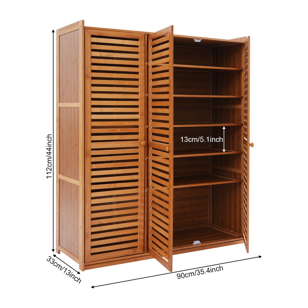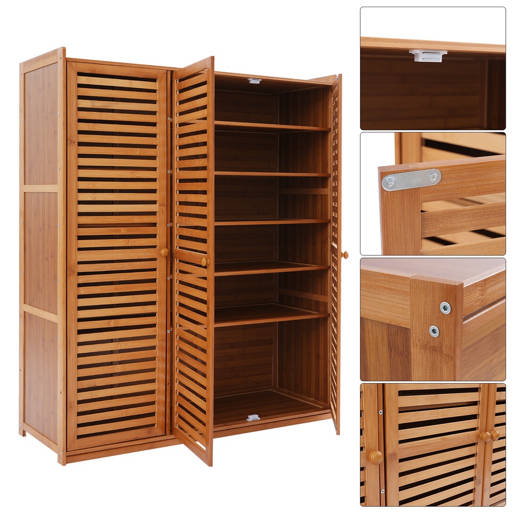 welcome Description In our daily lives, a neat and organized space can make us feel relaxed and happy. The feeling of coming home starts from entering the door and changing shoes. Look at our shoe storage cabinet made of premium natural bamboo and density board with the varnishing process for great durability . With its large capacity and elegant appearance, this item makes you feel warm, giving you a sense of pleasure and comfort from the moment you walk in the door. Key Features Build to Last: It is made of premium natural bamboo and density boards with a varnish process, which makes it strong, wear-resistant, environmentally friendly, and not easy to deform or mold , so you can use it with peace of mind in your daily life. Large Capacity: The 7-tier design(the top platform included), each tier can accommodate 4-5 pairs of regular shoes(for reference), makes this product spacious enough for a family's shoe storage needs. The top platform with raised edges can be used to place small potted plants, bags, umbrellas, etc.(not included) while protecting them from falling. Strong Load-bearing Capacity: The thick materials and rectangular construction allow it to hold up to 22.05 lbs without collapsing, giving you peace of mind. Shoe Storage Assistant: It cleverly integrates shoe storage into life, placing it at the doorway to store your messy shoes, making it pleasing to the eyes as soon as you open the door, and bringing you an organized lifestyle. Thoughtful Design: The grille-type cabinet doors enable effective ventilation and avoid odor& dust accumulation. You can also change the tier spacing by removing the laminates to fit different-sized shoes and items. High Space Utilization: It utilizes vertical space wisely and has a small footprint( 35.43*12.99 inches ), so this cabinet won't take up too much space in the room. Elegant Appearance: The sleek brown finish and simple structure create a touch of elegance and casualness. It blends well with a variety of interior styles, bringing aesthetics to your space. Hassle-free Cleaning: Thanks to its smooth surface and simple structure, you can easily clean it with a damp rag (not included). Ideal Gift : Beautiful appearance and practical function make it a nice housewarming gift for your family and friends. Details Rounded Corners and Edges: The corners are rounded and smooth to reduce collisions and improve safety. Magnetic Doors: This design allows doors to be closed securely to prevent shoes from falling. Elevated Bottom: It promotes ventilation and allows for better moisture resistance . Round Handles : You can quickly open or close the doors through them. Application It can be used in the foyer, entrance, living room, porch, corridor, and other places for storing shoes, trainers, sandals, sundries, and so on. Specifications Material: Bamboo, Density Board Process: Varnish Style: Classic Color: Brown Shape: Rectangular Assembly Required: Yes Mount Type: Freestanding Product Care Instructions: Wipe with a Soft Cloth Overall Load-bearing Capacity: 10kg/22.05lbs The Number of Shoes Applicable Per Tier: 4-5 Pairs Number of Tiers: 7 (Top Platform Included) Number of Doors: 3 Tier Spacing: 13cm/5.12in Product Size: 90*33*112cm/35.43*12.99*44.09in Package Size: 98.5*33*15cm/38.78*12.99*5.91in Gross Weight: 11.75kg/25.9lbs Net Weight: 11kg/24.25lbs Package Included 1* Shoe Storage Cabinet All Accessories for Assembly Notes Please confirm the product size before purchasing. Please note that this product does not include display items such as shoes. Please note that the number of shoes that can be stored will vary depending on the size and height of the shoes. Please allow the slight color difference caused by the shooting light and 1-3cm error due to manual measurement, and make sure you do not mind before you order. Payment Delivery details Terms of sales About us Contact us Payment We accept ebay payment 。 Fees such as import duties, taxes are not included in the item price or shipping costs. These charges are the buyer's responsibility. Delivery details Shipping: 2-9 working days to: USA Terms of sales We maintain high standards of excellence and strive for hundred percent customer satisfaction. Feedback is very important to us. We hope that you contact us immediately before you give neutral or negative feedback, so that we can address your concerns. It is impossible to address issues if we do not know about them! About us Your satis faction is our ultimate goal. We work hard to earn your trust and future business. Our certified technicians have tested each item before shipping. The unit comes with 1 year limited warranty on all manufacturing defects. a) If you receive a defective item, you may return it or ask for a discount. Please contact us within 14 days after you receive the package. b) What you returned must be intact and in its original packaging as re? u. Customer is responsible for shipping costs of the returned item. c) We will cover the cost of shipping back t with the shipping rate indicated in the registration page. We will send you a new unit or refund the full payment you paid. Thank you. Contact us Business Hour Business Hour: Monday To Friday: 8:30 AM to 5:00 PM (Beijing China time) Due to time zones, our reply to your questions may not be immediately. But within above working time, we will reply your email within 24 hours. If it's non-workdays, please kindly be patient and wait till Monday. Please contact us with ebay message. Please feel free to contact us if you have any questions. Monday To Friday: 8:30 AM to 5:00 PM (Beijing China time) Due to time zones, our reply to your questions may not be immediately. But within above working time, we will reply your email within 24 hours. If it's non-workdays, please kindly be patient and wait till Monday. Please contact us with ebay message. Please feel free to contact us if you have any questions.
