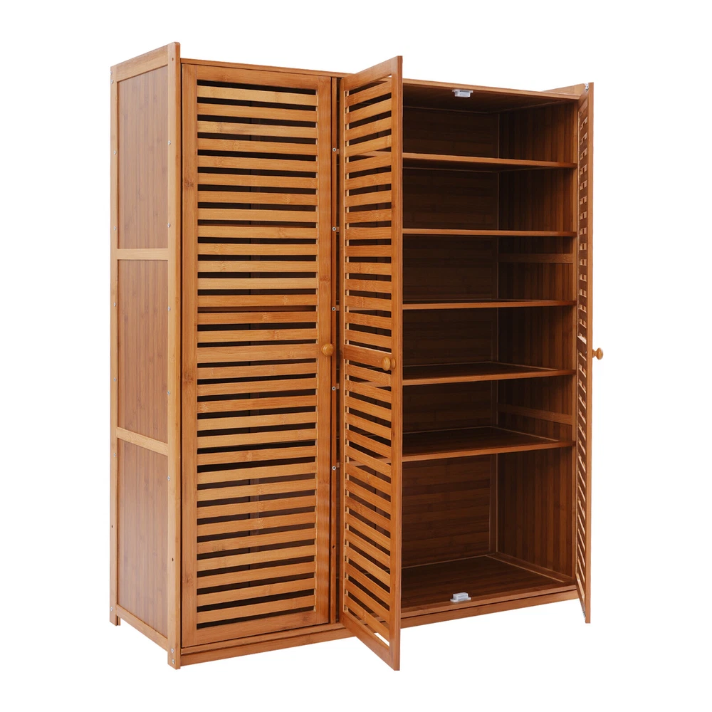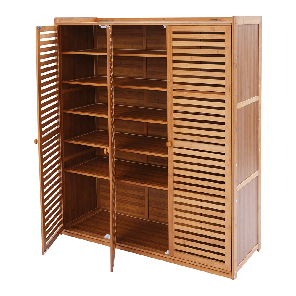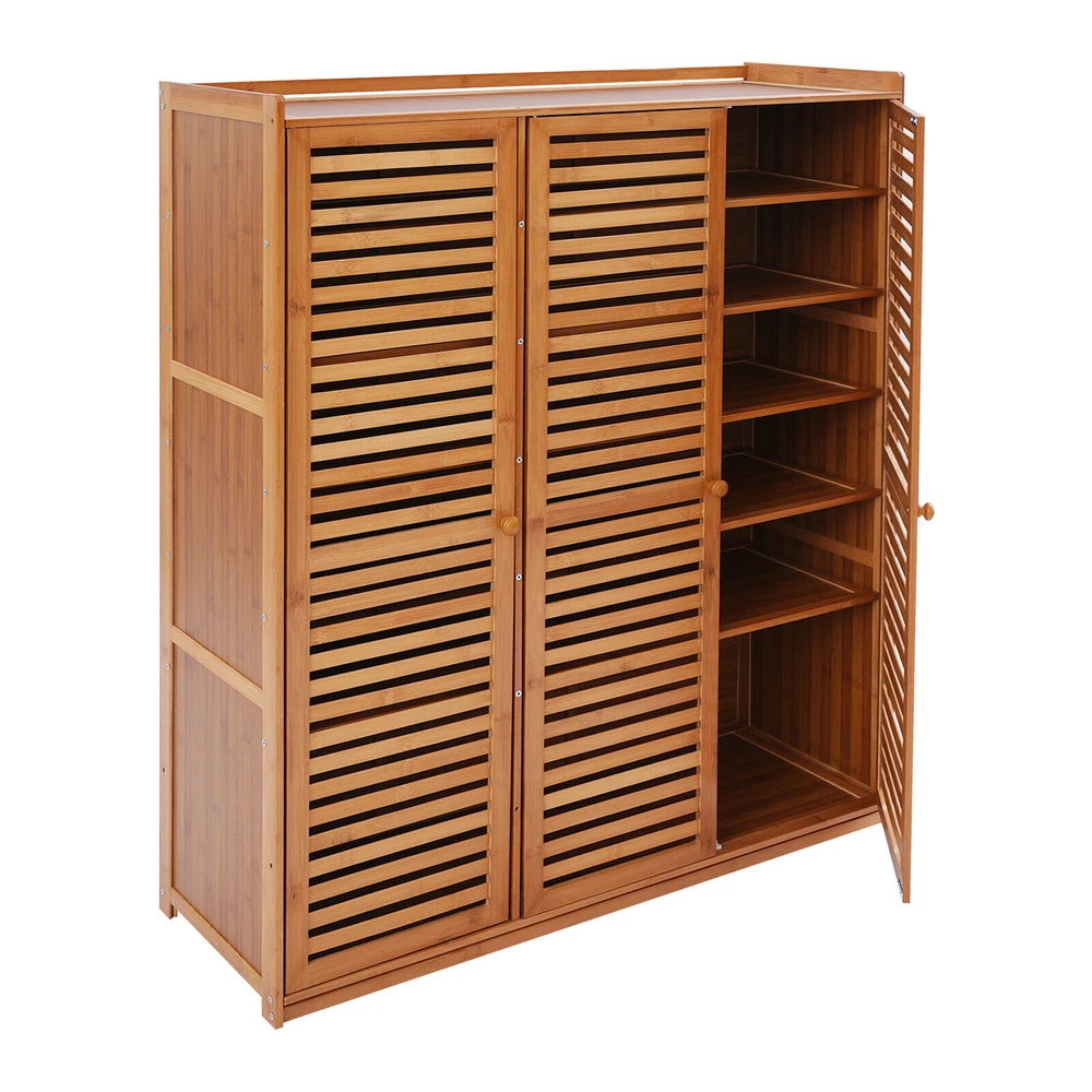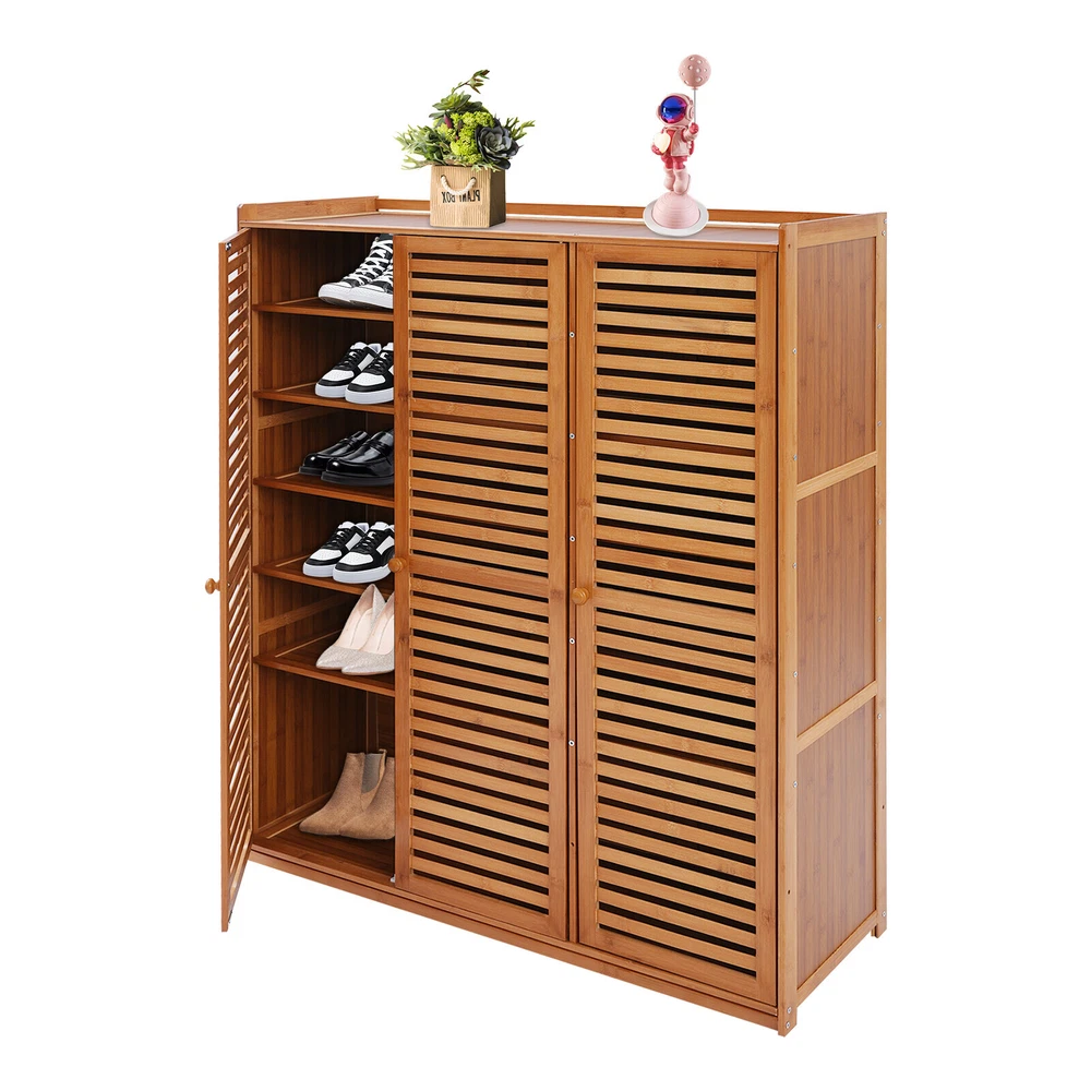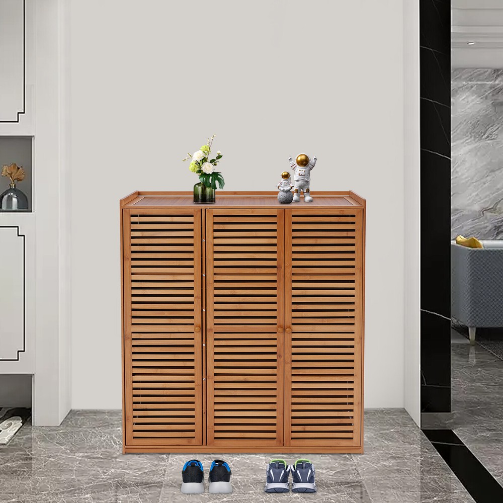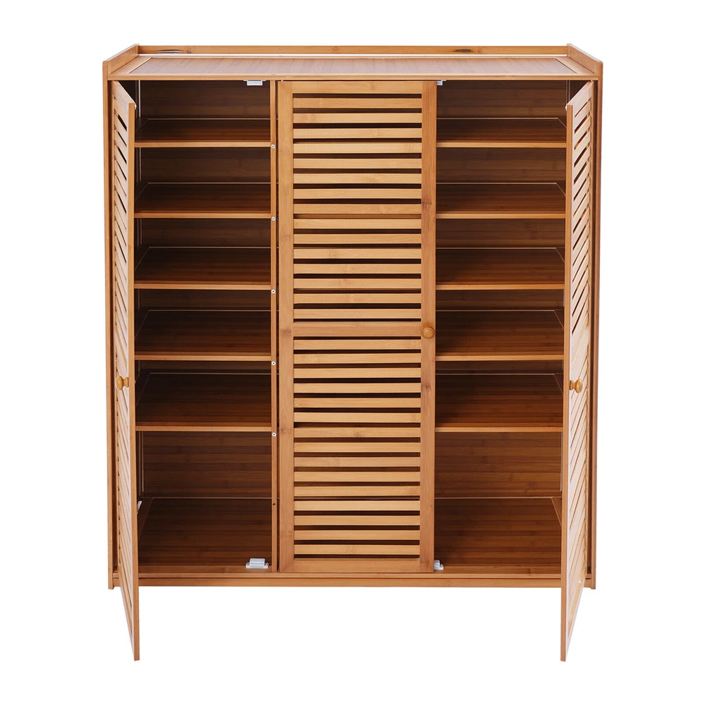 This shoe cabinet is a game-changer for keeping entryways tidy! The sturdy bamboo and density board construction feels premium, and the 7-tier design holds so many shoes without cluttering the space. The 3-door cabinet keeps everything hidden but easily accessible. Love how it adds a warm, stylish touch while keeping my home organized—perfect for small spaces!