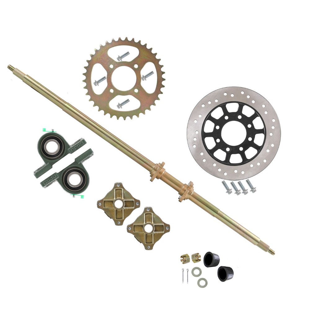 44" ATV Quad Go Kart Rear Live Axle Kit Sprocket Brake Disc Wheel Hub Golf Cart Product function description: NOTE: Installation Manual Is NOT Included Professional Installation Is Highly Recommended Description: This is a live axle kit for DIY rebuild Go Kart, ATV, Quad and Drift Trikes Axle Overall length (from end to end): 1120mm (44") The thickest part of the axle is 33mm (1.3") Chain Sprocket: 530 37 Tooth 58mm Brake Disc Diameter: 220mm(8.66") Spline teeth: 24T Fits (For the reference): Perfect for DIY gokart projects or rebuilds Fit for quad ATV buggy go kart Fit many atv quads, go karts such as atomik , motowork, DHZ , LEI etc Package includes : Rear Axle + Pair of pillow blocks + Sprocket + Brake Disc + Pair of 4 bolt wheel hubs 44" Go Kart Rear Live Axle Kit Shaft Sprocket Pillow Block ATV Quad Golf Cart 44" ATV Quad Go Kart Rear Live Axle Kit Sprocket Brake Disc Wheel Hub for Golf Cart Product function description: NOTE: Installation Manual Is NOT Included Professional Installation Is Highly Recommended Description: This is a live axle kit for DIY rebuild Go Kart, ATV, Quad and Drift Trikes Axle Overall length (from end to end): 1120mm (44") The thickest part of the axle is 33mm (1.3") Chain Sprocket: 530 37 Tooth 58mm Brake Disc Diameter: 220mm(8.66") Spline teeth: 24T Fits (For the reference): Perfect for DIY gokart projects or rebuilds Fit for quad ATV buggy go kart Fit many atv quads, go karts such as atomik , motowork, DHZ , LEI etc Package includes: Rear Axle + Pair of pillow blocks + Sprocket + Brake Disc + Pair of 4 bolt wheel hubs Payment Delivery details Terms of sales About us Contact us Payment We accept ebay payment 。 Fees such as import duties, taxes are not included in the item price or shipping costs. These charges are the buyer's responsibility. Delivery details Shipping: 2-9 working days to: USA Terms of sales We maintain high standards of excellence and strive for hundred percent customer satisfaction. Feedback is very important to us. We hope that you contact us immediately before you give neutral or negative feedback, so that we can address your concerns. It is impossible to address issues if we do not know about them! About us Your satis faction is our ultimate goal. We work hard to earn your trust and future business. Our certified technicians have tested each item before shipping. The unit comes with 1 year limited warranty on all manufacturing defects. a) If you receive a defective item, you may return it or ask for a discount. Please contact us within 14 days after you receive the package. b) What you returned must be intact and in its original packaging as re? u. Customer is responsible for shipping costs of the returned item. c) We will cover the cost of shipping back t with the shipping rate indicated in the registration page. We will send you a new unit or refund the full payment you paid. Thank you. Contact us Business Hour Business Hour: Monday To Friday: 8:30 AM to 5:00 PM (Beijing China time) Due to time zones, our reply to your questions may not be immediately. But within above working time, we will reply your email within 24 hours. If it's non-workdays, please kindly be patient and wait till Monday. Please contact us with ebay message. Please feel free to contact us if you have any questions. Monday To Friday: 8:30 AM to 5:00 PM (Beijing China time) Due to time zones, our reply to your questions may not be immediately. But within above working time, we will reply your email within 24 hours. If it's non-workdays, please kindly be patient and wait till Monday. Please contact us with ebay message. Please feel free to contact us if you have any questions. On Feb 24, 2025 at 00:04:57 PST, seller added the following information:
