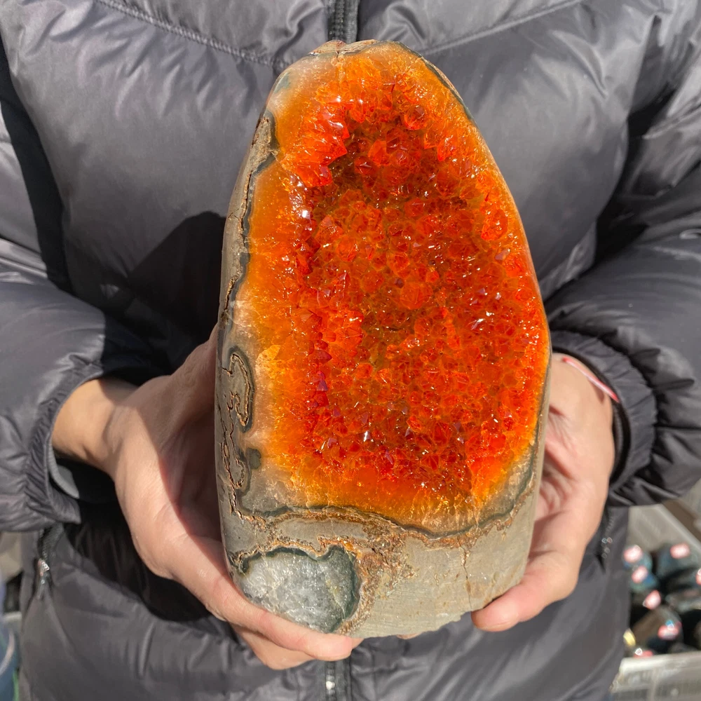4.4LB Natural Citrine Geode Quartz Cluster Crystal Healing Specimen Cathedrals