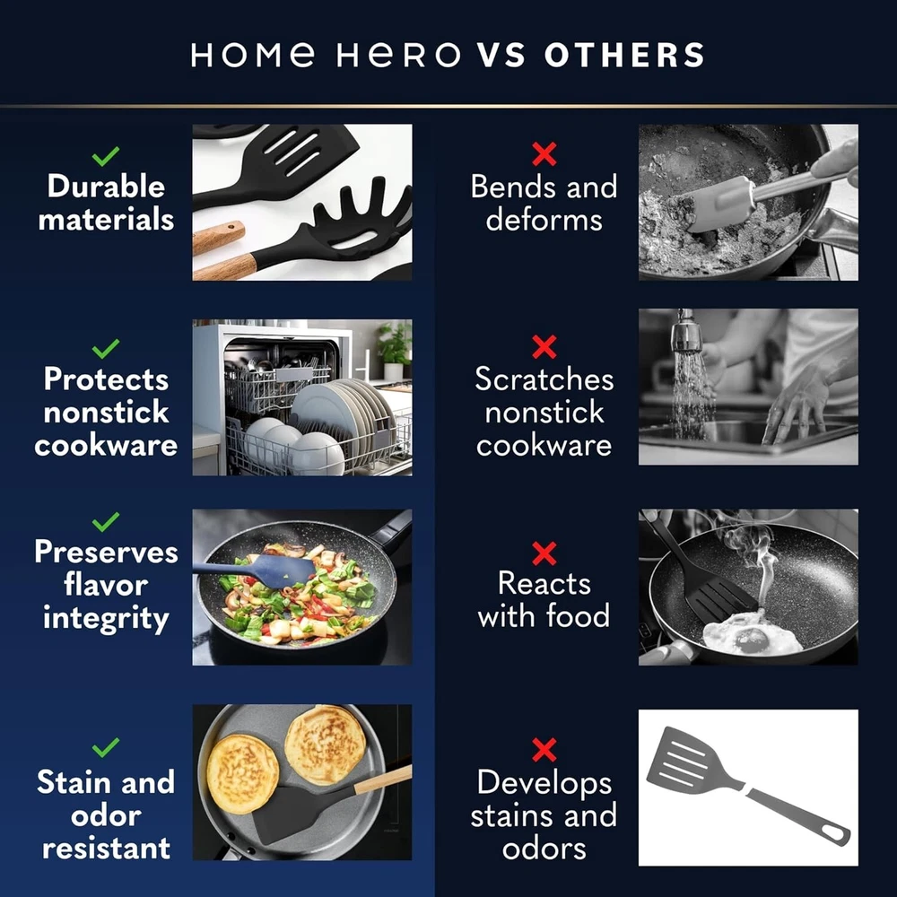 44-Piece Silicone Kitchen Utensils Set with Ergonomic Wooden Handles - Black ‹ › ‹ › ‹ › ‹ › ‹ › ‹ › ‹ › ‹ › ‹ › ‹ › ‹ › 44-Piece Silicone Kitchen Utensils Set Elevate Your Cooking Experience Discover the ultimate kitchen companion designed for both novice cooks and culinary enthusiasts alike. Our comprehensive 44-piece kitchen utensils set includes all the essentials you need to conquer every culinary challenge with style and ease. What’s Included: Solid Turner Slotted Turner Spoon Spatulas Solid Spoon Slotted Spoon Spatula & Large Spatula Soup Ladle Skimmer Egg Whisk Pasta Server Brush, Tongs & more! Unique Ergonomic Wooden Handles: Say goodbye to hand fatigue! Our utensils feature all-natural beechwood handles designed with your comfort in mind. The uniquely smooth, flat-edged ergonomic shape provides a soft, comfortable, non-slip grip, allowing you to focus solely on your culinary creations without discomfort. Hassle-Free Storage: This set comes complete with a stylish utensil holder equipped with drainage holes and 10 stainless steel hooks for effortless organization. Enjoy your clutter-free kitchen, where elegance meets functionality. Safe and Durable: Crafted from BPA-free, food-safe silicone, our utensils are heat-resistant from -22° to 410°F, ensuring they remain intact without melting or emitting harmful fumes. The soft silicone tips are gentle on your non-stick cookware, preserving your pots and pans for years to come. Exceptional Customer Service: Your satisfaction is our priority. Should you have any questions or concerns, our responsive team is just a message away on Amazon, ready to assist you within 24 hours. Why Choose Our Kitchen Utensils Set? Transform your culinary space with our 44-piece silicone kitchen utensil set, where usability, elegance, and durability coalesce. These utensils not only enhance your cooking experience but also add a touch of sophistication to your kitchen. Make every meal a masterpiece – order your set today! Shipping Free & Fast Shipping - We offer free shipping to most of the USA with a normal delivery time of 3-7 days. However, due to the current situation, additional delivery time (up to 3 weeks) may be required for some items. Alternative Carriers - We may use alternative carriers (e.g. USPS, FedEx, UPS, etc.) to ensure your package arrives safely and on time. Due to the use of multiple carriers, we are unable to provide a tracking number automatically. Handling Time - Orders are processed and shipped within 1-2 business days of receiving cleared payment. Shipping Restrictions - Shipping to Alaska, Hawaii, Puerto Rico, Guam, and other US territories may incur shipping charges or delivery restrictions. Please contact us before ordering, or your order can be refunded/cancelled. State Restrictions - There may be restrictions based on your state of purchase. For example, certain items may not be shipped to California due to state regulations. Contact for Tracking Updates - If you require tracking updates or have any concerns about the delivery of your order, please feel free to contact us, and we will be happy to assist you. Return Please see our eBay Return Policy. Thank you. Payment We accept all major credit cards, PayPal, and Apple Pay for your convenience. Your payment information is secure and encrypted to ensure a safe and seamless transaction. Please complete your payment within 3 days of purchase to avoid any delays in shipping. Feedback Your feedback is extremely important to us. We strive to provide the best products and customer service possible. If you are satisfied with your purchase, please take a moment to leave us a positive review. If you have any concerns or issues with your order, please contact us before leaving negative feedback. We are committed to resolving any problems and ensuring your satisfaction. Contact Us If you have any questions or concerns, please feel free to reach out to our customer support team. You can contact us through the eBay messaging system. We are available Monday to Friday, 9:00 am to 5:00 pm EST, and we will do our best to respond to your inquiry within 24 hours. Thank you for supporting our small family business! UPC: Not Set Model: Silicone Kitchen Utensils Set Unit Quantity: 2.37 kg Set Includes: Spatula,solid turner,slotted turner,spoon spatulas,solid spoon,slotted spoon,large spatula,soup ladle,skimmer,egg whisk,pasta server,brush,tongs,measuring cups,measuring spoons,scissor,grater,spreader,peeler,masher,can opener,pizza cutter,bottle opener,ice cream spoon Material: Silicone,wood,beechwood,stainless steel Features: With Handles,ergonomic handle,non-stick,heat resistant,hassle-free storage,includes utensil holder,includes hooks,food safe,non-scratch Brand: Unbranded Type: Cooking Utensils Set Handle Material: Wood Color: Black Number of Items in Set: 44 MPN: Not Set Theme: Not Set Country/Region of Manufacture: Not Set Pattern: Not Set Making Method: Not Set Unit Type: Not Set Personalize: Not Set