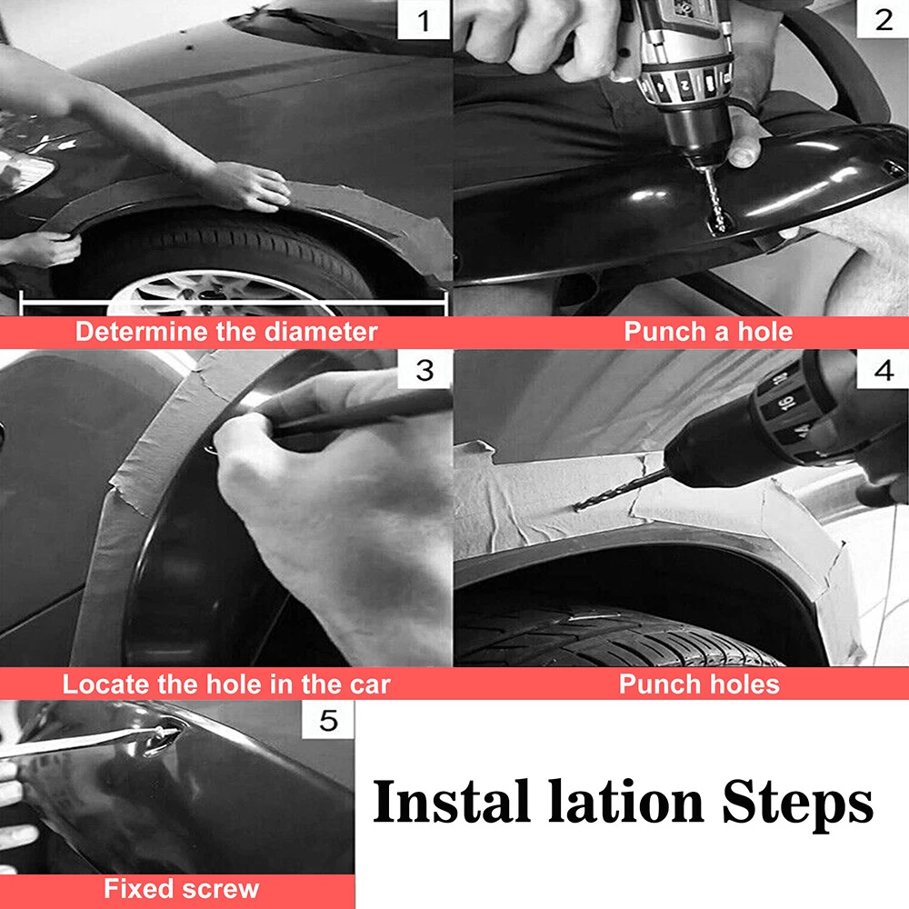 How to select and install 1. Firstly, determine the diameter of the wheel eyebrow of the original car, then select the appropriate wheel eyebrow size; 2. After receiving the goods, put the wheel eyebrow in the original car, and there are 6 screws on the wheel eyebrow to determine the hole position; 3. Punch holes in the original vehicle and the wheel eyebrow and fix with screws. 4.If you want to change the color, you can do it by yourself. Specification Installation: Riveted / Bolted / Screw On Material: PP Colour: Carbon Fiber Black Placement on Vehicle: Left, Right, Front, Rear Size: 34.84"/888mm (length), 13.62"/346mm (Height) Feature Smooth and precise edge cutting finish. Additional Coverage for Larger Tire and Wheel Packages Improve Appearance and Styling Dramatically Protects wheel from mud, scratches, sand and other outer damage. Made of high quality PP plastic, flexible and resistant to corrosion, harder and more durable. Easy to install & Universal Fitment (Please make sure to measure vehicle's fenders size before purchasing) Package Included 4 x Fender Flare 24 x Screws On Jan 17, 2024 at 21:57:04 PST, seller added the following information: On Jan 8, 2025 at 17:20:32 PST, seller added the following information: