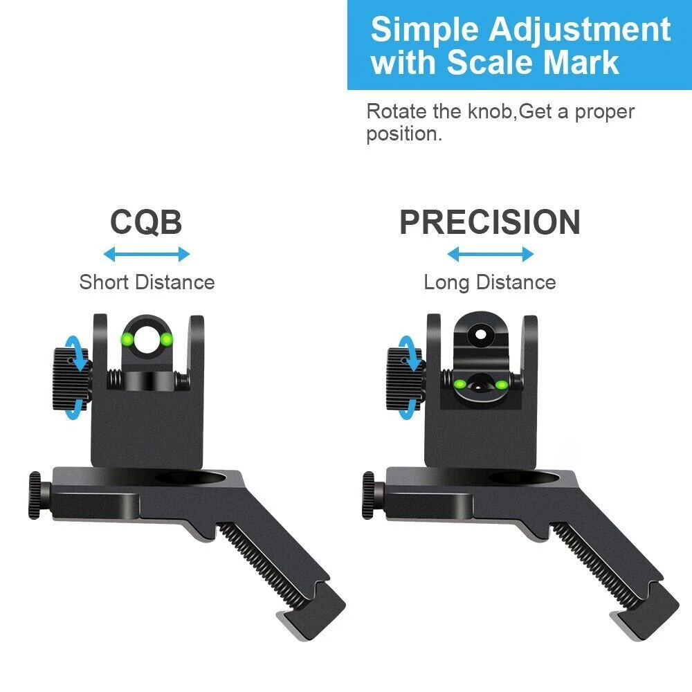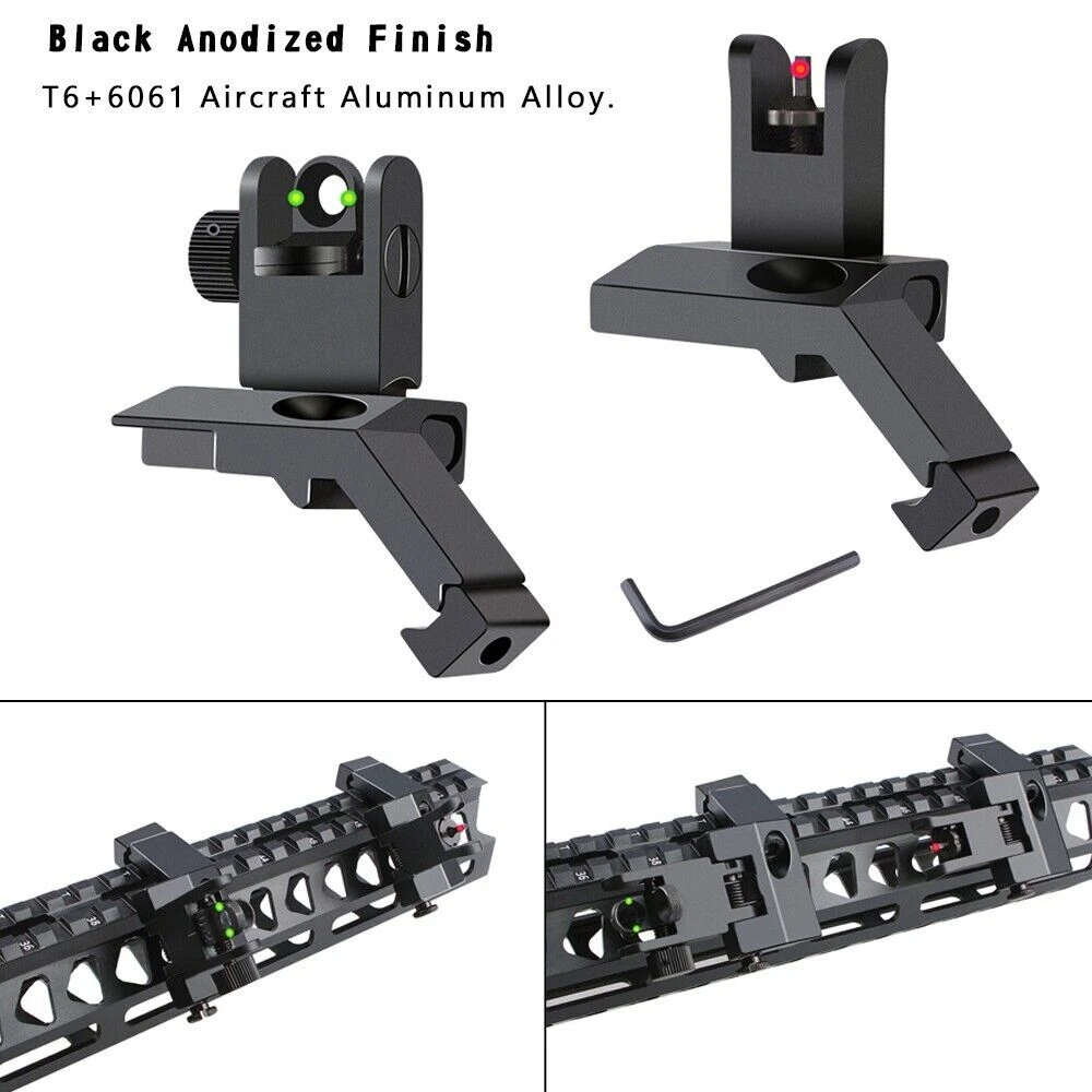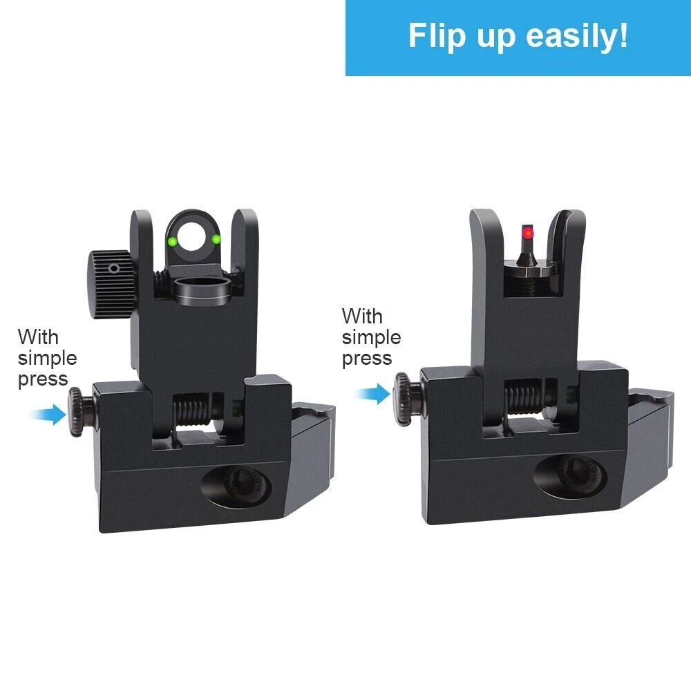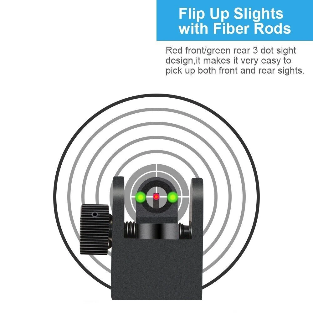 45 Degree Front Rear Sight Flip up Red and Green Dot Fiber Optics Iron Sights US