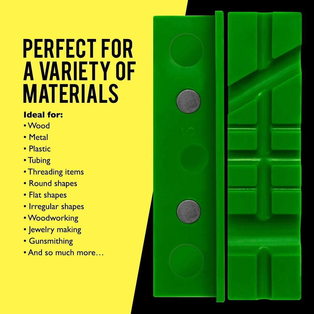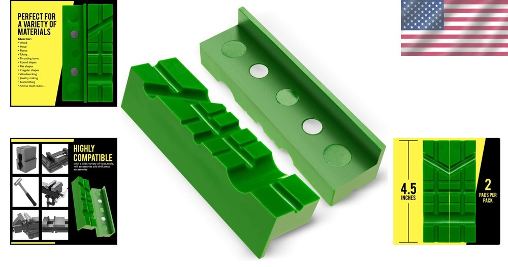 4.5 Inch Magnetic Soft Jaws - Versatile Vice Jaw Pads for Wood and Metal Work ‹ › ‹ › ‹ › ‹ › ‹ › ‹ › ‹ › ‹ › ‹ › ‹ › 4.5 Inch Magnetic Soft Jaws Versatile Vice Jaw Pads for Wood and Metal Work Product Highlights: Ideal For A Variety Of Materials: Perfect for holding wood, metal, plastic, tubing, and threaded items. Whether it's round, flat, or irregular, these vise pads can handle it all. Highly Compatible: Our soft jaws fit a wide range of vises, including drill press, bench vise, and more, making them ideal for woodworking, jewelry making, gunsmithing, and various DIY projects. Built To Last And Built To Protect: Constructed from thermoplastic polyurethane (TPU) rubber, these pads are designed to hold items securely while safeguarding delicate surfaces from damage. Unique Multi-Groove Design: Featuring multiple holding slots with 90 degree angles for widths of approximately 1/16", 1/8", 1/4", and 3/4", alongside a 60 degree angle for widths around 13/32" to ensure optimal grip. Magnetic Inserts For Broad Compatibility: Embedded magnets ensure the vice jaws stay securely in place, while the versatile 4.5-inch length fits a variety of vise sizes. Includes one complete set of vise jaw pads (2 pads). Why Choose Our Magnetic Soft Jaws? If you're seeking reliable and adaptable accessories for your workshop, look no further than our 4.5 Inch Magnetic Soft Jaws. These versatile vice jaw pads not only promise durability but also offer protection for your prized possessions, ensuring that every project is executed flawlessly. From novice crafters to seasoned professionals, these jaw pads enhance precision and elevate every task to an art form. Invest in quality, safeguard your projects, and experience the ultimate in versatility—order your set of Magnetic Soft Jaws today! Shipping Free & Fast Shipping - We offer free shipping to most of the USA with a normal delivery time of 3-7 days. However, due to the current situation, additional delivery time (up to 3 weeks) may be required for some items. Alternative Carriers - We may use alternative carriers (e.g. USPS, FedEx, UPS, etc.) to ensure your package arrives safely and on time. Due to the use of multiple carriers, we are unable to provide a tracking number automatically. Handling Time - Orders are processed and shipped within 1-2 business days of receiving cleared payment. Shipping Restrictions - Shipping to Alaska, Hawaii, Puerto Rico, Guam, and other US territories may incur shipping charges or delivery restrictions. Please contact us before ordering, or your order can be refunded/cancelled. State Restrictions - There may be restrictions based on your state of purchase. For example, certain items may not be shipped to California due to state regulations. Contact for Tracking Updates - If you require tracking updates or have any concerns about the delivery of your order, please feel free to contact us, and we will be happy to assist you. Return 30-Day Hassle-Free Returns - We want you to be completely satisfied with your purchase. If you are not, you can return the item within 30 days of receiving it for a full refund or exchange. Easy Return Process - To start a return, simply contact us and we will provide you with a prepaid return shipping label and detailed instructions. Restocking Fee - There are no restocking fees for returns. However, the buyer is responsible for return shipping costs if the return is not due to a seller's error. Refund Processing Time - Refunds will be processed within 5 business days of receiving the returned item in its condition. Payment We accept all major credit cards, PayPal, and Apple Pay for your convenience. Your payment information is secure and encrypted to ensure a safe and seamless transaction. Please complete your payment within 3 days of purchase to avoid any delays in shipping. Feedback Your feedback is extremely important to us. We strive to provide the best products and customer service possible. If you are satisfied with your purchase, please take a moment to leave us a positive review. If you have any concerns or issues with your order, please contact us before leaving negative feedback. We are committed to resolving any problems and ensuring your satisfaction. Contact Us If you have any questions or concerns, please feel free to out to our customer support team. You can contact us through the eBay messaging system. We are available Monday to Friday, 9:00 am to 5:00 pm EST, and we will do our best to respond to your inquiry within 24 hours. Buy it now and enjoy a pleasant shopping experience! Model: Vice Jaw Pads Item Width: Vice Jaw Pads Item Length: Vice Jaw Pads Item Height: Vice Jaw Pads Item Diameter: 4.5 in Item Weight: 5.9 oz Unit Quantity: 1 Material: TPU,TPU rubber Type: Vice Jaw Pads Number of Pieces: 2 Size: 4.5 in Jaw Size: 4.5 in Color: Green Unit Type: oz