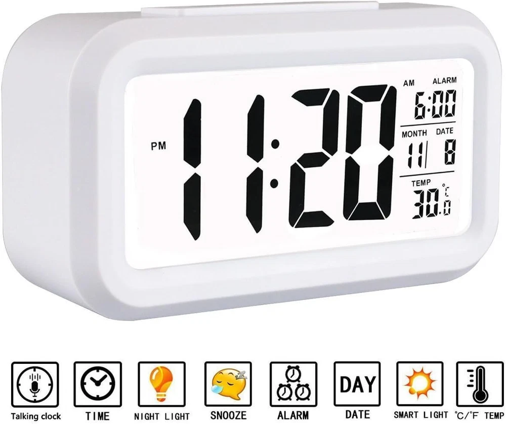 The battery for battery clock can last about 46 months,cordless ,you can take it anywhere,such as bathroom,bookshelf,nightstand, don't have to worry about whether there's a plug or not. We clock store aim to supply affordable, durable and good-looking alarm clocks. BS clock Small Alarm Clock for Kids Classic clock for bedroom,living room,bathroom,kitchen It's round corner shape,really cute and nice.It's suitable for your bedroom and furniture. It’s not only an daily clock, but also a nice room thermometer for your beside clock. Bathroom Clock For bathroom clock,you could keep the time of the morning. Bookshelf Clock Bookshelf Clock Kitchen Clock Great size, you could put in at kitchen table,easy to hold time. 12/24 Hr You could choose 12Hr or 24Hr. Why choose our battery operated clock? Battery opearted, no any cable,you can set it anywhere. Easy read,great for kids who are not very good at reading a clock with hands. Many colors, everyone could have your own color. Easy to set, you could easy to set time, date and clock Enjoy the time with your family ,and make your girls and boys know how to stay with time,the clock you may need it 【Larger Numbers】The 4.5" LED digital display has large 2.1" tall numbers, can be read easily. 【Alarm Clock Battery Operated】This basic alarm clock is powered by 3 xAAA batteries only (not included), which can keep Constantly Big 4.5'' LED digit time display for more than 12 months. Battery operated (no cords) allows it to be used anywhere you need a clock! 【Smart Nightlight 】The small clock features a night light and can be freely to choose three dimmers for LOW - HIGH - OFF as desired. This simple alarm clock can not only be used as a night light to help parents take care of their children better and makes the room cozy, but also make it easier to check the time in the dark. 【Extra Loud Alarm Clock】 This alarm clock has a gradually faster beep noise which continues for 90 seconds. Before the alarm stops itself, top snooze button can be continually pressed to get an extra 8-minute nap.It doesn’t matter how much of a heavy sleeper you are. 【Regular Features】Includes snooze time (5 minutes), 12/24 hour time format, calendar, and Indoor Temperature(C or F), easy for kids, teens to use, basic bedroom bedside table desk gift alarm clock.