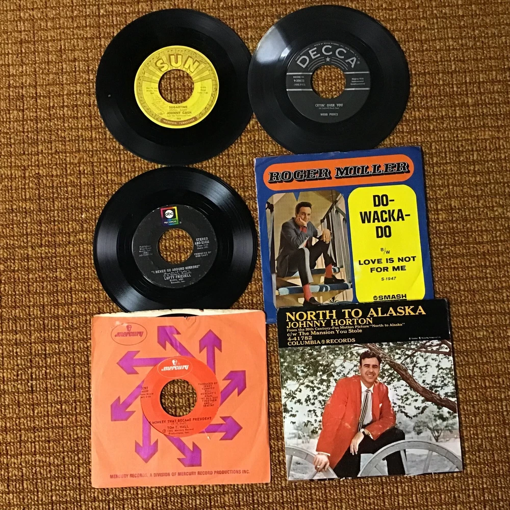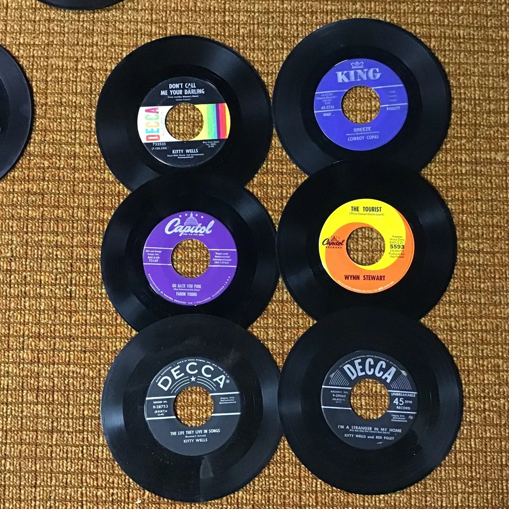 45 RPM 80 + Job Lot-50s-60s Country / Honky Tonkers # 3 NO POP STUFF VG to M- OKay-- This is the third batch of 45s ( no longer listing ramdom collections ) 80+ 45s. I have sleeved them all--easier to show unsleeved. All are CLASSIC country from the 50s and 60s-- I may have put one or two 70s in there BUT NO 80s--todays cra.....stuff-- NO Kenny, Milsap , Mandrell , Urban Cowchip , Denver , ONJ Tay Tay or the dude who made fun of all the artists that are in these piles .. you will find nice Starday , King , some small label -- and DECCA , RCA , CAPITOL and COLUMBIA Hey it's only a buck opening bid -- so you flippers and have a go and maybe get a few goodies for yourselves!!! Postage will be $ 8 USD Overseas TBD On May-01-16 at 09:08:42 PDT, seller added the following information: Revision- my shipping policies are as stated in the description - ignore anything saying local pick up only-- I do ship worldwide ALL GLOBAL SHIPPING HAS BEEN REMOVED-- ALL OVERSEAS CUSTOMERS CAN NOW CHOOSE 1st CLASS SHIPPING record
