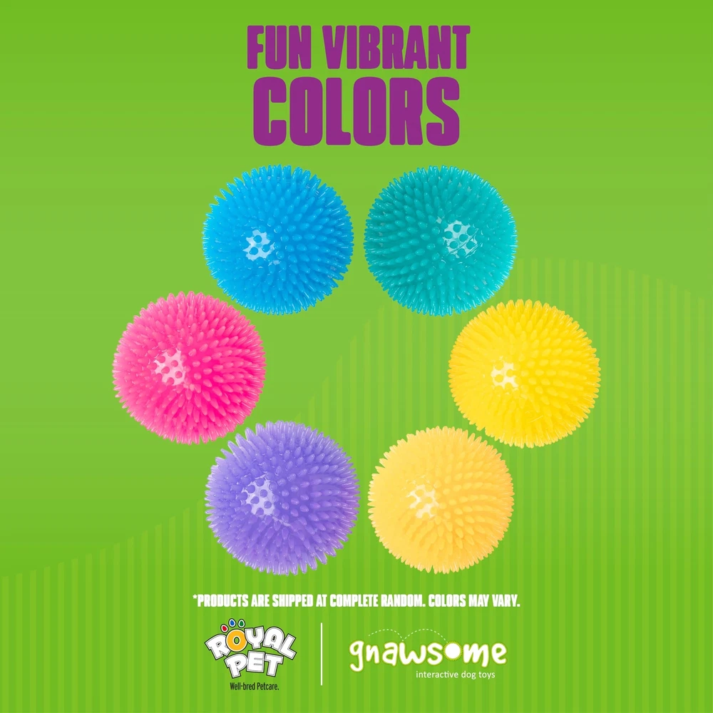 4.5” Spiky Squeak & Light Ball Dog Toy - Extra Large, Cleans teeth and Promotes Dental and Gum Health for Your Pet, Colors will vary, All Breed Sizes Durable Textured Toy for Dogs: The 4.5” Spiky Squeaker Ball is not just a toy; it's a unique dental care companion for your pet. The gum-massaging, spiky texture ensures an invigorating experience, while the loud internal squeaker adds excitement without compromising safety. Promote wellness, exercise, and great times together indoors or outdoors with a fun & colorful waterproof dog toy. A Wagging Tail: Your dog’s loyalty and affection bring you joy every day. Show them love in return with an exceptional-quality toy built to last, even for heavy chewers. Choose your favorite vibrant color—your pup’s bound to approve. Interactive playtime gets a lively boost day or night, ensuring your best buddy is always entertained…just watch that tail wag! Safe Premium Materials: Crafted from food-grade, BPA-free TPR (thermo-plasticized rubber), this Squeaker Ball goes beyond entertainment. It's a commitment to your pet's safety, ensuring a soft, safe, and durable play experience in various settings—from the yard to the park or even by the shore. Feel confident knowing they’re gnawing on a safe, secure chew toy made with care. Happier Dog = Happier YOU: Whether you have a pint-sized pal or an extra-large furry friend, they’re sure to enjoy their new spiky treasure. Sized at 4.5 inches in diameter, our Squeaker Ball is a giant in entertainment value but perfectly tailored for small, medium, or large dogs. Provide your pet with hours of joy, exercise, dental wellness, and mental stimulation with this go-anywhere chew toy. Dogs Are Family: Royal Pets is a family-owned business (humans and pets!), started in 1996 in Hastings, Minnesota. Our line—fantastically bright and spiky dog toys—is highly popular with dogs and their people all around the world. We think you and your best friend will love it. Get in touch with our friendly team if you ever have any questions or comments. The XL 4.5” Spiky Squeaker Ball Dog Toy is a wellness powerhouse and an engaging playmate for your pet. As fellow dog lovers, the Royal Pet team pours our heart and soul into creating products that go above and beyond for our customers and their precious companions. Crafted to promote good dental and gum health, our Squeaker Ball features a distinctive gum-massaging, spiky texture that your pet will adore. The hidden internal squeaker adds an extra layer of excitement to playtime while ensuring there are no choking hazards, making it perfect for smart, curious pets. Day or night, the toy’s texture, sturdiness, and vivid colors make playtime engaging and exciting. Crafted from food-grade, BPA-free TPR material, it not only entertains but also offers a lasting play experience in any setting. Take it along on trips to the beach or park for an enthralling game of fetch. Designed for dogs of all sizes, the 4.5-inch diameter ensures hours of joy, exercise, and mental stimulation. At , we're not just providing a pet product; we're delivering a promise of premium quality, safety, and family-oriented care. Treat your treasured pet to a toy that mirrors the love and dedication you have for them. Shipping We offer FREE shipping on all orders! We ship within Three business days of payment, usually sooner. We use a selection of shipping services such as UPS, FedEx, USPS etc. We only ship to the lower 48 states, no APO/FPO addresses or PO Boxes allowed. Local pickups and combined shipping options are not provided at this time. Return You can return a product for up to 30 days from the date you purchased it. Any product you return must be in the same condition you received it and in the original packaging. Please keep the receipt. Payment We accept payment by any of the following methods: PayPal Please pay as soon as possible after winning an auction, as that will allow us to post your item to you sooner! Feedback Customer satisfaction is very important to us. If you have any problem with your order, please contact us and we will do our best to make you satisfied. Contact Us If you have any queries, please contact us via ebay. We usually respond within 24 hours on weekdays. Please visit our eBay store to check out other items for sale! Thank you for shopping at our store.