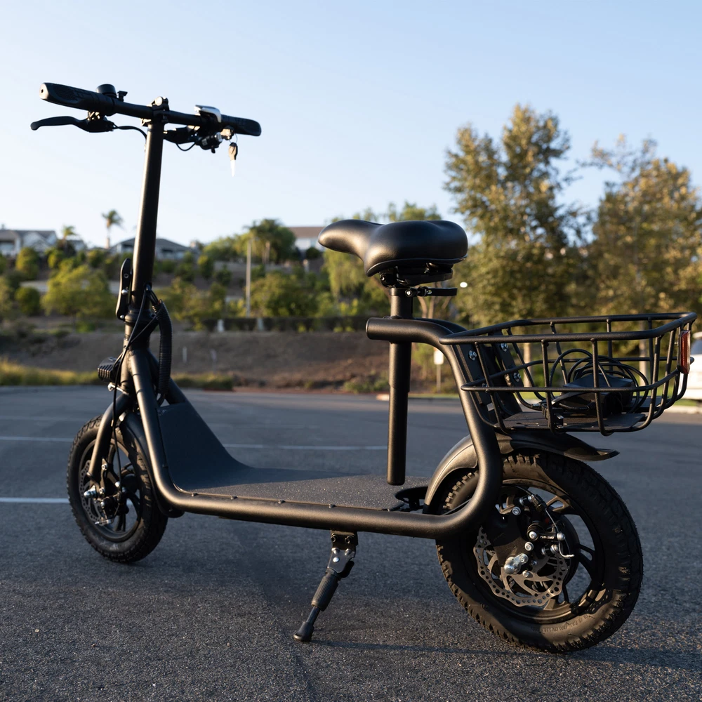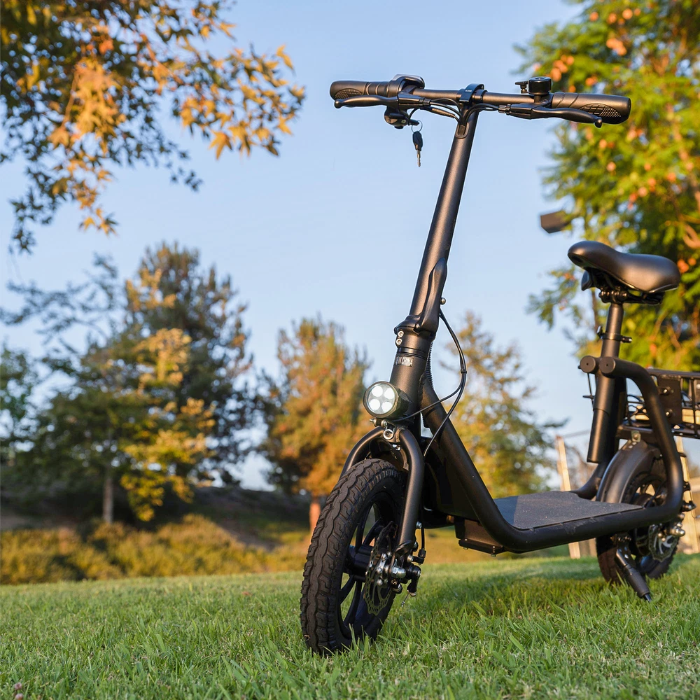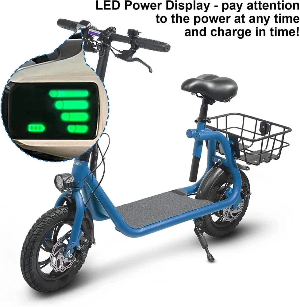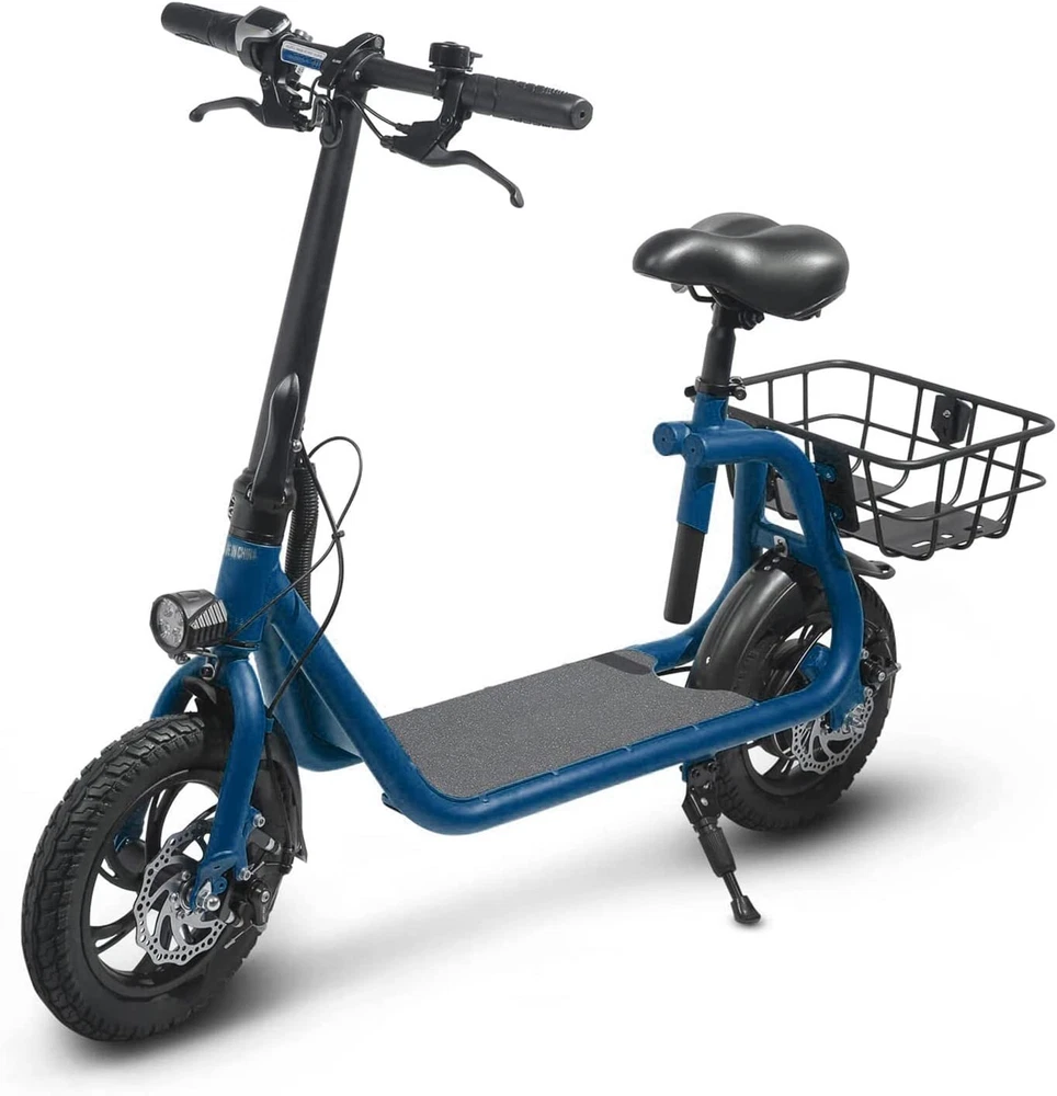 Folding 450W Sports Electric Scooter Adult with Seat Moped Commuter E-Scooter Product Features: Powerful Motor & Long Range: The adult electric bike comes with a 450W powerful brushless motor and large 40 cells 8.0Ah Lithium-ion battery, enables a 15-mile range, and a max speed of 15.5 mph. Portable & Lightweight: The foldable electric bike only weighs 42 lbs and can comfortably accommodate riders up to 265 lbs. This adult electric scooter can be easily folded and stored in the car trunk, which makes it perfect for commuters and students. Safe & Durable: With double braking systems, the front and back disc brake of the e-bike give you double safety. The 12" tires built for multi-terrain of daily use or outdoor activities. Detail Oriented Design: The E Scooter come with 13 x 11 inch rear carry basket and scooter deck, front LED light and rear reflectors for safety. Easy Assemble Required: The only assembly required is the seat and basket attachment. The handle bars are folded and just need to be erected. All tools are provided in the box. Product Specifications: Bike Type: Folding Bike, Electric Bike Age Range: Adult Wheel Size: 12 Inches Suspension Type: Rear, Front Included Components: Basket, Tool Kit Frame Material: Aluminum Brake Style: Disc Battery: Large 40 cells 8.0Ah Li Battery 36V Max Load: 265 lb Max Speed: 15.5 mph Max Range: 15 miles Package Listing: 1 x E Scooter 1 x Charger 1 x User Manual 1 x Tool Kit UL 2849 certified: https://productiq.ulprospector.com/en/profile/ Payment Shipping Return Feedback Question Payment We accept payment via Paypal ONLY. Immediate payment is required & Shipping will be arranged only your payment is cleared. Shipping Same business day dispatch if paid by 4 pm EST(1 pm PDT). No shipping on weekend or Public Holidays & No responsibility for any customs duty. Return We stand behind our products. Items can be returned for exchange or full refund within 60 days from the date you receive your item. Return shipping is the responsibility of buyer unless the return is a result of our mistake (i.e., your receive the wrong item or damaged item). We will pay for shipping replacement back to you if an exchange is requested. If you want to initiate a return, simply clicks "Return this item" next to the transaction in My eBay, chooses a reason, and prints a return shipping label and packing slip. We’re automatically notified. Feedback Please leave us a FIVE star and POSITIVE feedback if you are satisfied with our product and service. Neutral or negative feedback will not solve problems happily. We believe communication will fix problems and hope every customer can have a good purchasing experience. Question All ebay message will be responded within 1 business day or less, except weekends and holiday!