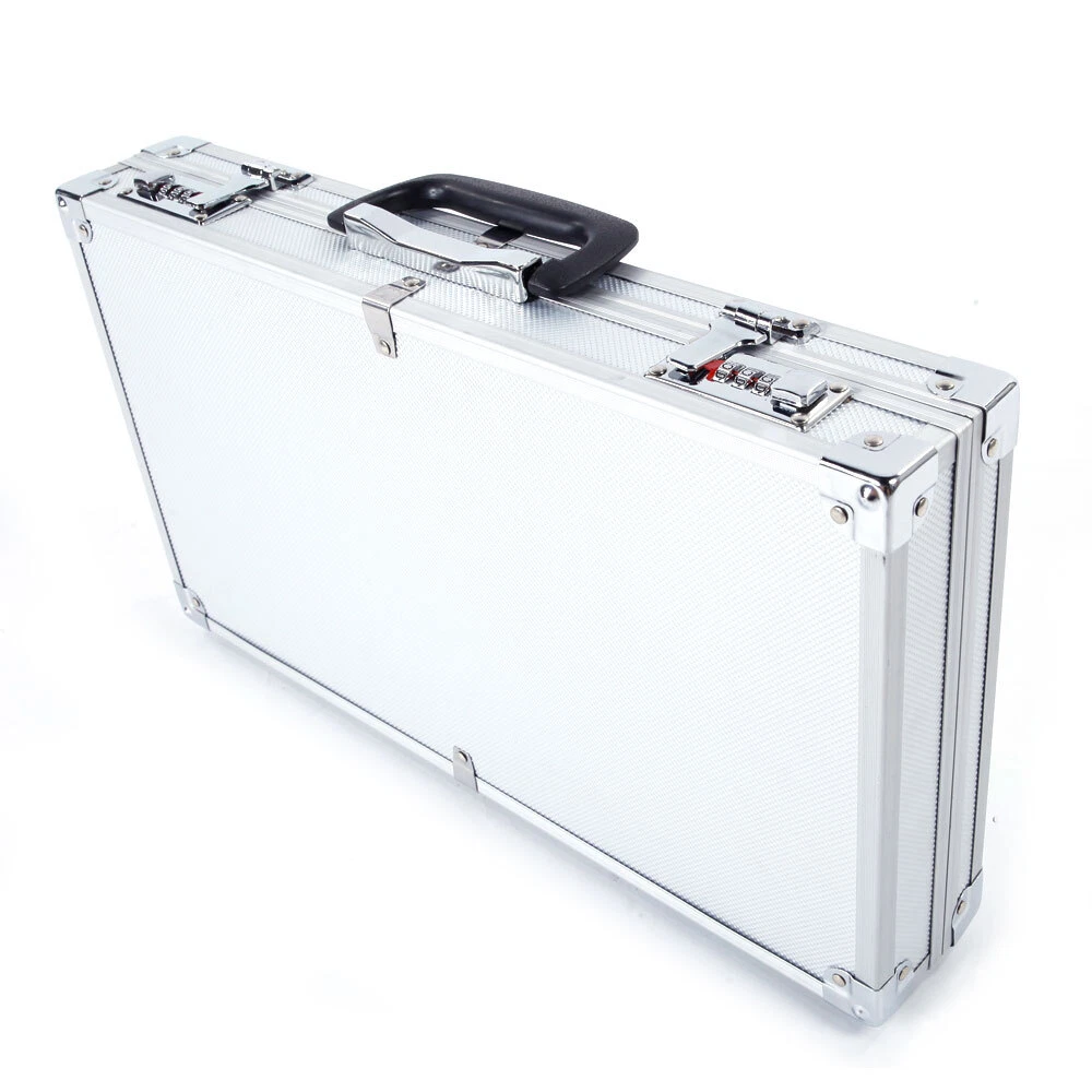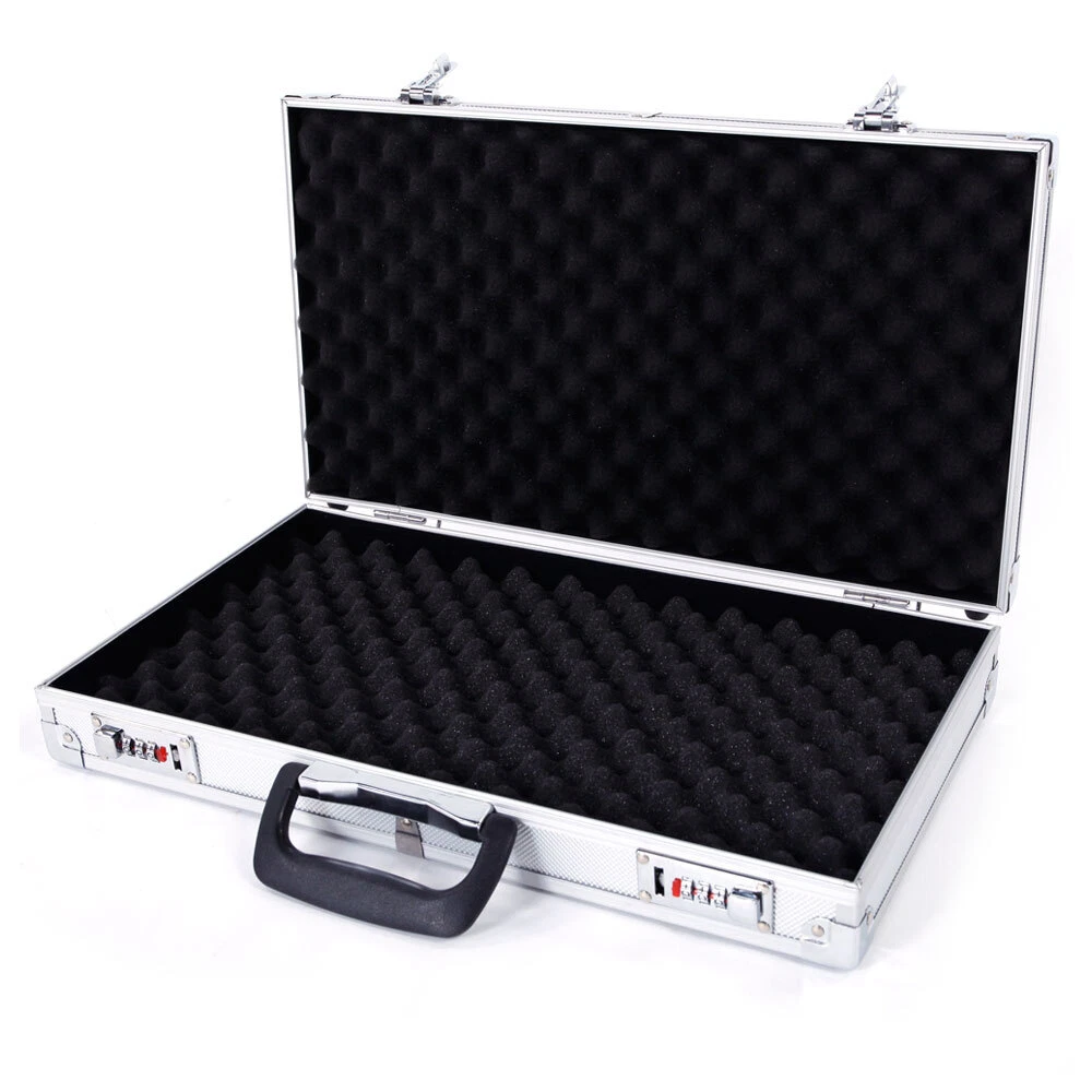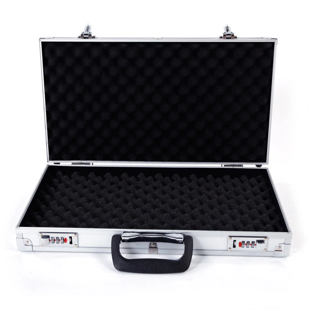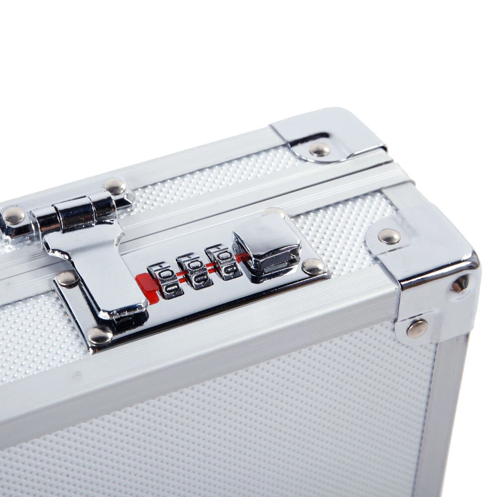 Introductions: With the latest technology, this Aluminum New Framed Locking Gun Pistol HandGun Lock Box Case is made of aluminum & ABS & foam material, meaning you can trust that the case is incredibly durable. This case features digit combination locks, allowing maximum security for your guns. What's more, the safe comes with a high density sponge lining in the interior of the case that provides surrounding support for your guns. With so many advantages, what are you still waiting for? Features: 1. Foam inserts to protect guns from Damage 2. Non-slip handle for easy and comfortable grip 3. Digit combination locks for maximum security 4. Anti-skid bullet feet for case stability in vertical position 5. Flexible switch for ease of open 6. Made of durable aluminum & ABS & foam material Specifications: 1. Material: Aluminum & ABS & Foam 2. Color: Silver 3. Dimensions: (17.71 x 9.84 x 2.95)" / (45 x 25 x 7.5)cm (L x W x H) 4. Weight: 2.98 lbs / 1.35 kg Package Includes: 1 x Gun Case 1 x Instruction