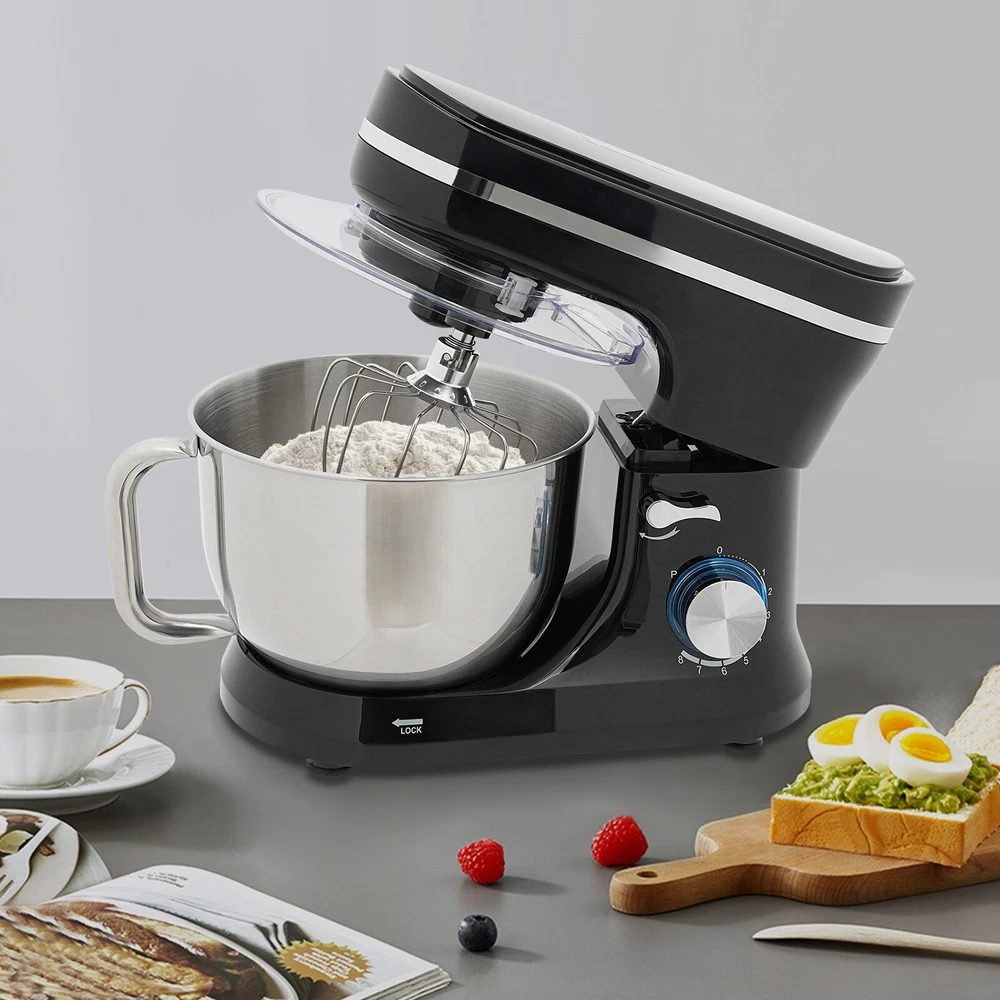 Key Features Build to Last: Food-grade 304 stainless steel and ABS with an injection molding process make this product impact-resistant, corrosion-resistant, safe, and not easy to wear and deform, which can ensure long-term use. Powerful and Efficient: With a powerful copper motor (1000W) and 8+1 mixing speeds adjustable with a knob, it's easy to tackle tough mixing tasks from kneading dough to making delicate meringue. Thoughtful Design: The machine's head-up power cut-off and overheat protection ensure your safety when using it. 68dB of relatively low noise level creates a good cooking environment for you. It has a blue LED light as a power indicator. Multi-functional: Equipped with attachments such as a whisk, dough hook, and beater, it can be used for kneading, beating egg mixture, 4.5L Multifunctional Kitchen Mixer Electric?Kitchen Food Mixing Machine 1000W Description With its sophisticated design and excellent functionality, this kitchen mixer is a handy addition to the modern kitchen. With three interchangeable accessories, whether it's mixing dough, whipping cream, or blending ingredients, it can be complete. Having a piece of kitchen equipment like this not only improves efficiency in the kitchen, it also inspires creativity and allows you to enjoy the fun and sense of achievement that comes with making food. Key Features Build to Last: Food-grade 304 stainless steel and ABS with an injection molding process make this product impact-resistant, corrosion-resistant, safe, and not easy to wear and deform, which can ensure long-term use. Powerful and Efficient : With a powerful copper motor (1000W) and 8+1 mixing speeds adjustable with a knob, it's easy to tackle tough mixing tasks from kneading dough to making delicate meringue. Thoughtful Design: The machine's head-up power cut-off and overheat protection ensure your safety when using it. 68dB of relatively low noise level creates a good cooking environment for you. It has a blue LED light as a power indicator. Multi-functional: Equipped with attachments such as a whisk, dough hook, and beater, it can be used for kneading, beating egg mixture, stirring jam, and so on, adapting to a variety of cooking needs. Large Capacity: The 1.19gal mixing bowl provides plenty of space for large doughs and serves 4-5 people, making it ideal for hosting parties or preparing meals ahead of time. Modern Appearance : The classic black color and smooth lines give this product a simple and modern appearance, making it suitable for most usage scenarios. Compact and Lightweight: With its compact size (14*7.4*11inches) and lightweight (9.81lbs), you can use it conveniently or store it in your cabinet without taking up too much space, making it suitable for small kitchen, apartment, or limited storage space. Great Gift: Thanks to its practical functions and sophisticated look, it is a great holiday or housewarming gift for parents, colleagues, or friends. Easy to Maintain : With its simple construction and smooth surface, you can simply wipe off surface dust with a damp rag (not included). The removable mixing bowl can also be dishwasher-safe to save you time. Details Non-slip Suction Cups: They make the product fit the ground well, so it is stable and safe to use while preventing the countertop from being scratched. Splash-proof Cover : The clear cover is convenient for you to watch the preparation process while preventing ingredients from flowing out of the bowl and making clean-up easier. Practical Handle: The handle on the bowl makes it easy to grip and pour out your mixed ingredients (not included). Locking Slot: It helps to fix the mixing bowl more stably. Tilt Lock: It allows you to easily lift the machine's head to change accessories and install or disassemble the mixing bowl. Application It is suitable for kneading dough, whipping cream, and eggs at home, in kitchens, hotels, restaurants, bakeries, and so on to better prepare cakes, breads, cookies, dumplings, noodles, milkshakes, muffins, waffles, and other foods. Specification Color: Black Style: Modern Material: ABS, Food-grade 304 Stainless Steel Process: Injection Molding Mount Type: Free Standing Assembly Required: Yes Control Type: Knob Is Dishwasher Safe: Yes(Only for Bowl) Power Source: Corded Electric Plug Type: US Standard Motor Type: Pure Copper Motor Voltage: 110V Power: 1000W Speed Gears: 8+1(Pulse Function) Noise: 68dB Applicable Number of Persons: 4-5 Bowl Capacity: 4.5L/1.19Gal Power Cord Length: 1.2m/3.94ft Bowl Size(D*H): 22.2*16.5cm/8.7*6.5in Product Size: 35.6*18.8*27.9cm/14*7.4*11in Package Size: 42*25*31.5cm/16.54*9.84*12.4in Gross Weight: 4.8kg/10.58lbs Net Weight: 4.45kg/9.81lbs Package Included 1* Kitchen Mixer 1* Mixing Bowl 1* Dough Hook 1* Whisk 1* Beater 1*Splash-proof Cover 1* English Manual Notes Please note that this product does not include any food ingredients. Please note that only the bowl is dishwasher safe. When not in use for a long time, a small amount of edible oil (not included) can be applied to the surface of the accessories for protection, and the machine should be stored in a dry and ventilated place. Please make sure that the machine is on a flat countertop when using it. For better results, usually work for 15 minutes to let the machine rest. Before purchasing, please make sure that the capacity of this product is available for your needs. It is suitable for 4-5 members, or small families in everyday use. If you are a pro-baker or need to handle large batches of mixing, please consider other larger-capacity mixers. Please read the English manual carefully before use and pay particular attention to the safety instructions contained therein. Please allow the slight color difference caused by the shooting light and 1-3 cm error due to manual measurement, and make sure you do not mind before ordering. Payment Delivery details Terms of sales About us Contact us Payment We accept ebay payment 。 Fees such as import duties, taxes are not included in the