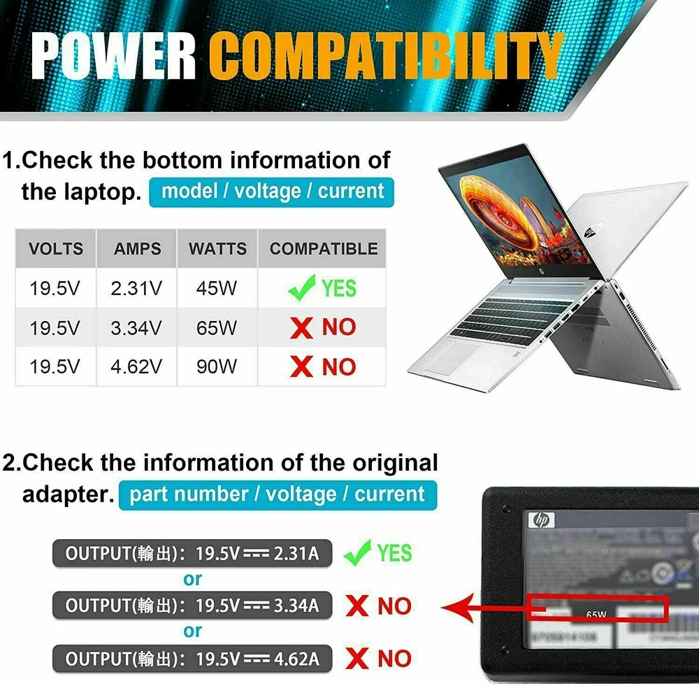 Dell Laptop Charger Specifications: Output: 19.5V 2.31A, 45W. ( Check the bottom information of your dell laptop, Make sure the output volts and ampsare is 19.5V 2.31A ) Connector size : 4.5 mm×3.0 mm. Input : 100-240V 50-60Hz (for worldwide use). Package includes: 1 x AC 45 watt Dell Adapter And 1 x 3-Prong Dell Laptop Power Cord Compatible Part Number: AA45NM131 DA45NM131 DA45NM140 HA45NM140 HK45NM140 LA45NM121 LA45NM131 LA45NM140 CC0DT X9RG3 492-BBOF 312-1307 332-1827 450-18919 450-1846 450-18920 450-18066 4H6VH CDF57 D0KFY JHJX0 0JHJX0 JT9DM P47F P55F 03RG0T 0X9RG3 04H6NV PA-1450-66D1 FA45NE1-00 Dell Inspiron 11: Dell Inspiron 11 3147 3148 3152 3153 3157 3162 3168 3179 P20T P24T P25T Dell Inspiron 13: Dell Inspiron 13 5368 5378 5379 7347 7348 7352 7353 7359 7368 7368-2in1 7378 P69G P57G P69G P83G P91G Dell Inspiron 14: Dell Inspiron 14 3451 3452 3458 3459 3462 3467 5451 5452 5455 5458 7460 P60G P89G P49G P64G P93G Dell Inspiron 15: Dell Inspiron 15 3551 3552 3558 3565 3567 3583 3593 5100 5538 5551 5555 5558 5559 5565 5568 5570 5578 5579 7558 7568 7569 7579 P28F P51F P66F P32 Dell Inspiron 17: Dell Inspiron 17 5755 5758 5759 5765 5767 5770 7778 7779 7773 7786 P30E Dell Latitude 12: Dell Latitude 12 7202 Dell Latitude 13: Dell Latitude 13 3379 7350 7370 Dell Vostro 14: Dell Vostro 14 3458 3459 5459 5468 Dell Vostro 15: Dell Vostro 15 3558 3559 5568 Dell XPS 12 12D: Dell XPS 12 12D L221x 9Q23 9Q33 9Q34 MLK Dell XPS 13: Dell XPS 13 321X 322X L322X 3943 9333 9343 9344 9350 9360 Dell Optiplex: Dell Optiplex 3020 7040 9020 3046 Note: This 45W Dell adapter doesn't fit Dell Inspiron 15-3520 3521 3531 3542 3537, Inspiron 15R-5520 5521 7520 N5010 N5110 Various certifications Our adapters are CE, FCC, ROHS certified. Better protect your computer Power cord length The power cord is up to 1.2m in length. Let you work more freely Light weight This adapter is very light and easy to carry. Dell power cord 3 Prong dell laptop power cord included