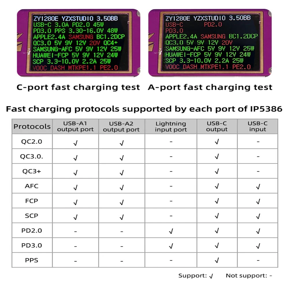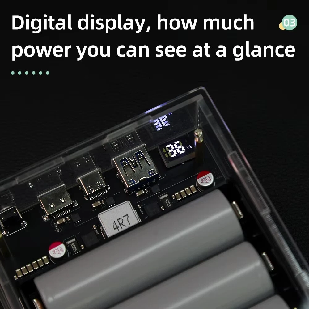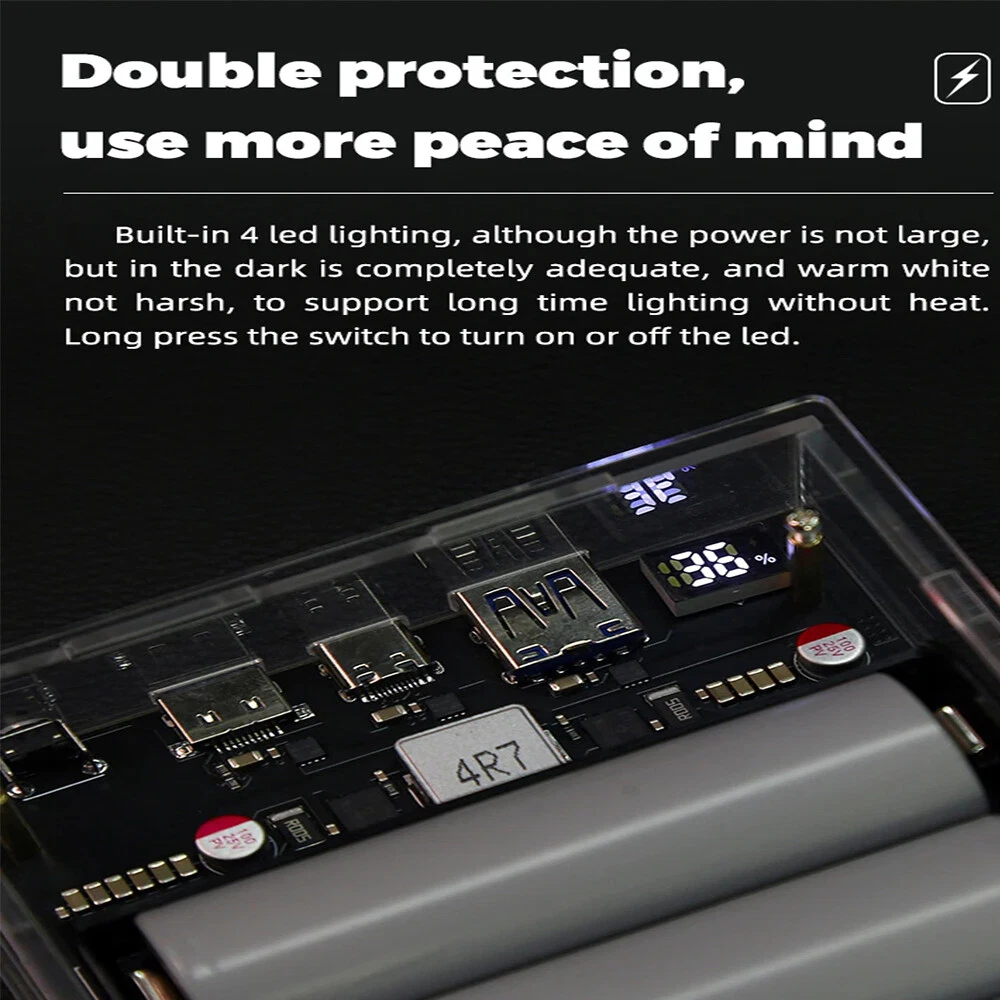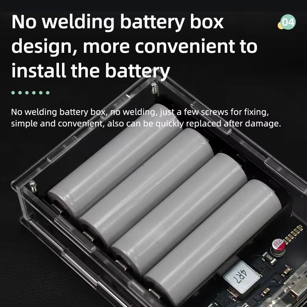 SAFE & SECURE SHOPPING 100% SATISFACTION GUARANTEED FAST SHIPPING PD 45W Two Way LED Light Digital Display Battery Fast Charge Power Bank Case Product Description Features: 1. The product adopts a four-string lithium battery structure, with built-in BM3451 lithium battery protection circuit, double protection to prevent overcharge and over-discharge of the battery. 2. Built-in 4 LED lighting lamps, although the power is small, it is completely enough in the dark, and the warm white is not dazzling, and supports long-term lighting without heat. Long press the switch to turn on or off the led. 3. The solderless battery box supports 18650 and 21700 batteries. It can be activated by direct installation without welding. Pay attention to the installation direction. Installing the battery reversely will cause the element to burn. The fully transparent acrylic shell needs only a few screws to fix it, which is simple and convenient, and can also be replaced quickly after damage. Introduction: Size: 130 * 95 * 34mm Weight: 200g Total capacity: 21700 finished products 19200 mah Battery pack voltage: 12-16.8v Maximum power: 45w The 45w high-power mobile power supply has been newly upgraded, and the original sw6208-22.5w scheme has been upgraded to 5386-45w scheme, which has the same volume, higher power, safer and more convenient use, and lower heating. There are two appearances to choose from. The product has three interfaces, one Apple interface (only input, not output). A type-c interface, bidirectional 45v, supporting input and output up to 20v2a,there is also a usb output. IP5386 supports a variety of fast charging protocols: PD, QC2.0, QC3.0, QC3+, FCP, AFC, SCP, Apple. NOTE: 1. 21700 types of finished products use 4 new 4800mah batteries made in China Yiwei. The option of spare parts does not include batteries, and spare parts do not have after-sales service! Please watch the assembly video carefully before installation! 2. The acrylic shell of the product is 10 yuan per set. Please test whether the product function is normal before installing the shell. If you tear the protective plate of the shell, you can't refund it! If you don't like it, you can contact customer service to apply for after-sales service 3. Please pay attention to the battery installation direction and look at the positive and negative on the circuit board! Package includes: 1*1set Power Bank Case Payment Shipping Returns Contact US Payment Payment must be completed within 5 days. If you have any problems about payment, please contact us via ebay message. Shipping We only ship to confirmed ebay Order addresses. Please comfirm that your Order address is in line with your shipping address. Please kindly note that the combined shipping is not provided because the shipping fee is calculated by weight. Also, the each additional item means exactly the the same color and size. It takes about 7-15 working days to US; about 10-30 working days to other countries. Transit time may be a little delayed because of the bad weather and customs inspection. If you do not receive your item within 30 working days since payment finished, please contact us immediately for further assistance. Returns Items can be returned for exchange or refund within 30 days from the date you receive your merchandise. We are not responsible for any purchase after this 30-day period. Return shipping is the responsibility of buyer unless the return is a result of our mistake (i.e., your receive the wrong item). We will pay for shipping replacement back to you if an exchange is requested. Contact US Customer satisfaction is very important to us and our feedback rating reflects this satisfaction. If you have any questions, Our customer service staffs welcome feel free to contact us by EBAY message box. We strive to answer all questions and resolve any problems as quickly as possible. Copyright © 2022 Tongtool On Dec 10, 2024 at 01:25:37 PST, seller added the following information: