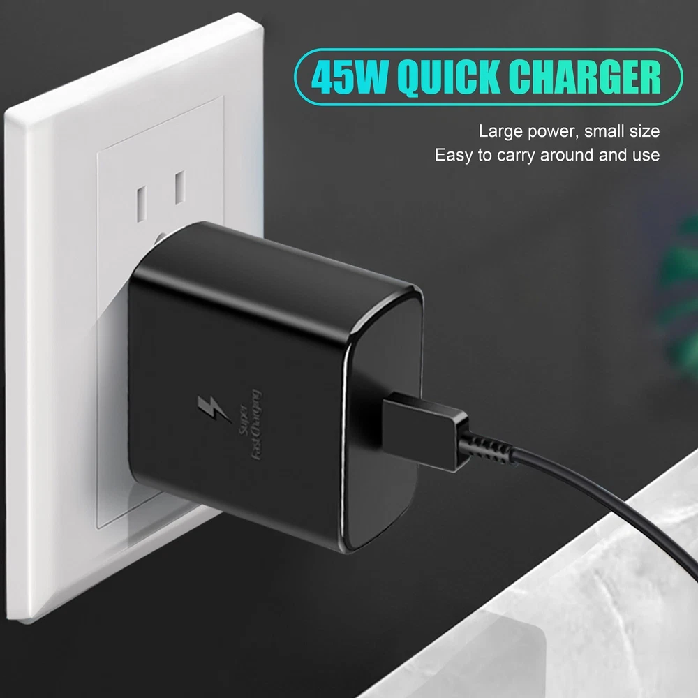 45W USB-C Super Fast Charging Type C Wall Charger for Samsung Galaxy S23 Ultra Specification The 45W super fast charger type c is perfect to fast charge your Samsung Galaxy S23 Ultra/S23/S23+/S22 Ultra S22+/S22 ultra/S22/Google Pixel xl, 2/2xl, 3/3xl, 4/4xl, 5/5xl, 6/6 Pro, 3a/3a xl, Pixel 4a, Pixel C Tab, Google Chromebook Pixel. With PPS protocol, it provides 45W Super Fast Charging for Galaxy S21/S21 Ultra/S20/Note 20. Package 1 X 45 W USB C Super Fast Charger For Samsung + 6 FT Cable Delivery details Payment Terms of sales Feedback Contact us Delivery details 1. BUSINESS DAY MONDAY- FRIDAY FAST SHIPPING FROM USA. 2. All orders and payments received before 4PM EST (1PM PST) will be shipped the same business day. 3. No shipping on Saturday,Sunday or USA Public Holidays 4. No responsibility for any custom duty Payment We accept payment by PayPal only. Terms of sales 1. We offer a 60 day money back guarantee or exchange. 2. Buyer pays return shipping and we pay replacement shipping. 3. If you want to initiate a return,please contact us to get a returning address before sending the item back. Feedback 1. We strive to provide the best products and services. 2. Your positive feedback 5 stars DSR help us do better. 3. If anything about your transaction did not meet expectations, please CONTACT US and give us the opportunity to make things right. We are always here to help. Contact us Please do not hesitate to CONTACT US . You can message 24/7 on eBay for all questions and inquiries. We will get back to you within one business days at the latest from Monday- Friday.