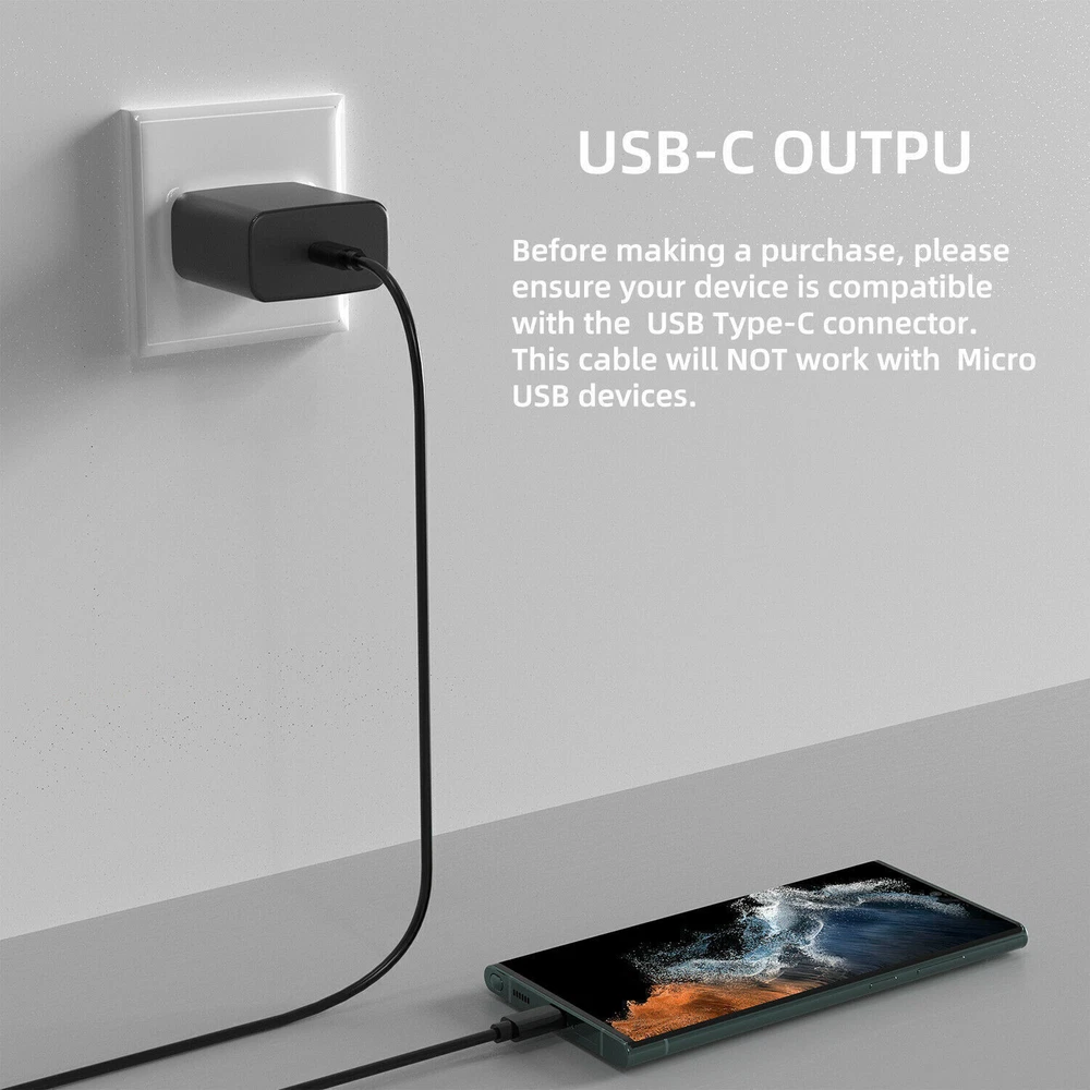 【Super Safety Fast Charging】:PD3.0 Technology ensures an optimized and rapid safe charging experience(25W) for all for for Galaxy S22, S21, S20 / Note 20 / Note 10 / 10+ and S10 5G Models,up to 9V/2.77A charge speed. Most phones will charge from 0 to 100% in about 60-90 minutes, some devices with very large batteries could take approximately 3 hours. 【Universal Type C Phone Charger 】:The USB C Wall Charger can provide fast charge for Type-C phones and tablets, such as the 2018 iPad Pro 11/12.9, 2020 iPad Pro 11/12.9,for Samsung Galaxy S22, S22+, S21, S21+, S20, S20+,S10, S10+S9, S9+ Plus, S8, S8+ Plus / Active, A70, A80, S10, S10 plus, for Google Pixel, Pixel 2, Pixel 3, Pixel XL, Pixel 2XL, Pixel 3XL, Pixel 4XL, Pixel 3A, LG G7 Thing, G8, G6, G5, Stylo 4, V20, V30, V35, V30S, V40 ThinQ Plus, for Motorola Moto Z and more. 【6 Feet USB-C to USB-C Charging Cable】 :Length of 6.6 feet, easy for charging on different occasion, for travel, home, car, office, etc. 【Flexibility and Safety】: Use the cable to sync and transfer files at amazing speeds with your for Galaxy or other compatible smartphone or laptop. Intelligent circuit design protects against short circuiting, over-heating, over-current, and over-charging for safe with fast charging. Sustained high-power output will have a temperature rise, but they are all within the safety limits. 【Package Includes】: 1×25w wall charger or 1×6ft c to type c cable, 1×25w wall charger + 1×6ft c to type c cable
