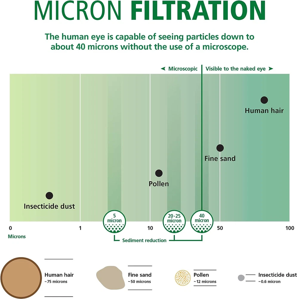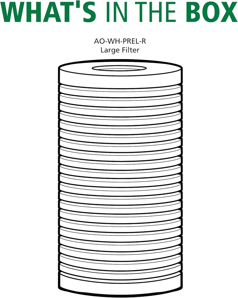 Filter for use with: Whole House Filter System with Timer (AO-WH-PREL). Use only certified, genuine A. O. Smith filters for continued contaminant removal and system performance. Longer lasting appliances - whole house filter system designed to reduce sediment from every tap. 25 micron filtration - reduces sediment smaller than the human eye can see. Replacements made easy - no plumber necessary. Replace filter every 6 months. Large capacity (4.5") filter is perfect for household sizes 4 or more people. Package includes one replacement filter. Product Description Do not install unit on its side. Properly tighten all fittings to ensure a leak free assembly. This system will not reduce total dissolved solids (TDS).