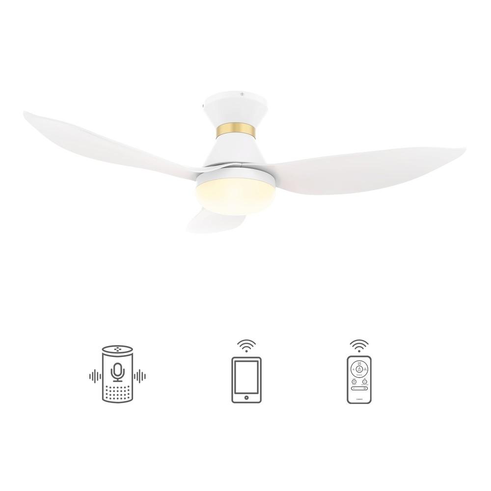 Step into sophistication with our Chamomile Smart Ceiling Fana charming blend of simplicity and elegance in a refined white or black finish, accented by a stylish golden ring. Ideal for snug spaces with its 3 blades and 45-inch sweep, it's a chic addition to smaller bedrooms. Crafted from durable ABS material, it exudes a playful uniqueness. Tailor your comfort with adjustable 4000k LED light, remote, Wi-Fi apps, and Voice control compatibility (compatible with Amazon Alexa and Google Home Assistant).Key attributes Smart Compatibility: Works with Wi-Fi apps and Voice control via Google Assistant, Amazon Alexa, and Siri Shortcut. Complete Remote Control: Adjust fan speed, light (on/off/dimming), and reverse function effortlessly. Whisper-Quiet Efficiency: Features incredibly efficient Free Shipping Over $49.99* Details Chamomile 45-inch Indoor Smart Ceiling Fan, Dimmable LED Light Kit and Remote, Product Description: Step into sophistication with our Chamomile Smart Ceiling Fana charming blend of simplicity and elegance in a refined white or black finish, accented by a stylish golden ring. Ideal for snug spaces with its 3 blades and 45-inch sweep, it's a chic addition to smaller bedrooms. Crafted from durable ABS material, it exudes a playful uniqueness. Tailor your comfort with adjustable 4000k LED light, remote, Wi-Fi apps, and Voice control compatibility (compatible with Amazon Alexa and Google Home Assistant). Key attributes Smart Compatibility Works with Wi-Fi apps and Voice control via Google Assistant, Amazon Alexa, and Siri Shortcut. Complete Remote Control Adjust fan speed, light (on/off/dimming), and reverse function effortlessly. Whisper-Quiet Efficiency: Features incredibly efficient and completely silent DC motors for a peaceful environment. Seasonal Adaptability 10-speed reversible motor easily switches between summer downdraft and winter updraft mode. Integrated LED Lighting Offers warm and daylight options, reducing energy usage and extending lifespan. Standard Mounting Equipped with a standard mounting system for convenience. Hassle-Free Installation: Simple setup facilitated by step-by-step instructions for ease. Certified Safety ETL certification ensures product safety and reliability. Indoor Use Only: Designed specifically for indoor use for optimal performance.