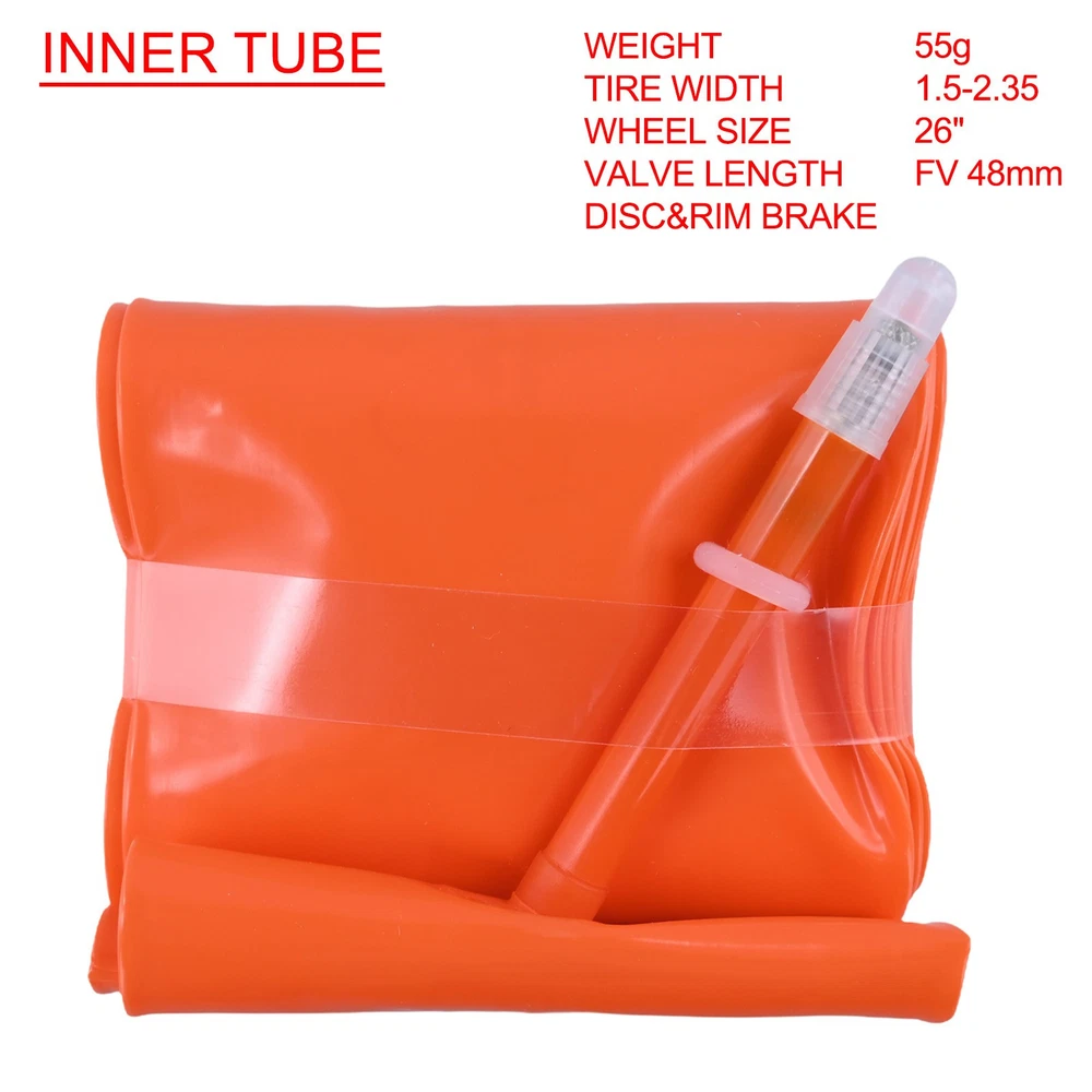 Reliable Support with 45mm Presta Valve Inner Tubes for Mountain Bikes DESCRIPTION Features: *Lightweight for TPU Inner Tubes:Made from for TPU material, which makes them less than traditional butyl rubber inner tubes. This reduces the overall weight of the bicycle, resulting in a more agile ride. *Enhanced Durability:Not only reduces weight but also increases durability, offering improved longevity and allowing for longer rides without worrying about frequent punctures. *Optimized Performance:The low friction generated by these inner tubes on the tires allows for maximum speed and performance. The reduced friction ensures a smoother ride, allowing cyclists to achieve their desired speed and maneuverability. *Oil and Water Resistant:Specially designed to resist oil and water. This feature protects the inner tubes from damage caused by moisture or oil, increasing their lifespan. Cyclists can confidently ride in various weather conditions without worrying about the inner tubes being affected. *Excellent Resistance:Can withstand the pressure exerted during rides, providing a safe and reliable support. Whether cycling on smooth roads or rough terrains, these inner tubes deliver exceptional performance and reliability. Specifications: *Product Name:Inner Tubes *Material: for TPU *Size:Approx.26x1.2-1.75, 26x1.5-2.23, 27.5x1.2-1.75, 29x1.5-2.35(Optional) *Air nozzle:About 45mm *Color:Black Package Content: 1* Inner Tube Note: 1. The real color of the item may be slightly different from the pictures shown on website caused by many factors such as brightness of your monitor and light brightness. 2. Please allow slight manual measurement deviation for the data. POLICES Shipping Payment WARRANTY We only ship to confirmed ebay Order addresses. Please comfirm that your Order address is in line with your shipping address. Please kindly note that the c ombined shipping is not provided because the shipping fee is calculated by weight. Also, the each additional item means exactly the the same color and size. It takes about 7 -15 working days to US; about 10-30 working days to other countries. Transit time may be a little delayed because of the bad weather and customs inspection . If you do not receive your item within 30 working days since payment finished, please contact us immediately for further assistance. Payment must be completed within 5 days. If you have any problems about payment, please contact us via ebay message. We strive for 100% customer satisfaction! Positive Feedback is very important to us. If you have any questions, p lease feel free to contact us via "Ask seller a question" . We will reply your email within 24 working hours.