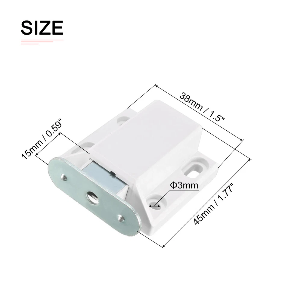 Document Product Details:Material: Plastic/ Magnet/ MetalDimension: 45 x 38 x 15mm / 1.77 x 1.5 x 0.59inch (L*W*H)Package Contents:2pcs x Magnet Door CatchMaterial - Made of plastic, magnet, metal, it has good strength and toughness, can withstand certain impacts and loads, has anti-corrosion and anti-high temperature properties, and can be used for a long time.Feature - The cabinet magnet latch has a good magnet force, which can keep your cabinets or drawers closed, and prevent your drawers or doors from being easily opened.Application - Magnetic door catches can be used in bedrooms, kitchens, cabinet doors, drawers, TV cabinets, bookcases, etc.Installs Steps - According to the usage or needs of the door or drawer, choose a suitable installation location, first drill a hole in the door frame, and then fix the magnetic door catch to the door frame with screws. After installation, the cabinet magnets latch will not easily loosen. 45x38mm Cabinet Magnets Latch - 2 Pack - Plastic Door Catch - White Product Details: Material: Plastic/ Magnet/ Metal Dimension: 45 x 38 x 15mm / 1.77 x 1.5 x 0.59inch (L*W*H) Package Contents:2pcs x Magnet Door Catch Material - Made of plastic, magnet, metal, it has good strength and toughness, can withstand certain impacts and loads, has anti-corrosion and anti-high temperature properties, and can be used for a long time. Feature - The cabinet magnet latch has a good magnet force, which can keep your cabinets or drawers closed, and prevent your drawers or doors from being easily opened. Application - Magnetic door catches can be used in bedrooms, kitchens, cabinet doors, drawers, TV cabinets, bookcases, etc. Installs Steps - According to the usage or needs of the door or drawer, choose a suitable installation location, first drill a hole in the door frame, and then fix the magnetic door catch to the door frame with screws. After installation, the cabinet magnets latch will not easily loosen. Hot Item Payment 1.We accept eBay payment . 2.Payment must be received within 7 business days of auction closing. Shipping 1.We ship to your eBay or Paypal address. Please make sure your eBay and Paypal address is correct before you pay. 2.Items will be shipped within 1-3 business day when we received payment. 3.Delivery time depends on destination and other factors. Description Policy 45x38mm Cabinet Magnets Latch - 2 Pack - Plastic Door Catch - White Product Details: Material: Plastic/ Magnet/ Metal Dimension: 45 x 38 x 15mm / 1.77 x 1.5 x 0.59inch (L*W*H) Package Contents:2pcs x Magnet Door Catch Material - Made of plastic, magnet, metal, it has good strength and toughness, can withstand certain impacts and loads, has anti-corrosion and anti-high temperature properties, and can be used for a long time. Feature - The cabinet magnet latch has a good magnet force, which can keep your cabinets or drawers closed, and prevent your drawers or doors from being easily opened. Application - Magnetic door catches can be used in bedrooms, kitchens, cabinet doors, drawers, TV cabinets, bookcases, etc. Installs Steps - According to the usage or needs of the door or drawer, choose a suitable installation location, first drill a hole in the door frame, and then fix the magnetic door catch to the door frame with screws. After installation, the cabinet magnets latch will not easily loosen. Hot Item Payment 1.We accept eBay payment . 2.Payment must be received within 7 business days of auction closing. Shipping 1.We ship to your eBay or Paypal address. Please make sure your eBay and Paypal address is correct before you pay. 2.Items will be shipped within 1-3 business day when we received payment. 3.Delivery time depends on destination and other factors.