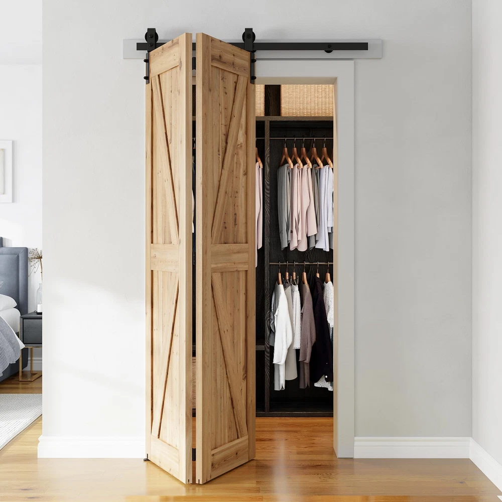 This bifold barn door hardware kit is fantastic! The carbon steel construction feels sturdy and durable, while the waterproof and corrosion-resistant finish ensures long-lasting use. The nylon rollers glide smoothly and quietly, making operation effortless. Installation was a breeze thanks to the well-organized packaging with clear graphics and helpful instructions. The customer service team is responsive and ready to assist if needed—no need to hire a carpenter! Everything you need comes in the package, making it a great value for the quality. Highly recommend for a stylish and functional upgrade!