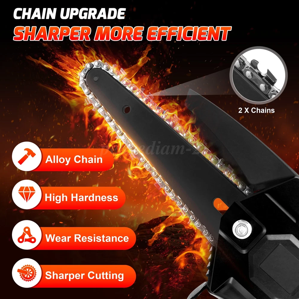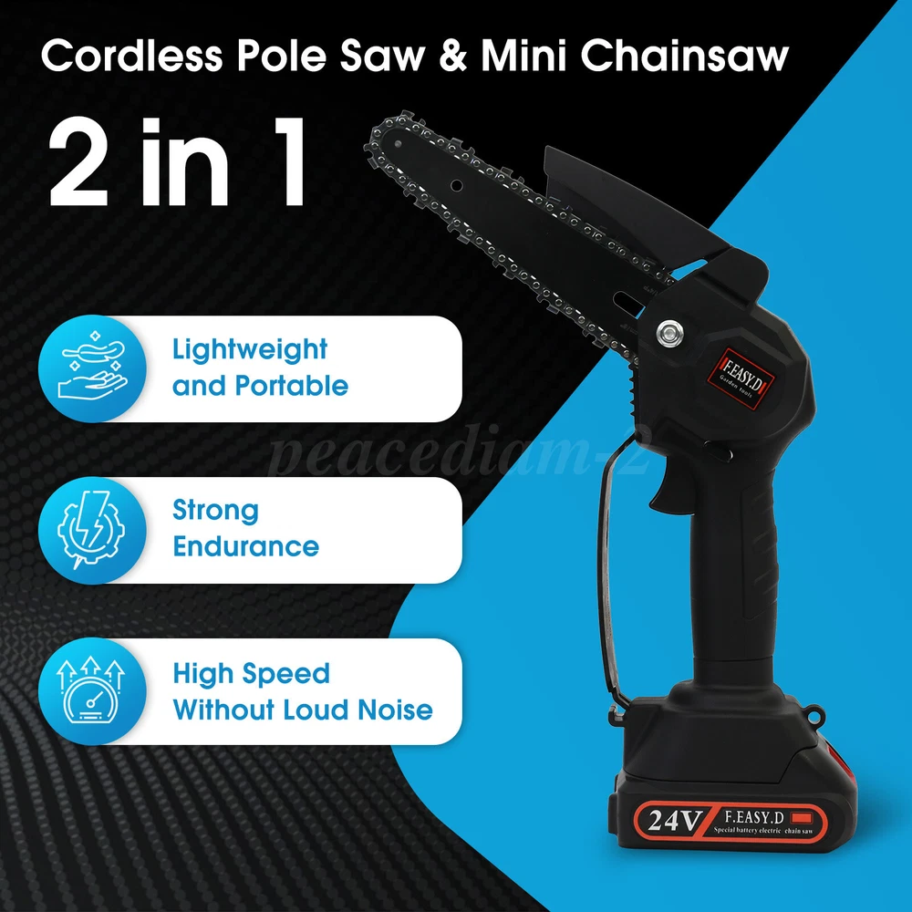 4"+6" Cordless Pole Saw Mini Chainsaw 2-in-1 Tree Trimming 6ft Extension Rod 21V PRODUCT DETAILS Description: Say goodbye to gas and cords with this high quality Electric Chainsaw. Gas is expensive and corded tools just get in the way. This chainsaw is lightweight and portable , which is very easy to use. Even if you hold it for a long time, you will not get tired. On the basis of the traditional mini chainsaw, it is equipped with a retractable long pole , which can easily trim high branches. It can efficiently cut wood, prune branches, help you do home woodworking and so on at high speed without loud noise, saving your time and effort. It is widely used in gardens, parks, farms, pastures, orchards, greenhouses, etc. Specification: Type: Cordless Pole Saw Material: Metal + Plastic Color: Black Plug: US Plug Chainsaw speed: 8m/min No load speed: 16000r/min Supply Voltage: 20V Power Source: Battery Battery: Lithium battery Battery power: 2*1500mAh Rated Voltage: 100-240V AC, 50-60Hz Force Voltage: DC 21V Charging current: 0.8A Weight: 0.7kg (not including battery) Feature: 🌳🌳【NEW Upgrade 2-in-1 Cordless Pole Saw】 Unlike traditional pole saws, the 2-in-1 pole saw is a combination of a pole saw and 2 types of mini chainsaws. 6-inch&4-inch chainsaws with an additional rotatable, multi-angle cutting extension bar (which can be installed and used at will according to the actual situation). You can not only use the mini chainsaw alone to trim low branches, but also install the telescopic pole to meet the needs of high tree work. 🌳🌳【Upgraded Motor】 The electric pole saw comes with a strong dynamic system, 600W pure copper motor , overload protection,superfast cutting speed to 18ft/s, try to use this handheld chainsaw cutting 5-inch diameter logs only 6 seconds,cutting 4-inch diameter logs only 4 seconds. Moreover the high-quality pole saw battery powered guide chain that has been deeply quenched to ensure sharp cutting, all lead to easy fast wood cutting like butter. 🌳🌳【2 Pcs*1500mAh Large capacity rechargeable battery】 Battery powered pole saw provide 2 rechargeable battery to meet your daily cutting needs, last working about 60-80 minutes, A full charge takes just 1.5 hours, which can cut more trees or perform garden trimming for a longer time, battery pole saw even if you are outdoors, you don't need to worry about the battery is not enough. 🌳🌳【Pole Saw Light Weight and Excellent Operability】 The Mini Chainsaw weighs only 5.8 pounds. Even though it is a lightweight and small motor, it has amazing power and stamina. Even women and the elderly can quickly cut tree branches. Also, the rope saw handle can greatly increase comfort. Ergonomic design reduces strain on fingers and arms. 🌳🌳【5-speed Angle Adjustment】 Cordless pole saw has a button to adjust the angle, you can adjust the angle of 5 kinds, you can adjust the angle arbitrarily according to the need to make the sawing of trees become more convenient. ▶ ✅✅✅Notice: 1. Check the chainsaw is well installed and remember to check that the connecting rod is securely installed. 2. Novice users are advised to read the instructions,skilled before normal use. Package Contents: 1* 4-6inch Mini Chainsaw 1* Telescopic extension rod 2* Battery 1* Charger 1* Screwdriver 1* Hex Wrench 1* Manual 2* Chain (4inch,6inch) A pair of gloves A pair of glasses Note: 1. If you have any questions about the product, please contact us. 2. Please allow minor differs due to manual measurement. 3. The picture may be a little different from that of real item due to the different display and different light. 4. Due to different producing batches, product details might be a little different. If you mind the difference, please buy with caution. Thank you for your understanding. PAYMENT We only support transactions on the ebay, do not support offline or private transactions. Please make sure the address is accurate before you pay. SHIPPING We do not ship to PO Box, Alaska/Hawaii, APO/FPO, and US Protectorates. Item(s) would be shipped out within 1~2 working days after received your confirmed payment. Weekends and holidays are not working days. We will choose different warehouses according to the customer's address and item stock, shipped from CA and PA in the United States. RETURN Buyers may return or exchange an item which damaged within 30 days. eBay & PayPal money back guaranteed. CUSTOMER SERVICE We are committed to provide the best purchase experience for our customers. If you have any questions, just feel free to contact us, we respond queries within 24 hours in business days.