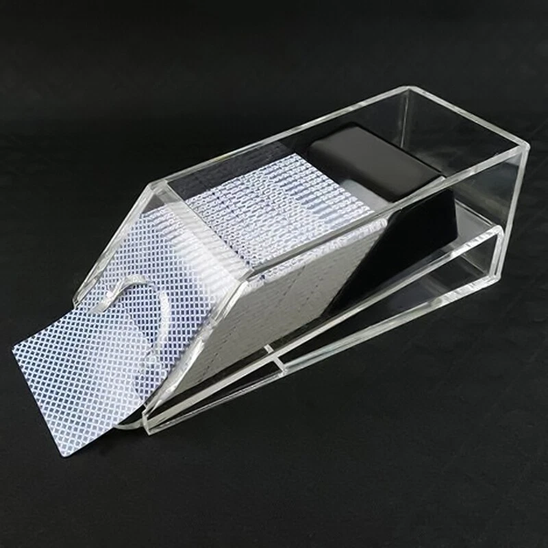 This card-dealing shoe is a game-changer! It slides cards out smoothly without bending them, keeping your deck in perfect condition for countless rounds. The sturdy acrylic build feels professional, whether you're hosting poker night or running a serious game. Dealing becomes effortless—no more fumbling or uneven hands. It adds a legit casino vibe while preventing cheating, making every deal fair and fast. Perfect for serious players and casual hosts alike!