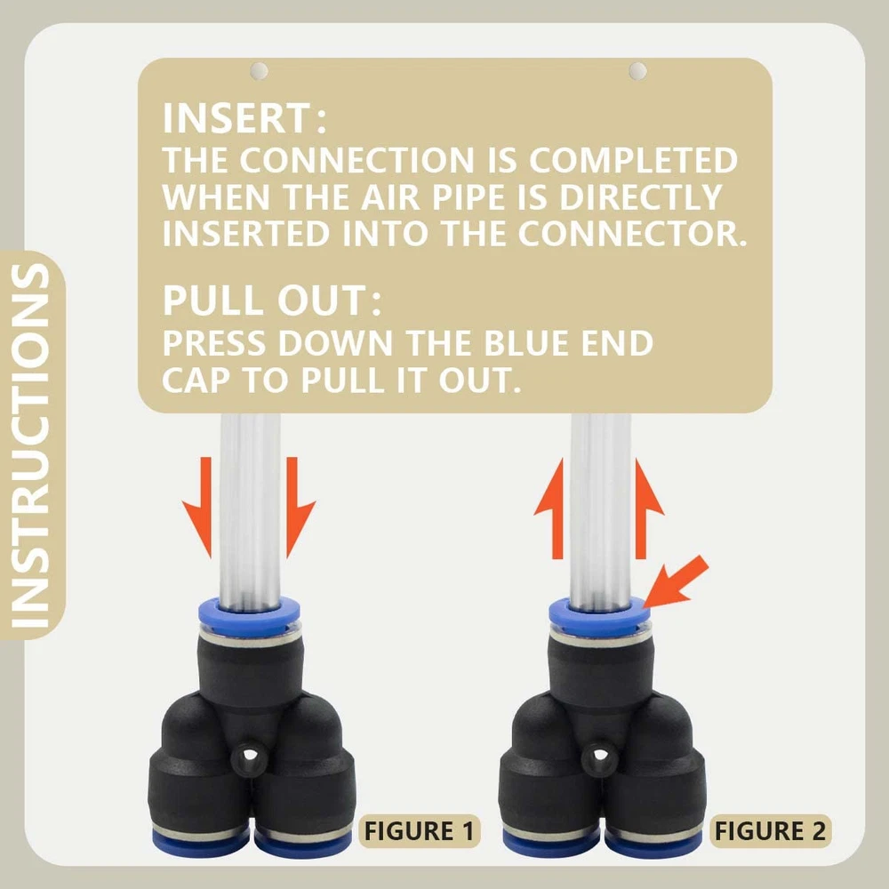 【Package】 46 Pcs Air line Pushing Connectors, incuding 12mm straight/Elbow/Tee/Splitter Connectors and 2 pcs 6-12,8-12 ,10-12mm reducing connector. 【Dual Application】:The straight/Elbow/Tee/Splitter pneumatic connector is used to connect polyethylene, nylon and PU tubes, air pipes and pneumatic tools, widely used in industries automatic equipment like machinery, electronics, automobile, packaging. 【Working Environment】: 0-8 bars. Working Temperature: 0-60°C. Applicable Tube: PU/Nylon/PE. 【Quality Goods】This fittings are made of high quality brass plastic, durable and no air leakage for long term use. Built-in stainless steel locking claw and NBR O-ring, you'd never worry about that tube falls off. High pressure resistance, can withstand strong pressure without tripping, so no tripping needed. 【Easy to Intall】 No extra sealing is required, just a simple push to connect to the tube and they are tightly connected. Elliptical release rings at both ends are more convenient to disassemble without extra tools. In addition, those fittings are flexible and space-saving, 360-degree rotate freely.