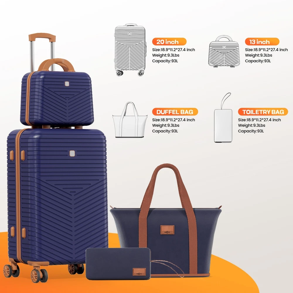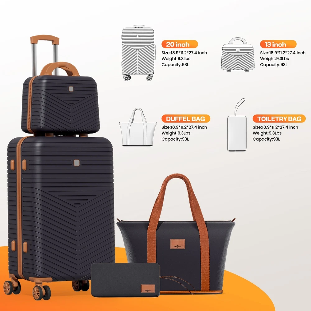 $ 5.284-Piece Luggage Set with USB Charging Ports TSA Lock Travel Duffel Bag