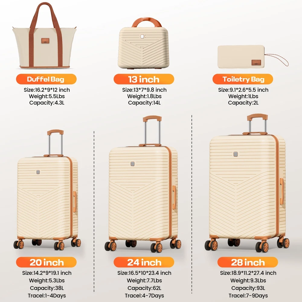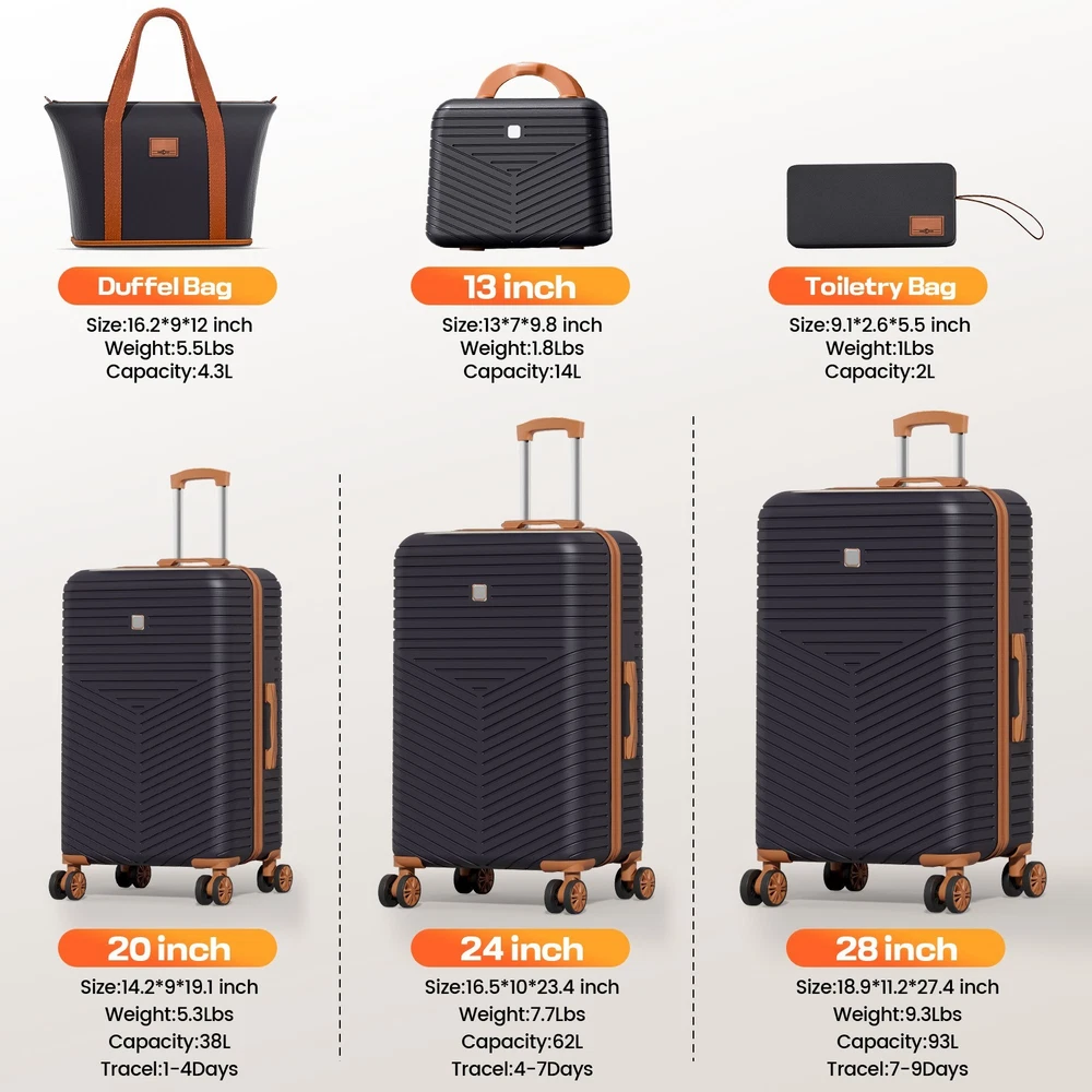 Description 4/6 Piece Luggage Set Carry on ABS+PC Hard Shell Suitcase with Spinner Wheels & TSA Lock đ Features ăPerfect 6 Piece Luggage Sets:ă Our luggage sets includes 20/24/28-inch suitcase, 13-inch cosmetic case, a portable travel bag and a toiletry bag, which can be combined in many ways, perfect for weekend trips, short trips, long trips and family vacations. ăTSA Locks for Safe TravelăCarry on suitcase with TSA locks allows for instant checking without damage during international travel; durable zippers and lined compartments keep items safe and secure. ă360°Silent Spinner WheelsăOur suitcases have 360° swivel wheels for flexible movement in multiple directions; the retractable handle is ergonomic and has 3 height adjustments, making it easy for you to travel when you say you will! ăDurable Material ProtectionăConstructed of PC+ABS composite material, the luggage set is both practical and lightweight, with a scratch-resistant and abrasion-resistant surface that maintains the shape of suitcase set during ground movement and vehicle transportation. ăStylish Design & Spacious interiorăThe exterior design of our suitcases combines vintage charm and modern functionality, stylish and elegant; the interior space is extra large and different sized suitcases can be nested in each other for convenient storage when idle.For any questions, contact us. We offer quality after-sales service! 1 . We accept PayPal only. 2 . Payment should be completed within 4 (Four) days of auction closing. Or unpaid dispute will be filed for closing auction. 3 . Sales Tax of 9% will be applied for orders shipped within the state of California 4 . We will leave a positive feedback immediately after payment is received. We appreciate a positive feedback as much as you do. If for some reason there is any issue with the purchase, please contact us prior to leaving feedback, and we will be glad to work with you to have it resolved. Shipping 1 . We Ship to United States ONLY. 2 . Ship from two warehouses and only to eBay ADDRESS. Package handling only takes 1 business day at our warehouse, so please make sure entering correct payment and shipping information before checking out. Once your payment is completed, pls leave ebay note if the changes are needed before we send the product. 3 . Truck company: 3-8 business days. | USPS: 2-6 business days. | UPS/FEDEX: 3-5 business days. 4 . Lccal pick up is available. Warranty and Guarantee 1 . All of our items come with a 30-day return policy. We ensure all our items are new and in excellent condition prior to shipping. In the event that you receive the item that is not to the standards above, please contact us via e-Bay messages. All returns must be in new original condition as received and should be shipped with delivery confirmation 2 . We ONLY accept the return for original package. Please make sure that item has NO man-made sabotage. Used items will not be accepted for return. 3 . We reserve the right to refuse any returns for objective reasons. 4 . All NON-seller mistake returns for refund are subject to 20% re-stocking fee and buyer should pay for the round-trip shipping fee. (E.g. you bought wrong model or wrong color). Feadback 1 .Any problem after receiving our goods,please contact us before leaving Neutral/Negative feedback.We promise to help you solve it asap,and make you feel satisfactory absolutely. 2 . Please DO NOT leave negative feedback without asking for help. Please do not leave negative or neutral feedback if you haven't received item in 30 days, because we have mentioned the shipping time repeatedly.