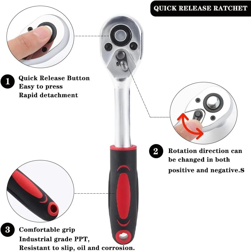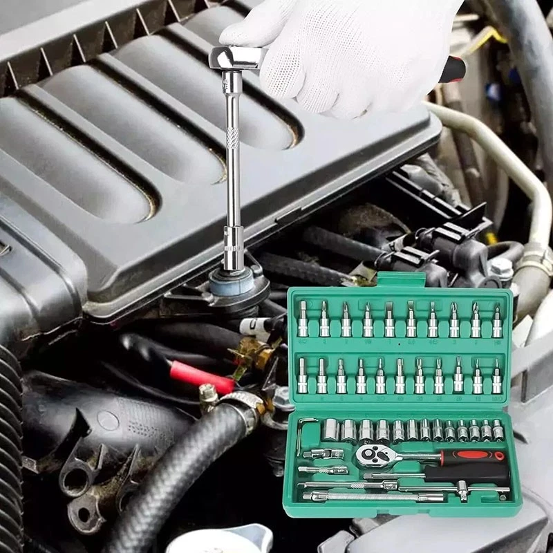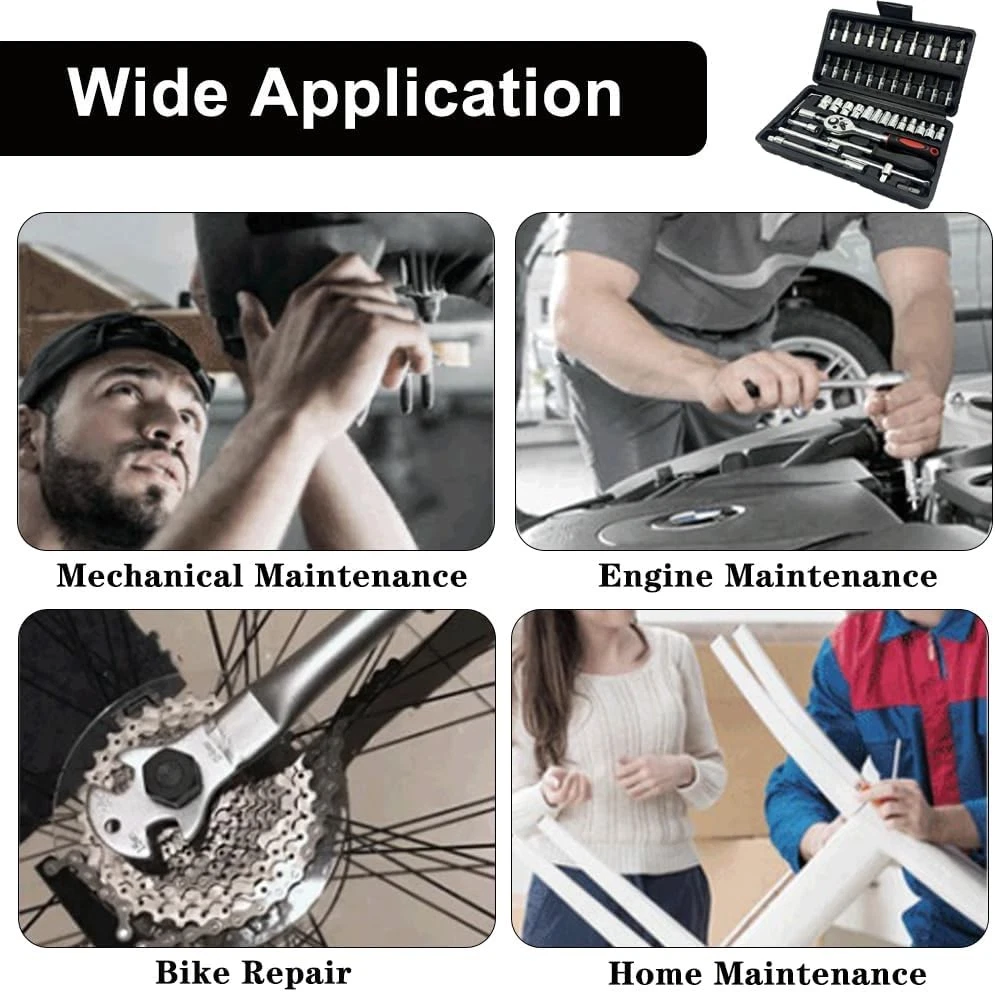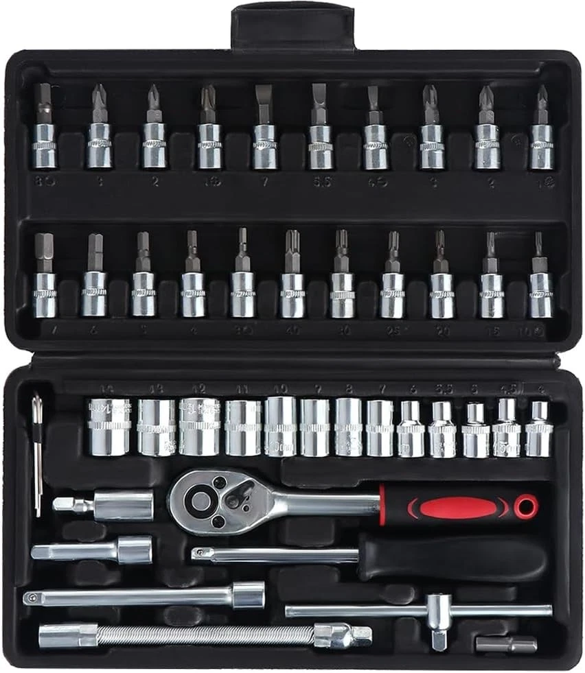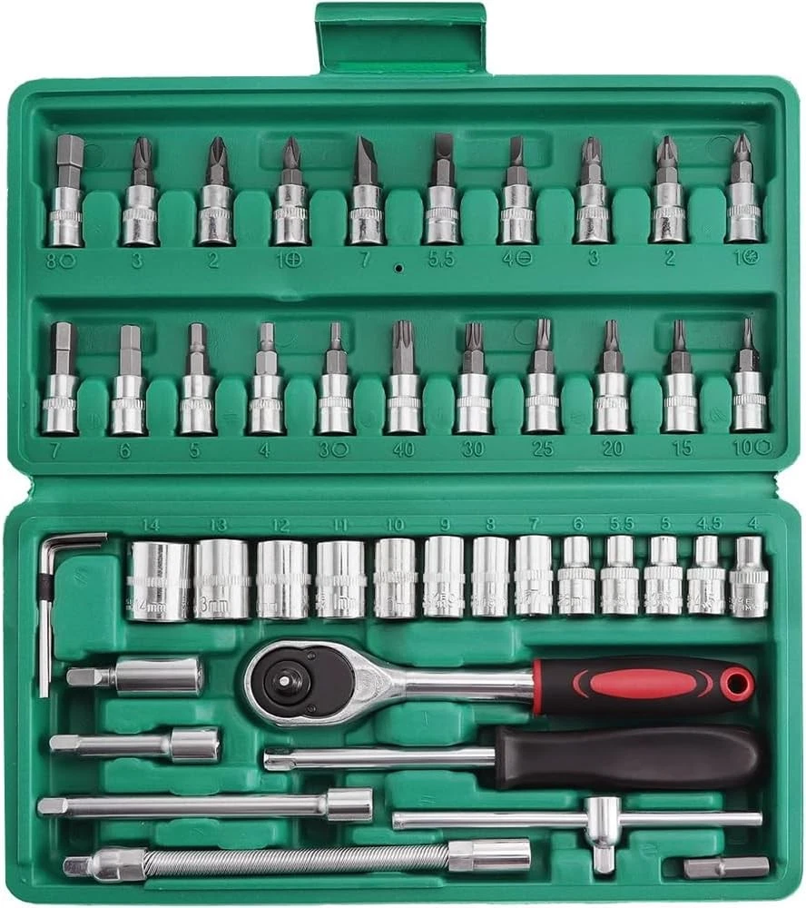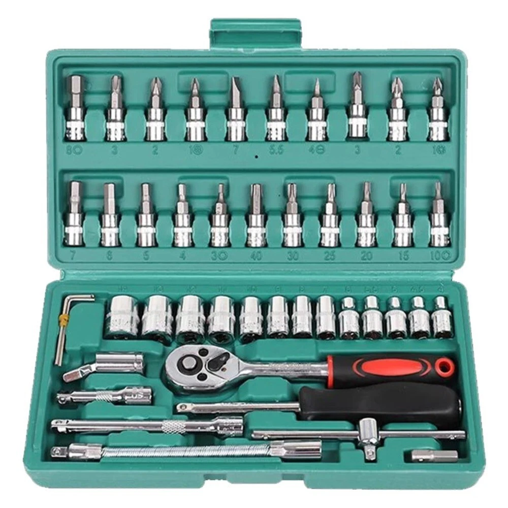 Brand: Unbranded Size: 1/4 in Model: 46 Piece Socket Set Features: Ratcheting,Additional Bits,Long Arm Case Type: Box System of Measurement: Metric/Standard Number of Pieces: 46 Case Included: Yes Item condition: A brand-new,unused Type: Socket Set Action: Ratcheting Socket Type: Universal Manufacturer Warranty: 9 Months Feature: Quick-Release,Reversible,Adjustable MPN: Does not apply