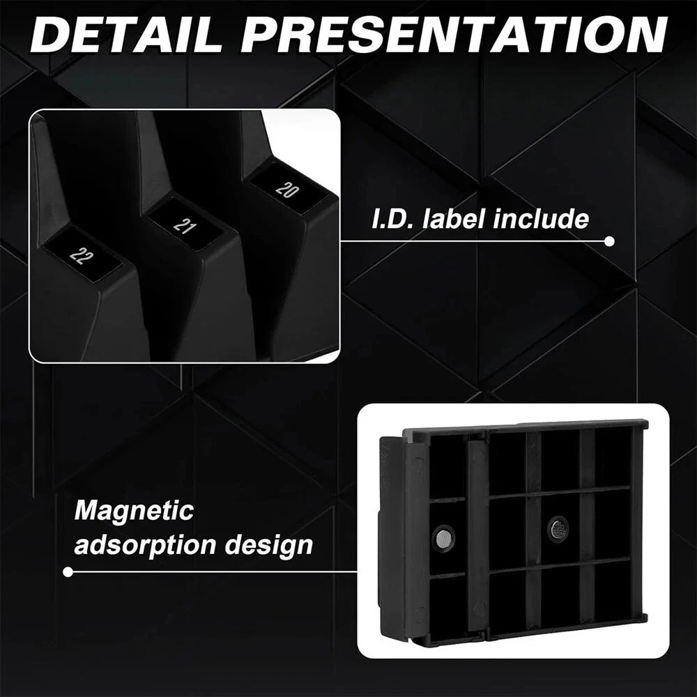 Product Description 46X Magnetic Modular Wrench Organizer Compact Tool Storage Slots hold Tools SAE Feature: For Wrenches Storage: Wrenches are angled upright to fit the most tools in a compact space. Innovative geometry aligns wrenches for a uniform presentation. Your wrenches will never look better than when they are neatly lined up in a compact row Easy To Use: The modular design is very easy to set up and break apart for custom wrench sets and holds any number of tools needed in one section. Fits a wide range of sizes and wrench types. The geometric shapes are combinable and uniform in shape to meet different demand Durable Wrench Organizer: Constructed from robust materials, ensuring that your pro tools are protected and the tool organizer box lasts for long time,modular wrench organizer is suitable for offset, combination, open end, stubby, adjustable and ratcheting With Magnets: A magnet is included on the bottom to ensure the stability of your wrench.Compact design works well with all wrench types.The tapered shape of the slots allows them to hold a wide range of wrench sizes at orderly angles and with consistent spacing Large Cpacity Wrench Holder: Large wrench organizers hold two tools each, while small wrench organizers must be connected with another wrench organizer to hold one or more tools. Organized tool organizers ensures that you can quickly find and retrieve the tool you need, saving time and effort With Magnets:A magnet is included on the bottom to ensure the stability of your wrench.Compact design works well with all wrench types.The tapered shape of the slots allows them to hold a wide range of wrench sizes at orderly angles and with consistent spacing. Easy to Use:The modular design is very easy to set up and break apart for custom wrench sets and holds any number of tools needed in one section. Fits a wide range of sizes and wrench types.The geometric shapes are combinable and uniform in shape to meet different demand Package Includes: 46x Wrench Organizers About Us Payment Shipping Returns Contact Us 1. Unless specified otherwise, all our products are IN STOCK and are shipped from USA Local warehouse - Not Overseas! 2. We provide a 30 day Satisfaction Guarantee or your money back (provided items are in the same new and resaleable condition.) 3. We have a PayPal Verified Business Account, please buy with Confidence! 4. Every item will be tesrted before send.We know our products well and if we don't have the answers we will do our best to find them for you! 5. Our friendly team look forward to serving you! Your satisfaction is our No.1 Priority We will do our best to satisfacy you. 1.Paypal, Credit Card, G Pay etc, many payment way is accepted. 2.Please be sure your shipping address is correct before make a payment. 1.We will ship out the item within 1-3 business days after comfirming the payment, appreciate your patience. 2.If the items are broken on the way(we will check the orders clearly before we sent them),please contact us in 3 days you received it. We will send you a new one or refund your payment. 1.We stand behind every buyer.Items can be returned for exchange or refund within 30 days. 2.Please contact us when you have any confusion of our item, we will solve the trouble for you as soon as possible. 1.This is professional Seller.We will reply your message within 24 hours. 2.Please contact us whenever you have any question about the item. We will deal with it as soon as possible. 3. If you are unhappy with the item or our service,please Contact Us before leave feedback,just give me a chance,thank you! About Us 1. Unless specified otherwise, all our products are IN STOCK and are shipped from USA Local warehouse - Not Overseas! 2. We provide a 30 day Satisfaction Guarantee or your money back (provided items are in the same new and resaleable condition.) 3. We have a PayPal Verified Business Account, please buy with Confidence! 4. Every item will be tesrted before send.We know our products well and if we don't have the answers we will do our best to find them for you! 5. Our friendly team look forward to serving you! Your satisfaction is our No.1 Priority We will do our best to satisfacy you. Payment 1.Paypal, Credit Card, G Pay etc, many payment way is accepted. 2.Please be sure your shipping address is correct before make a payment. Shipping 1.We will ship out the item within 1-3 business days after comfirming the payment, appreciate your patience. 2.If the items are broken on the way(we will check the orders clearly before we sent them),please contact us in 3 days you received it. We will send you a new one or refund your payment. Returns 1.We stand behind every buyer.Items can be returned for exchange or refund within 30 days. 2.Please contact us when you have any confusion of our item, we will solve the trouble for you as soon as possible. Contact Us 1.This is professional Seller.We will reply your message within 24 hours. 2.Please contact us whenever you have any question about the item. We will deal with it as soon as possible. 3. If you are unhappy with the item or our service,please Contact Us before leave feedback,just give me a chance,thank you! You may also like 65W USB C Type C for Acer Chromebook Lenovo/HP/Asus/Samsung Power Laptop Charger 8.99 USD Free shipping Titanium Cutting Board Double-Sided Titanium Cutting Boards for Kitchen Camping 17.99 USD 22.59 USD Free shipping 20% off 9PC ABS Socket Organizer 1/2 3/8 1/4 inch Drive Socket Rail Holders Wall Mount 17.57 USD 18.49 USD Free shipping 5% off 5Pcs HSS Cobalt Hole Large Metal Step Drill Bit Set Titanium Cutter Cone 50 Size 9.69 USD 11.49 USD Free shipping 16% off 3 Head 50000LM LED Solar Lights Outdoor Waterproof Motion Sensor Security Lamp 13.99 USD Free shipping 8"x12" Vacuum Sealer Bags Embossed Food Saver Magic Seal Storage 100-500pcs 14.89 USD Free shipping powered by