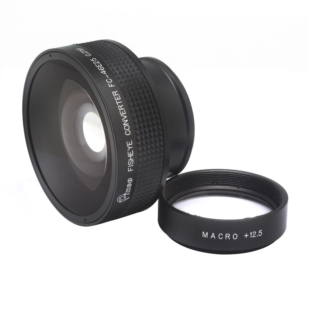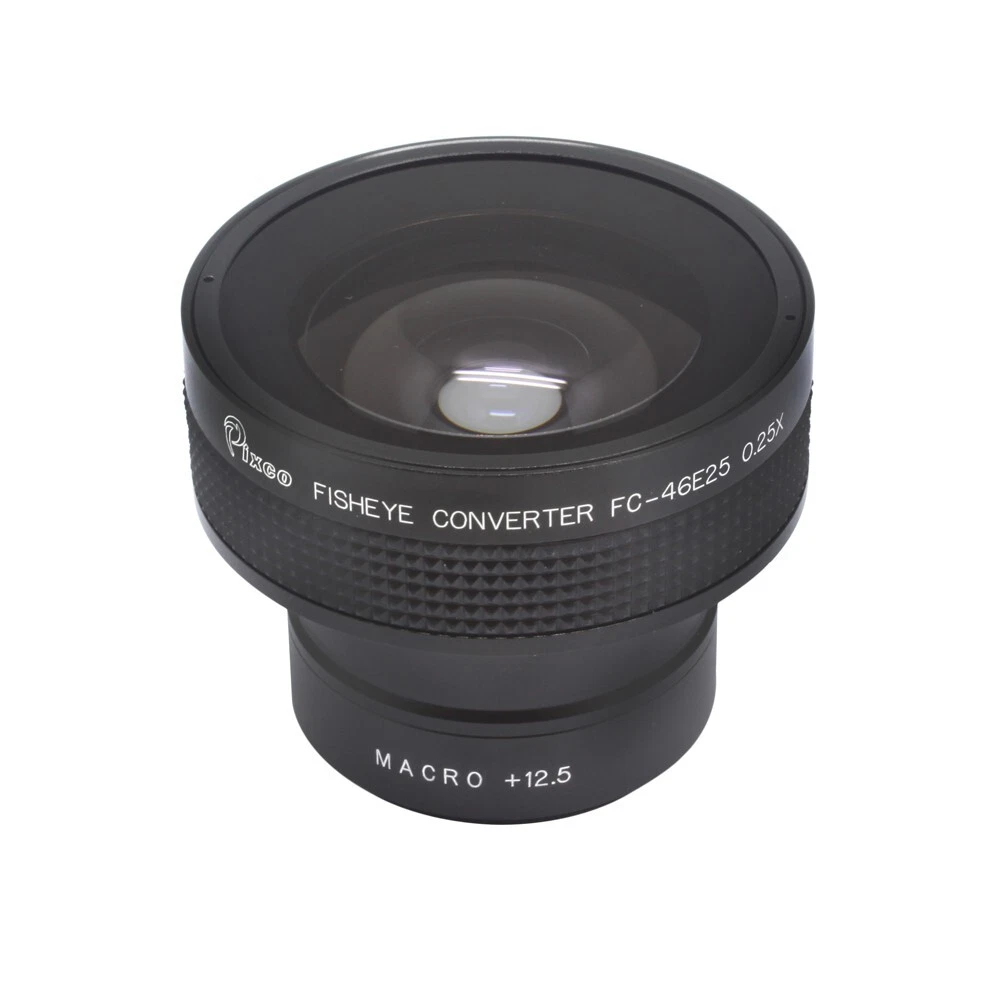 Pixco 46mm 0.25X Super Fisheye Wide Angle Lens Introduction Built-in detachable +12.5MACRO lens for extreme close-up shots Lens Back Threads Size 46mm Made of metal (not plastic) Color : black Compatible : ·All Camera Lens with 46mm Filter Thread Include: ·Pixco 46mm 0.25X Fisheye Wide Angle Lens Fish Eye x1 ·Lens Bag x1 ·Front Cover x1 ·Rear Cover x1 ·Original manufactory package