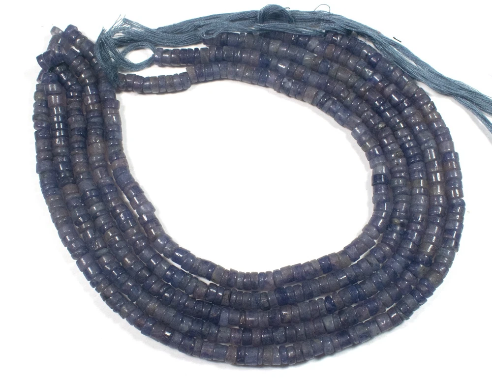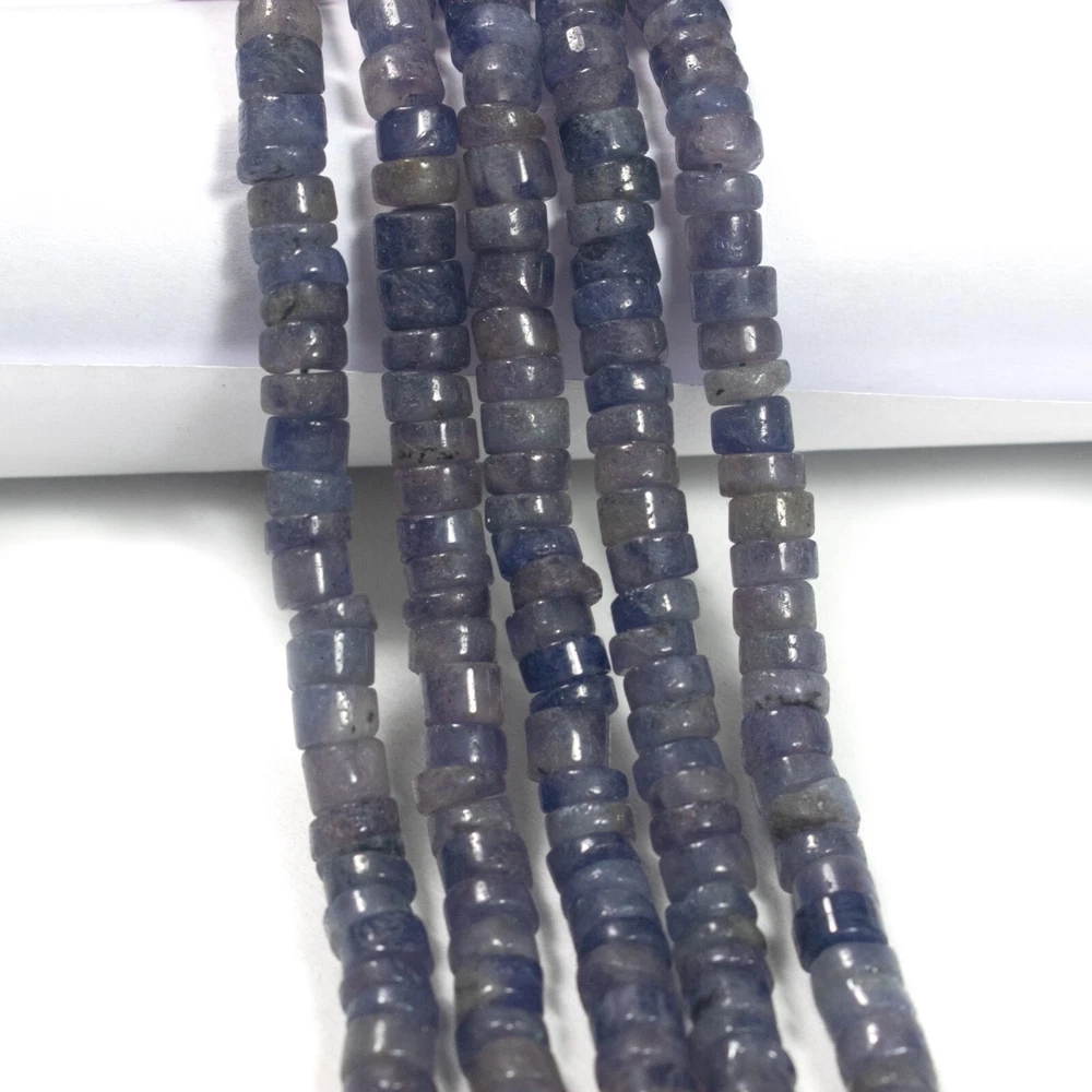 4-6mm Natural Blue Iolite Smooth Drum Beads 12 Inch Strand for Jewelry Making