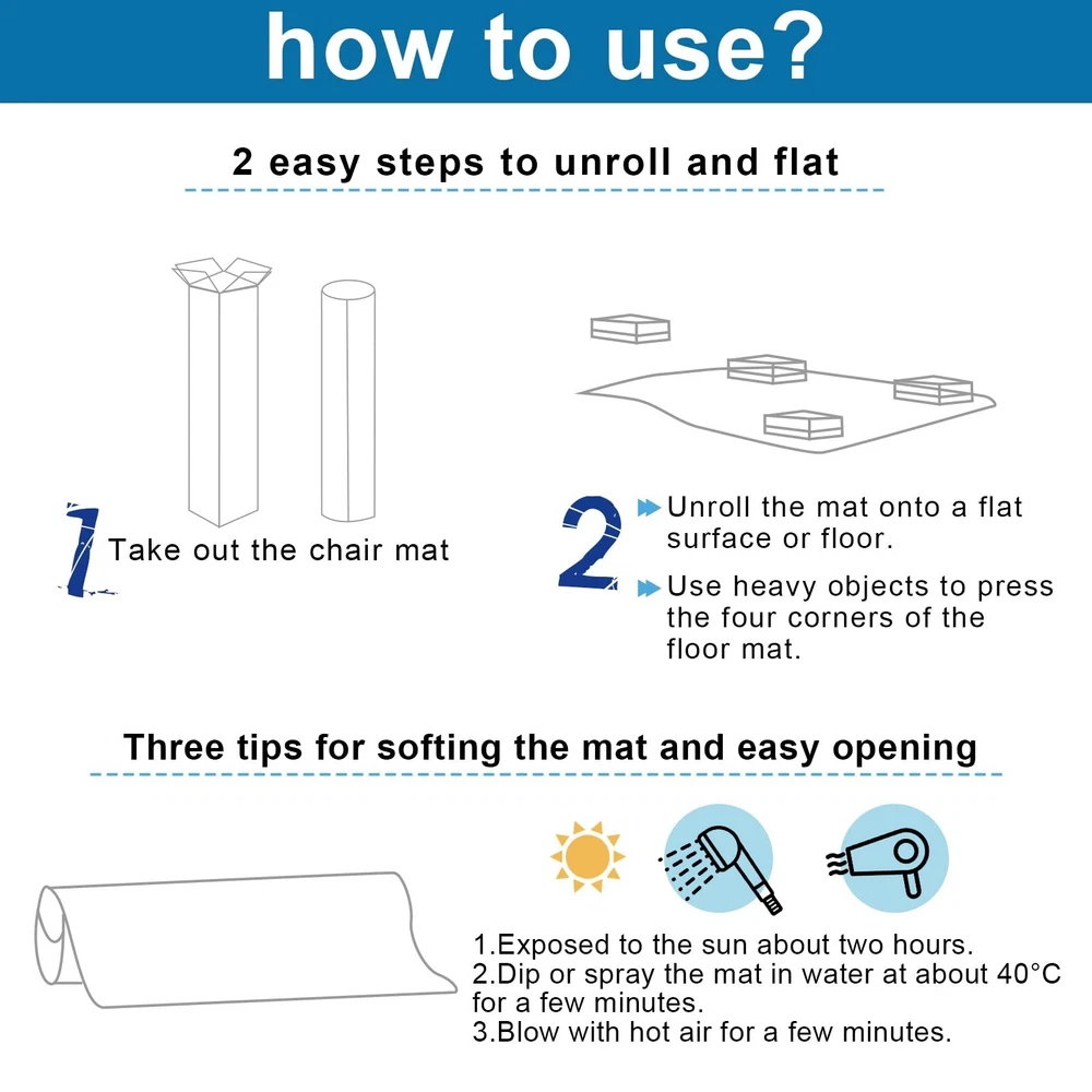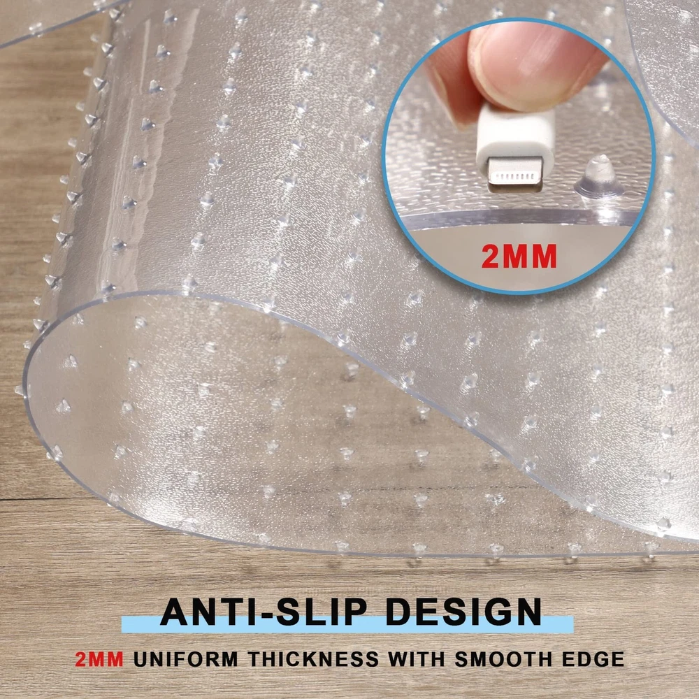 46"x 60" Chair Mat for Carpets Floor Computer Office Chair Mat Desk Clear Anti Skid Transparent Mats Protector for Low and No Pile Carpeted Thick Floors (Convex Style) Product Details Style: Convex Style Brand: Sivak MPN: Sivak-Mat -002911 UPC: Does not apply EAN: Does not apply Material: PVC Brand: Sivak Size: 46 inches x 60 inches Color: Clear Style: Convex Style Shape: Rectangular Product Dimensions: 60"L x 0.08"W x 46"Th Surface Recommendation: Multi-Surface Corner Style: Pleated Manufacturer: Sivak Material: PVC Brand: Sivak Size: 46 inches x 60 inches Color: Clear Style: Convex Style Shape: Rectangular Product Dimensions: 60"L x 0.08"W x 46"Th Surface Recommendation: Multi-Surface Corner Style: Pleated Manufacturer: Sivak Number of Items: 1 Item Weight: 9.83 pounds Country of Origin: China Item model number: Sivak-Mat -002911 Date First Available: January 11, 2023 Effective Grip: the chair mat is designed with anti slip nails on the bottom, which is enough grip to maintain a controlled rolling chair around; The chair pad for the carpet floor is more supportive and can hold it on low pile, no pile, or med pile carpet floors Quality Material: clear floor protector is made of reliable, safe PVC material which is sturdy for long term use, the surface is finely textured which allows your chair moving easily, the clear desk mat seamlessly fades into your carpeted floors, letting the mat colors shine Large Enough Size: office desk chair mat for wood floors is approx. 46 x 60 inches/ 116 x 152 cm; The thickness of the chair mat is approx. 0.08 inches/ 0.2 cm; They can be applied for most computer chairs, and to ensure that the swivel chair to move with enough space Protect Your Carpet: this non slip carpet protector mat protects your low pile and no pile carpets from damage caused by sliding swivel chairs; It is clear and transparent to reveal the beauty of the carpet mat Easy to Clean: the surface of large clear mat is sleek, easy to clean and maintain; When the chair mat is soiled, you only need to wipe it gently with a damp cloth to remove the stain