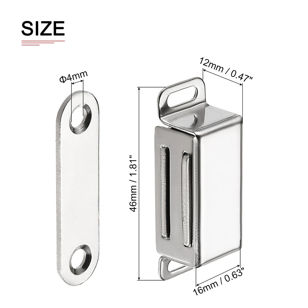 Document Product Details:Material: Stainless SteelDimension: 46x16x12mm/1.81x0.63x0.47inch (L*W*H)Package Contents:2pcs x Magnet Door CatchMaterial - Made of stainless steel, it has good strength and toughness, can withstand certain impacts and loads, has anti-corrosion and anti-high temperature properties, and can be used for a long time.Feature - The cabinet magnet latch has a good magnet force, which can keep your cabinets or drawers closed, and prevent your drawers or doors from being easily opened.Application - Magnetic door catches can be used in bedrooms, kitchens, cabinet doors, drawers, TV cabinets, bookcases, etc.Installs Steps - According to the usage or needs of the door or drawer, choose a suitable installation location, first drill a hole in the door frame, and then fix the magnetic door catch to the door frame with screws. After installation, the cabinet magnets latch will not easily loosen. 46x16mm Cabinet Magnets Latch - 2 Pack - Stainless Steel Door Catch - Silver Product Details: Material: Stainless Steel Dimension: 46x16x12mm/1.81x0.63x0.47inch (L*W*H) Package Contents:2pcs x Magnet Door Catch Material - Made of stainless steel, it has good strength and toughness, can withstand certain impacts and loads, has anti-corrosion and anti-high temperature properties, and can be used for a long time. Feature - The cabinet magnet latch has a good magnet force, which can keep your cabinets or drawers closed, and prevent your drawers or doors from being easily opened. Application - Magnetic door catches can be used in bedrooms, kitchens, cabinet doors, drawers, TV cabinets, bookcases, etc. Installs Steps - According to the usage or needs of the door or drawer, choose a suitable installation location, first drill a hole in the door frame, and then fix the magnetic door catch to the door frame with screws. After installation, the cabinet magnets latch will not easily loosen. Hot Item Payment 1.We accept eBay payment . 2.Payment must be received within 7 business days of auction closing. Shipping 1.We ship to your eBay or Paypal address. Please make sure your eBay and Paypal address is correct before you pay. 2.Items will be shipped within 1-3 business day when we received payment. 3.Delivery time depends on destination and other factors. Description Policy 46x16mm Cabinet Magnets Latch - 2 Pack - Stainless Steel Door Catch - Silver Product Details: Material: Stainless Steel Dimension: 46x16x12mm/1.81x0.63x0.47inch (L*W*H) Package Contents:2pcs x Magnet Door Catch Material - Made of stainless steel, it has good strength and toughness, can withstand certain impacts and loads, has anti-corrosion and anti-high temperature properties, and can be used for a long time. Feature - The cabinet magnet latch has a good magnet force, which can keep your cabinets or drawers closed, and prevent your drawers or doors from being easily opened. Application - Magnetic door catches can be used in bedrooms, kitchens, cabinet doors, drawers, TV cabinets, bookcases, etc. Installs Steps - According to the usage or needs of the door or drawer, choose a suitable installation location, first drill a hole in the door frame, and then fix the magnetic door catch to the door frame with screws. After installation, the cabinet magnets latch will not easily loosen. Hot Item Payment 1.We accept eBay payment . 2.Payment must be received within 7 business days of auction closing. Shipping 1.We ship to your eBay or Paypal address. Please make sure your eBay and Paypal address is correct before you pay. 2.Items will be shipped within 1-3 business day when we received payment. 3.Delivery time depends on destination and other factors.