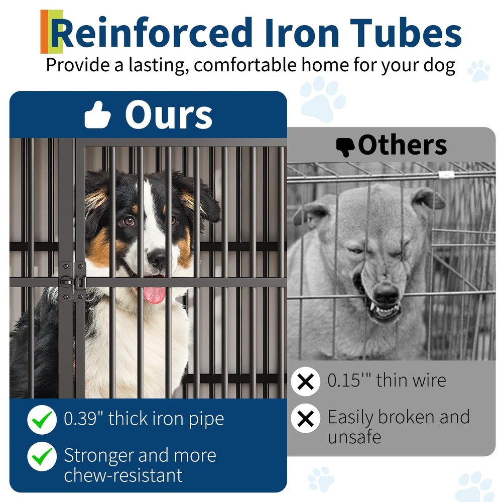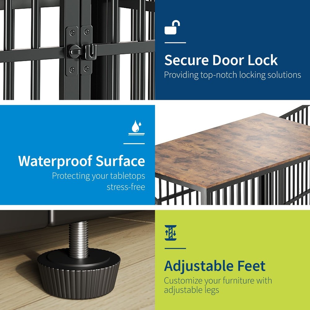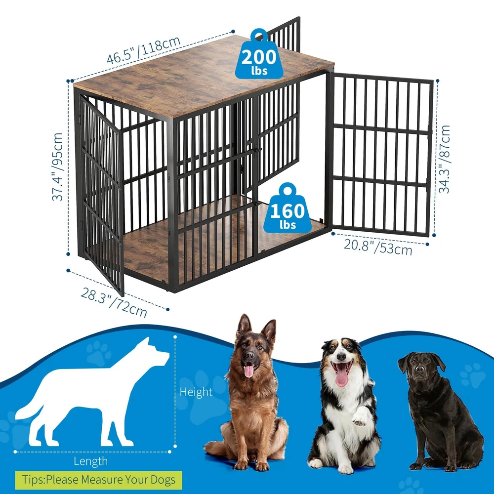 47 Inch Dog Crate Furniture with 3 Lockable Doors, XXL Heavy Duty Dog Kennel, Furniture-Style Indoor Pet House Side End Table for Medium to Large Breeds Key features: 2-in-1 Dog Crate & Side Table Serves as both a secure indoor pet house and a stylish piece of furniture. Blends seamlessly with your home decor while providing a cozy retreat for your dog. Triple Lockable Doors for Flexible Access Three lockable doors offer multi-directional entry and enhanced security. Perfect for flexible placement in any room layout. Durable & Easy to Clean Made with high-grade wood and sturdy metal for long-lasting use. Smooth wood surface wipes clean easily, ideal for daily maintenance. Spacious for Medium to Large Dogs Generous 47.2"L x 29.1"W x 37.6"H interior provides ample room for small, medium, or large breeds to relax comfortably. Quick & Easy Assembly Includes clear instructions and all necessary hardware. Simple to set up without professional help. Specifications: Color: brown Product Dimensions: 47.2"L x 29.1"W x 37.6"H Specific Uses For Product : Indoor Special Feature: Easy Assembly