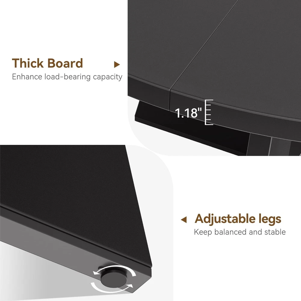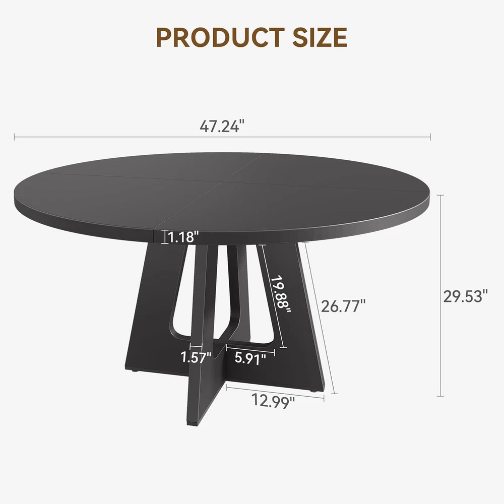 Product Description About this item Solid Structure: Unlike other products, we have effectively addressed common issues such as uneven, unstable tabletops and large gaps between wooden boards. Our four boards are securely joined using custom flat metal brackets, preventing the tabletop from loosening and allowing you to enjoy your meals in comfort. Spacious Design: This round dining table features a generous 47.24-inch tabletop and stands at a height of 29.53 inches, comfortably seating 4 to 6 people without crowding. Its ample size ensures an enjoyable dining experience, providing plenty of space for everyone. Strong Load-Bearing Capacity: Made from a 1.18-inch thick MDF board and supported by solid wooden legs measuring 1.57 inches in thickness, this 47-inch round kitchen table can support a maximum load of up to 300 pounds. You can confidently place tableware, drinks, and decorations—even near the edges—without worrying about tipping due to uneven weight distribution. Adjustable Leg Pads: This kitchen and dining table includes adjustable leg pads, enabling height adjustments of up to 0.39 inches with a simple rotation. The pads incorporate an advanced anti-slip design, allowing them to adapt to various heights and ensuring the table remains stable, eliminating any wobbling on uneven surfaces. Easy and Quick Assembly: This farmhouse dining table employs the latest design technology to streamline the installation process. To make identifying components easier, each accessory comes with corresponding labels, ensuring a hassle-free assembly experience. powered by