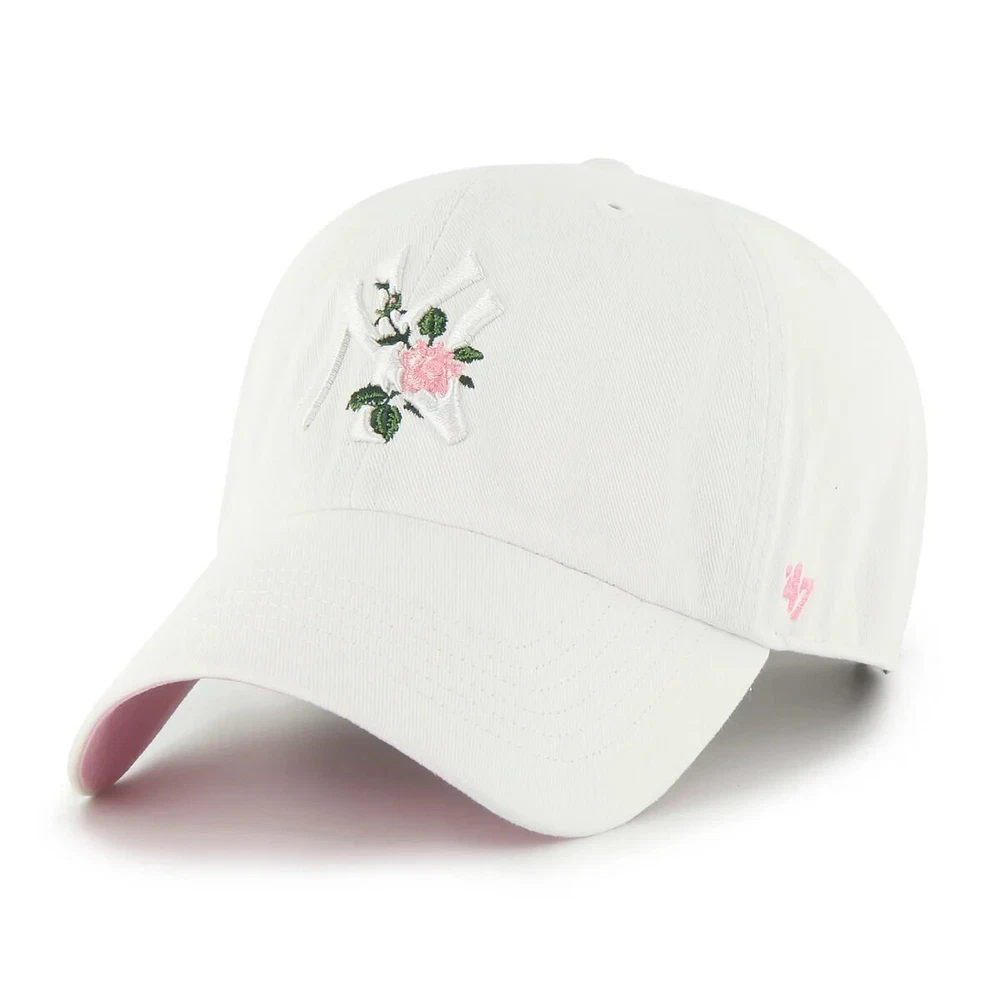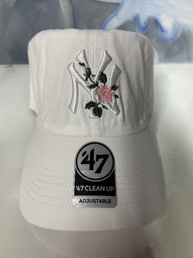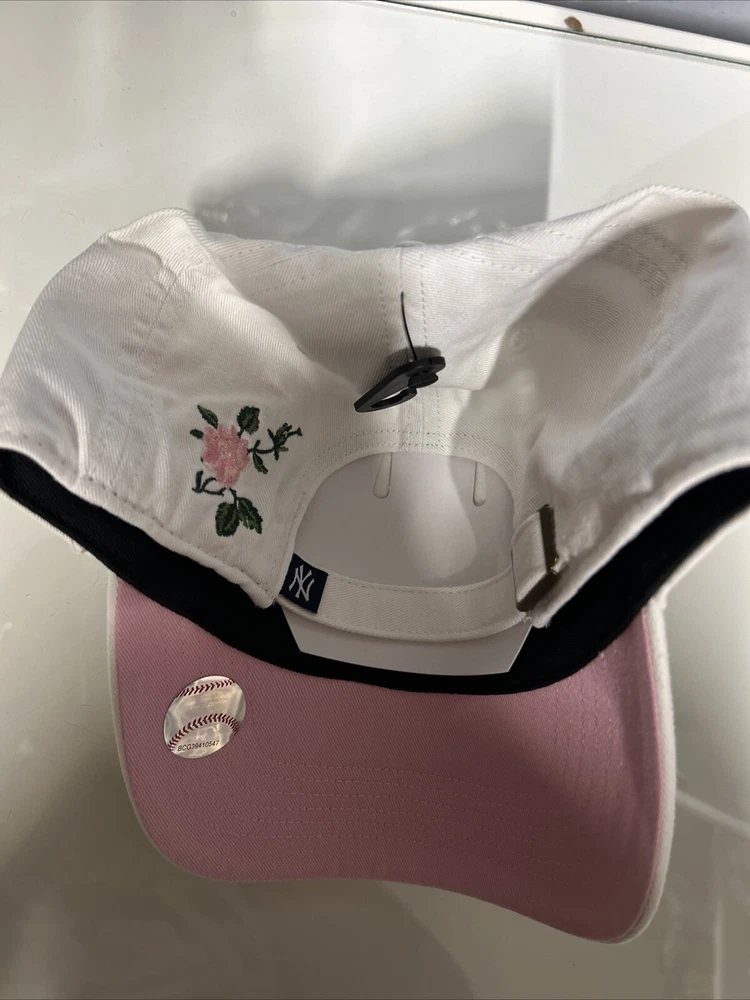 Show off your love for the New York Yankees with this officially licensed unisex adult hat from '47. The white and pink color combination is perfect for any fan of the team. The hat is made for baseball enthusiasts and is perfect for regular season games. The one-size-fits-all design ensures maximum comfort for wearers. The hat is perfect for both men and women and is a great addition to any collection of fan apparel and souvenirs. `47 Brand New York Yankees Rose Thorn Clean Up Dad Hat White/Pink Features Officially Licensed Product Relaxed Fit (Non-form-fitting) Garment Washed Cotton Twill Strapback (One Size Fits Most) Khaki/White/Rose Red Bottom Limited Edition SKU: B-THRNC17GWS-WHB