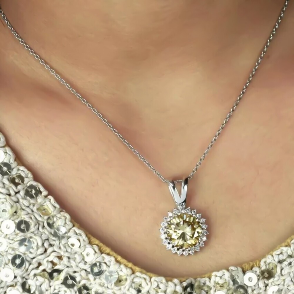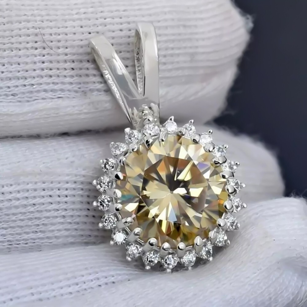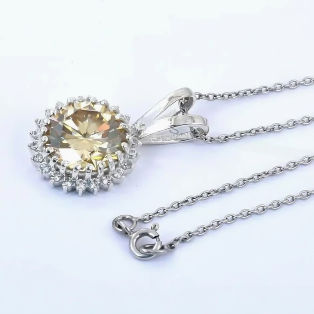 $ 109.859.50 Ct Champagne Diamond Pendant 925 Silver Certified for Festive Gift