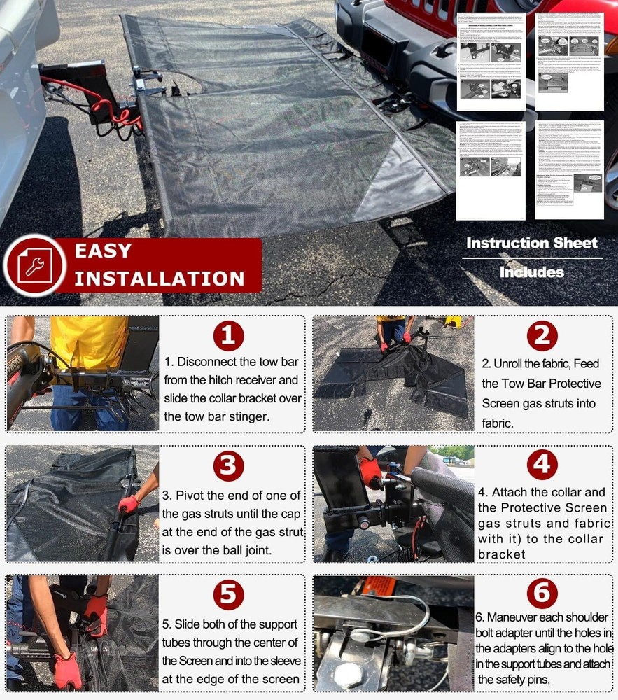 4750 Tow Defender Fits Roadmaster All Motorhome-mounted Tow Bars Blue O demco WIDE APPLICATION: 4750 Tow defender is specially designed for Blue Ox tow bars with brackets, fits for Demco tow bars with brackets, fits for all motorhome-mounted Roadmaster tow bars, compatible with Jeep, Honda, Ford, GMC, and other vehicles with tow bar brackets. Fits RVs with a 2" x 2" hitch receiver. Replace #RM-4750 Tow defender for Roadmaster tow bars. PROTECT TOWED VEHICLE: This Tow defender has a protective layering that provides protection from bumper-to-bumper. Heavy duty all-weather protection screen blocks rocks, gravel and road debris down and away. Protect your towed vehicle, RV, Motorhome and tow bar against rock chips ,flying road debris and dings as you’re flat towing. COMPLETE PROTECTION: Tow defender rock shield offers 20 square feet of protection when fully extended. The tow defender protective screen is held in place with shock-absorbing steel hydraulic struts, which will automatically and flexibly compress for cornering, with no worry about possibly hitting our vehicle. It is a great rv rock guards for towing. QUICK RELEASE & CONVENIENT: To disconnect the tow defender protective screen, just pull out the safety pin, then roll up the tow defender screen, snap the elastic straps around both ends and store it on your RV’s hitch easily. Only 4 inches in diameter when it is rolled up ensures easy storage. ROBUST CONSTRUCTION: Our tow defender protective screening is made of vinyl-coated mesh, which is durable and flexible, lets air through, keeping it low and over the road. Powder-coated steel brackets and heavy-duty hydraulic struts are resistant to corrosion and impact and can work on rough roads and in weather conditions. PACKAGE INCLUDED: 4750 Tow defender Payment Shipping Return & Warranty Leave feedback Contact us Payment 1.We accept PayPal payment and many other payments. Items will be shipped within 1 business day of receiving full payment. Shipping 1.All items will be shipped out in 1 business day,no expedited service available. 2.Our items will be delivered within 4-6 business days. 3.We have multiple warehouses in US, and will choose the nearest one for shipping, according to your address and our inventory Return & Warranty 1. 60 Days Free Returns, please notify us within 60 days after you've received your purchased item. 2. All return requests must be submitted through your eBay account. 3. Return shipping shall be the responsibility of the buyer. We pay the shipping when it is our fault. 4. Items to be returned must be in resalable condition. 5. All returns are for refund ONLY. No exchange accepted. Leave feedback 1.If you are not satisfied for any reasons, please do not be so quick to leave negative/neutral feedback. We work hard to make sure EVERY CUSTOMER 100% SATISFIED and resolve any problems for you and always leave positive feedback to all our customers. 2.If you are satisfied with the product you received, please kindly leave us a positive feedback and 5 scores DSR. Thanks! Contact us 1.Any Questions,Just feel free to contact us on eBay.We will reply you in 1-2 business day.