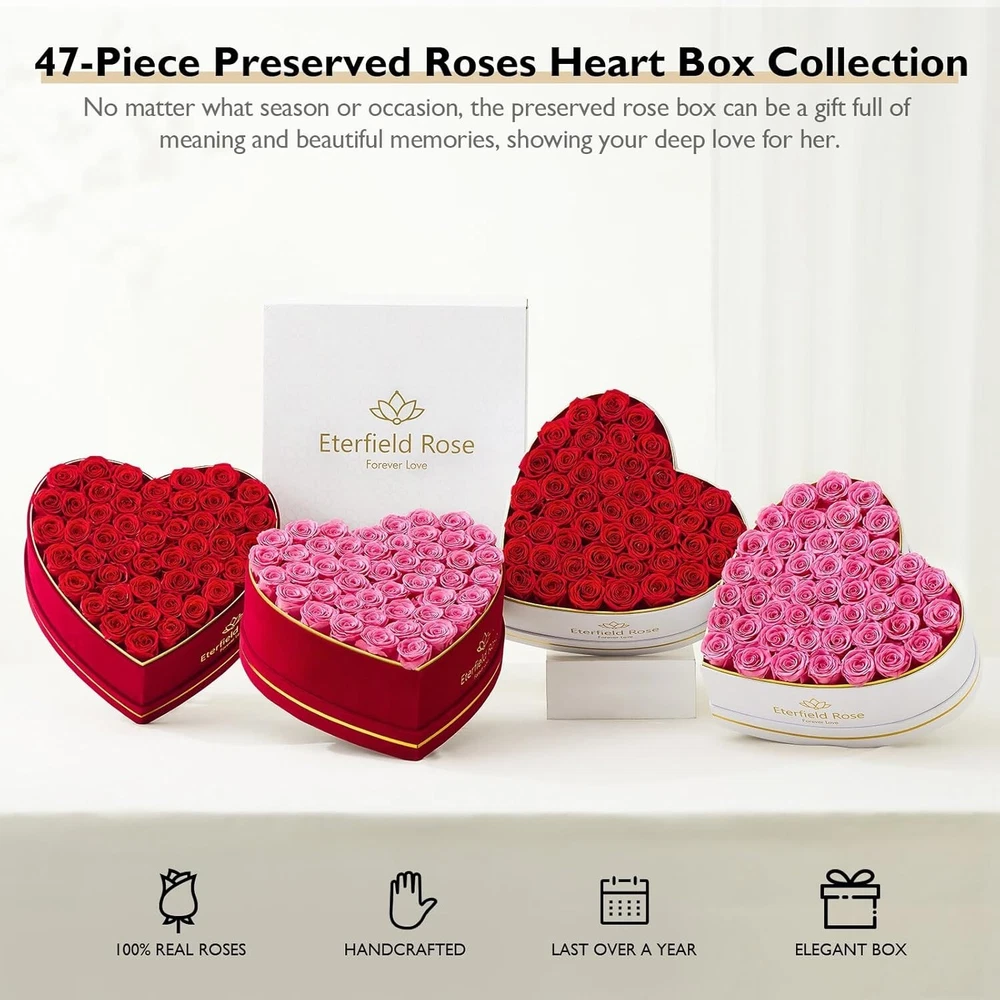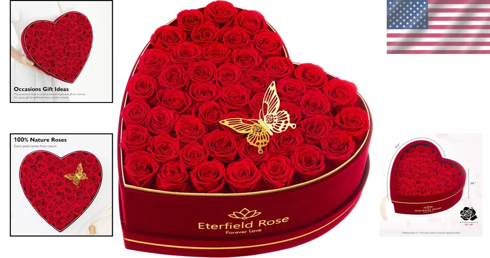 47-Piece Preserved Roses in Heart Box - Lasting Gift for Her Special Moments ‹ › ‹ › ‹ › ‹ › ‹ › ‹ › ‹ › ‹ › 47-Piece Preserved Roses in Heart Box Lasting Gift for Her Special Moments Features: 100% Real Rose - Hand-picked at peak freshness and intricately arranged by master florists. Unique Rose Box Gifts - 47-piece long-lasting roses arranged in a white heart-shaped suede box. Transparent PVC Cover - Protects the roses from dust or damage while adding a touch of fashion and elegance. Last Over a Year - Preserved through a cutting-edge method, they maintain their beauty and color for at least a year. Maintenance-Free - No wilting, fading, or petal loss. No water or sunlight needed. Benefits: A symbol of love that can be cherished every day, all year round. Perfect for various occasions: Birthdays, Anniversaries, Valentine's Day, and Mother's Day. Elevate special moments with a luxurious, elegant gift that stands the test of time. Effortless care, allowing you or your loved one to enjoy the beauty without the hassle. Why choose our Preserved Roses? Looking for a gift that embodies everlasting love and beauty? Our 47-Piece Preserved Roses in a Heart Box offer a unique and luxurious way to convey your feelings. Each rose is meticulously preserved to ensure it stays vibrant and beautiful for over a year, making it an unforgettable gift for any special occasion. Present this exquisite arrangement to express your love and affection—because some moments deserve to last forever. Surprise your loved one with this stunning keepsake today! Shipping Free & Fast Shipping - We offer free shipping to most of the USA with a normal delivery time of 3-7 days. However, due to the current situation, additional delivery time (up to 3 weeks) may be required for some items. Alternative Carriers - We may use alternative carriers (e.g. USPS, FedEx, UPS, etc.) to ensure your package arrives safely and on time. Due to the use of multiple carriers, we are unable to provide a tracking number automatically. Handling Time - Orders are processed and shipped within 1-2 business days of receiving cleared payment. Shipping Restrictions - Shipping to Alaska, Hawaii, Puerto Rico, Guam, and other US territories may incur shipping charges or delivery restrictions. Please contact us before ordering, or your order can be refunded/cancelled. State Restrictions - There may be restrictions based on your state of purchase. For example, certain items may not be shipped to California due to state regulations. Contact for Tracking Updates - If you require tracking updates or have any concerns about the delivery of your order, please feel free to contact us, and we will be happy to assist you. Return 30-Day Hassle-Free Returns - We want you to be completely satisfied with your purchase. If you are not, you can return the item within 30 days of receiving it for a full refund or exchange. Easy Return Process - To start a return, simply contact us and we will provide you with a prepaid return shipping label and detailed instructions. Restocking Fee - There are no restocking fees for returns. However, the buyer is responsible for return shipping costs if the return is not due to a seller's error. Refund Processing Time - Refunds will be processed within 5 business days of receiving the returned item in its original condition. Payment We accept all major credit cards, PayPal, and Apple Pay for your convenience. Your payment information is secure and encrypted to ensure a safe and seamless transaction. Please complete your payment within 3 days of purchase to avoid any delays in shipping. Feedback Your feedback is extremely important to us. We strive to provide the best products and customer service possible. If you are satisfied with your purchase, please take a moment to leave us a positive review. If you have any concerns or issues with your order, please contact us before leaving negative feedback. We are committed to resolving any problems and ensuring your satisfaction. Contact Us If you have any questions or concerns, please feel free to reach out to our customer support team. You can contact us through the eBay messaging system. We are available Monday to Friday, 9:00 am to 5:00 pm EST, and we will do our best to respond to your inquiry within 24 hours. Buy it now and enjoy a pleasant shopping experience! UPC: Not Set Item Width: Not Set Unit Quantity: 3.54 Material: Mixed Materials,Real Rose,PVC,Suede Common Name: Rose Brand: Unbranded Product: Preserved Roses Gift Box Type: Flower Box Artificial/Fresh: Artificial Form: Arrangement & Centerpiece Color: Red Occasion: All Occasions MPN: Not Set Theme: Hearts Size: 14 x 13.8 x 5.9 in Country/Region of Manufacture: Not Set Item Height: Not Set Number in Pack: 101-500 Unit Type: lb Personalize: Not Set Personalized: Not Set