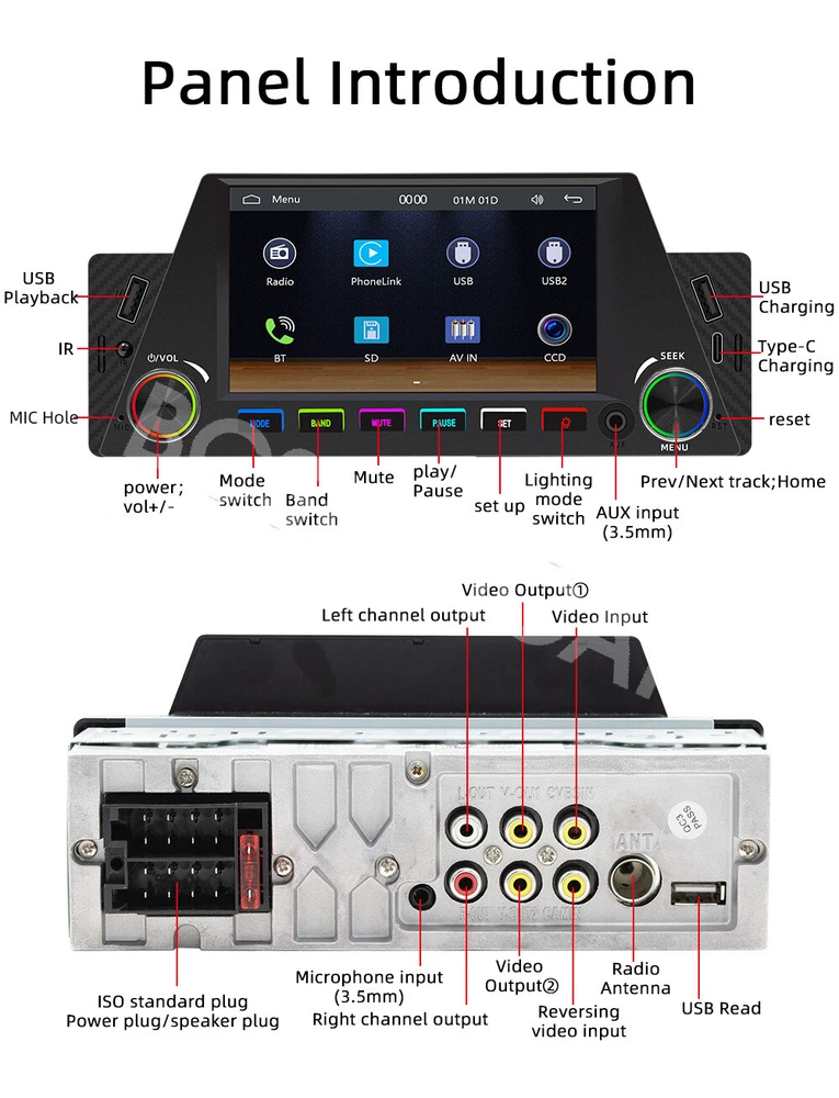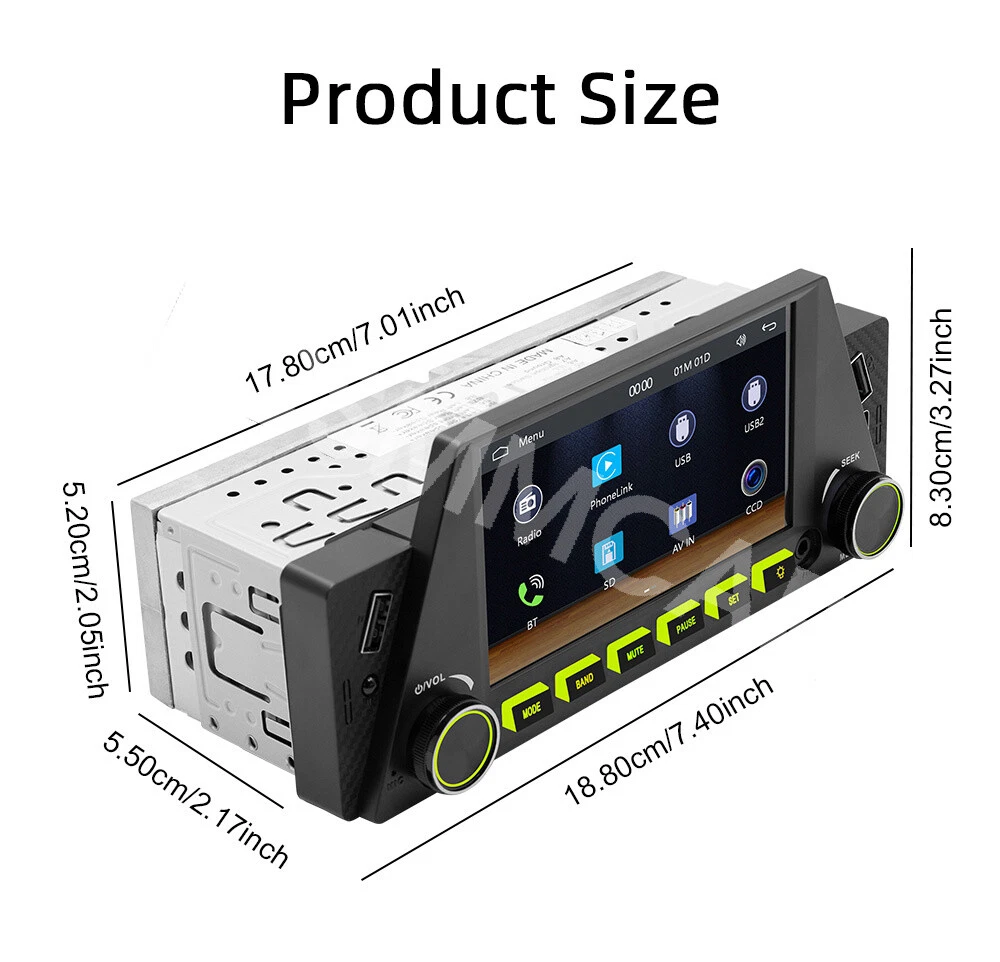 Product View Detail With 4LED Camera 1 Din 4.7inch MP5 Car Radio Multimedia Video Player Bluetooth Mirror Link FM Stereo For Wireless Android Auto Caplay Dual USB Note:Not is universal , Please check with your car panel's size !!! Basic parameters Model :161W Type: Car MP5 System: Overview Melis System Software solution: F133 Radio frequency: FM 87.5~108.0MHz AM 522~1620KHz (switchable between radio frequencies in China, America 1, America 2, Japan, Russia, Middle East, and Europe) Radio IC: SI4732 Amplifier IC: CD7388CZ Output power: 60Wx4 Working voltage: 12~14.4V Working temperature: -10~60 ℃ Bluetooth version: 5.1 (default name: SWL-BT) WiFi frequency: options include 2.4G, 5.2G, 5.8G, and can be used for wireless connections CPU: F133 Running memory: 533M Display resolution: 1280x720 Screen size: 4.7 inches Installation size: 178x52MM Shell size :188x83MM Host depth: 95MM Functional parameters Mobile Internet: Support Reverse image: support (included 4LED camera) Video playback warning: support Steering wheel control :supports button learning Video output: support USB: front USB charging+front USB 2.0 reading+rear USB 2.0 reading Reset button support Audio output: 2 channels (left channel+right channel) Video output :2 channels Rear external microphone input: support (optional external microphone configuration) Video input 1: channel Reverse video input: 1 channel Audio format: MP3/AAC/APE/OGG/M4A/RA/WAV Video format: H263/H264/H265/DIVX HD (720P 1080I 1080P) AVI/FLV/MKV/MPEG/MP4/WMV9/VC/ASF/TS/QT Image format JPEG/PNG/BMP/GIF/TIFF Language parameters:English, Chinese, French, German, Arabic, Italian, Japanese, Portuguese, Russian, Spanish, Hebrew, Polish, Türkiye, Czech, Dutch Factory password: 113266 Accessories 1. Host 2. Manual 3. Power cord 4. Remote control 5. Loading key (accessories, manual, packaging may be updated from time to time, subject to actual receipt) 6.4LED Rear Camera Basic functions 1. Radio 2. USB flash drive (audio/video/image) 3. Bluetooth function 4. RCA audio output can be connected to a subwoofer 5. Reverse rearview function 6. Video input 7. Original steering wheel learning function 8. Wired and wireless mobile phone interconnection; Wired and wireless Android AUTO/Apple CarPlay 9. Colorful lights 10. Rear USB 11. USB charging interface 12. Power supply positive and negative polarity reverse protection function 13. RDS function 14. TYPE-C charging interface Shipping Policy Payment Method Returns Policy Shipping Policy Payment Method Returns Policy Copyright © 2017 DataCaciques Home Payment Shipping About us Contact us BCSMMCAR Store Categories Store Categories Other Product View Detail With 4LED Camera 1 Din 4.7inch MP5 Car Radio Multimedia Video Player Bluetooth Mirror Link FM Stereo For Wireless Android Auto Caplay Dual USB Note:Not is universal , Please check with your car panel's size !!! Basic parameters Model :161W Type: Car MP5 System: Overview Melis System Software solution: F133 Radio frequency: FM 87.5~108.0MHz AM 522~1620KHz (switchable between radio frequencies in China, America 1, America 2, Japan, Russia, Middle East, and Europe) Radio IC: SI4732 Amplifier IC: CD7388CZ Output power: 60Wx4 Working voltage: 12~14.4V Working temperature: -10~60 ℃ Bluetooth version: 5.1 (default name: SWL-BT) WiFi frequency: options include 2.4G, 5.2G, 5.8G, and can be used for wireless connections CPU: F133 Running memory: 533M Display resolution: 1280x720 Screen size: 4.7 inches Installation size: 178x52MM Shell size :188x83MM Host depth: 95MM Functional parameters Mobile Internet: Support Reverse image: support (included 4LED camera) Video playback warning: support Steering wheel control :supports button learning Video output: support USB: front USB charging+front USB 2.0 reading+rear USB 2.0 reading Reset button support Audio output: 2 channels (left channel+right channel) Video output :2 channels Rear external microphone input: support (optional external microphone configuration) Video input 1: channel Reverse video input: 1 channel Audio format: MP3/AAC/APE/OGG/M4A/RA/WAV Video format: H263/H264/H265/DIVX HD (720P 1080I 1080P) AVI/FLV/MKV/MPEG/MP4/WMV9/VC/ASF/TS/QT Image format JPEG/PNG/BMP/GIF/TIFF Language parameters:English, Chinese, French, German, Arabic, Italian, Japanese, Portuguese, Russian, Spanish, Hebrew, Polish, Türkiye, Czech, Dutch Factory password: 113266 Accessories 1. Host 2. Manual 3. Power cord 4. Remote control 5. Loading key (accessories, manual, packaging may be updated from time to time, subject to actual receipt) 6.4LED Rear Camera Basic functions 1. Radio 2. USB flash drive (audio/video/image) 3. Bluetooth function 4. RCA audio output can be connected to a subwoofer 5. Reverse rearview function 6. Video input 7. Original steering wheel learning function 8. Wired and wireless mobile phone interconnection; Wired and wireless Android AUTO/Apple CarPlay 9. Colorful lights 10. Rear USB 11. USB charging interface 12. Power supply positive and negative polarity reverse protection function 13. RDS function 14. TYPE-C charging interface Shipping Policy Payment Method Returns Policy Contact US Shipping Policy All items will be checked before packing. All items are new and of high quality. Item will be shipped within 1 business days upon receipt of payment, excluding weekends and public holidays. If to USA,we will ship your order by USPS,it will take about 8-12 working days to you,and you can track it on line. If to other country,we will ship your order by China Post or Singapore Registered Air Mail,it will take about 14-21 working days to you,you aslo can track it on line. Delivery time is about 14-28 business days and it may take up to 8 weeks . Payment Method We accept payment by PayPal only ! Payment should be completed within 5 days after buyer places the order,or else an unpaid case will be opened in order to cancel the transaction. If you can not pay in time, please contact us. e-check from PayPal will only be processed once the