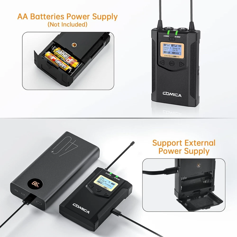 48 Channels Wireless Lavalier Microphone System with Real-Time Monitoring & Mute ‹ › ‹ › ‹ › ‹ › ‹ › ‹ › ‹ › ‹ › ‹ › ‹ › ‹ › 48 Channels Wireless Lavalier Microphone System Experience unrivaled sound quality and clarity during your recordings with this state-of-the-art wireless lavalier microphone system, designed for professionals and enthusiasts alike. Model: CVM-WM100PLUS Features: 48 UHF Selectable Channels: Seamlessly switch between 48 channels to avoid interference and ensure crystal-clear audio. Auto-Scanning: Quickly find and switch to stable channels in real-time, even in crowded environments. Dual-Channel System: Comes with dual transmitters and one receiver, supporting both mono and stereo output for versatile audio applications. Real-Time Monitoring: Test the microphone functionality effortlessly during recording to ensure smooth operation. One-Button Muting: Easily mute the microphone to maintain audio privacy when needed. Noise Reduction & Low Latency: Advanced noise reduction technology offers exceptional sound fidelity, with latency reduced to less than 20ms for smooth audio playback. Lattice LCD Display: Features a high-resolution screen that offers clear monitoring of battery level and volume with a broad viewing angle. Adjustable RF Signal Strength: Choose between low and high settings to optimize power consumption and audio quality based on distance (up to 160ft). Benefits: Perfect for interviews, recording sessions, vlogging, and live streaming, delivering professional-quality audio. Flexible usage with low power consumption ensures longer standby time without sacrificing sound quality. Simple setup process with comprehensive guides available, allowing users of all experience levels to operate with ease. Why choose the CVM-WM100PLUS Wireless Lavalier Microphone? Elevate your audio recordings with the CVM-WM100PLUS, a wireless lavalier microphone engineered for the modern creator. The combination of durable design, dual-channel capability, and advanced noise reduction technology makes this microphone system a must-have for anyone serious about high-quality sound. Whether you're shooting video content, hosting events, or capturing interviews, this system offers the reliability and functionality you need for flawless audio performance. Transform your recording experience—order your 48 Channels Wireless Lavalier Microphone System today! Shipping Free & Fast Shipping - We offer free shipping to most of the USA with a normal delivery time of 3-7 days. However, due to the current situation, additional delivery time (up to 3 weeks) may be required for some items. Alternative Carriers - We may use alternative carriers (e.g. USPS, FedEx, UPS, etc.) to ensure your package arrives safely and on time. Due to the use of multiple carriers, we are unable to provide a tracking number automatically. Handling Time - Orders are processed and shipped within 1-2 business days of receiving cleared payment. Shipping Restrictions - Shipping to Alaska, Hawaii, Puerto Rico, Guam, and other US territories may incur shipping charges or delivery restrictions. Please contact us before ordering, or your order can be refunded/cancelled. State Restrictions - There may be restrictions based on your state of purchase. For example, certain items may not be shipped to California due to state regulations. Contact for Tracking Updates - If you require tracking updates or have any concerns about the delivery of your order, please feel free to contact us, and we will be happy to assist you. Return Please see our eBay Return Policy. Thank you. Payment We accept all major credit cards, PayPal, and Apple Pay for your convenience. Your payment information is secure and encrypted to ensure a safe and seamless transaction. Please complete your payment within 3 days of purchase to avoid any delays in shipping. Feedback Your feedback is extremely important to us. We strive to provide the best products and customer service possible. If you are satisfied with your purchase, please take a moment to leave us a positive review. If you have any concerns or issues with your order, please contact us before leaving negative feedback. We are committed to resolving any problems and ensuring your satisfaction. Contact Us If you have any questions or concerns, please feel free to reach out to our customer support team. You can contact us through the eBay messaging system. We are available Monday to Friday, 9:00 am to 5:00 pm EST, and we will do our best to respond to your inquiry within 24 hours. Thank you for supporting our small family business! UPC: Not Set Maximum SPL: 65 dB Unit Quantity: 6 Item Weight: 2.14 lb Connectivity: UHF,3.5 mm jack,XLR Features: Wireless Handheld,Dual-Channel System,Mono/Stereo Mode,One-Button Muting,Real-Time Monitoring,Noise Reduction,Low Latency,Adjustable RF Signal Strength Compatible Model: Cameras Brand: Unbranded Form Factor: Lavalier/Lapel Transducer Type: Dynamic Model: Not Set Diaphragm Size: Medium Suitable For: Live Performance MPN: Not Set Unit Type: lb Color: Black Polar Pattern: Omnidirectional Country/Region of Manufacture: Not Set Manufacturer Warranty: Not Set Mount Type: Mounting Plate Compatible Brand: Not Set